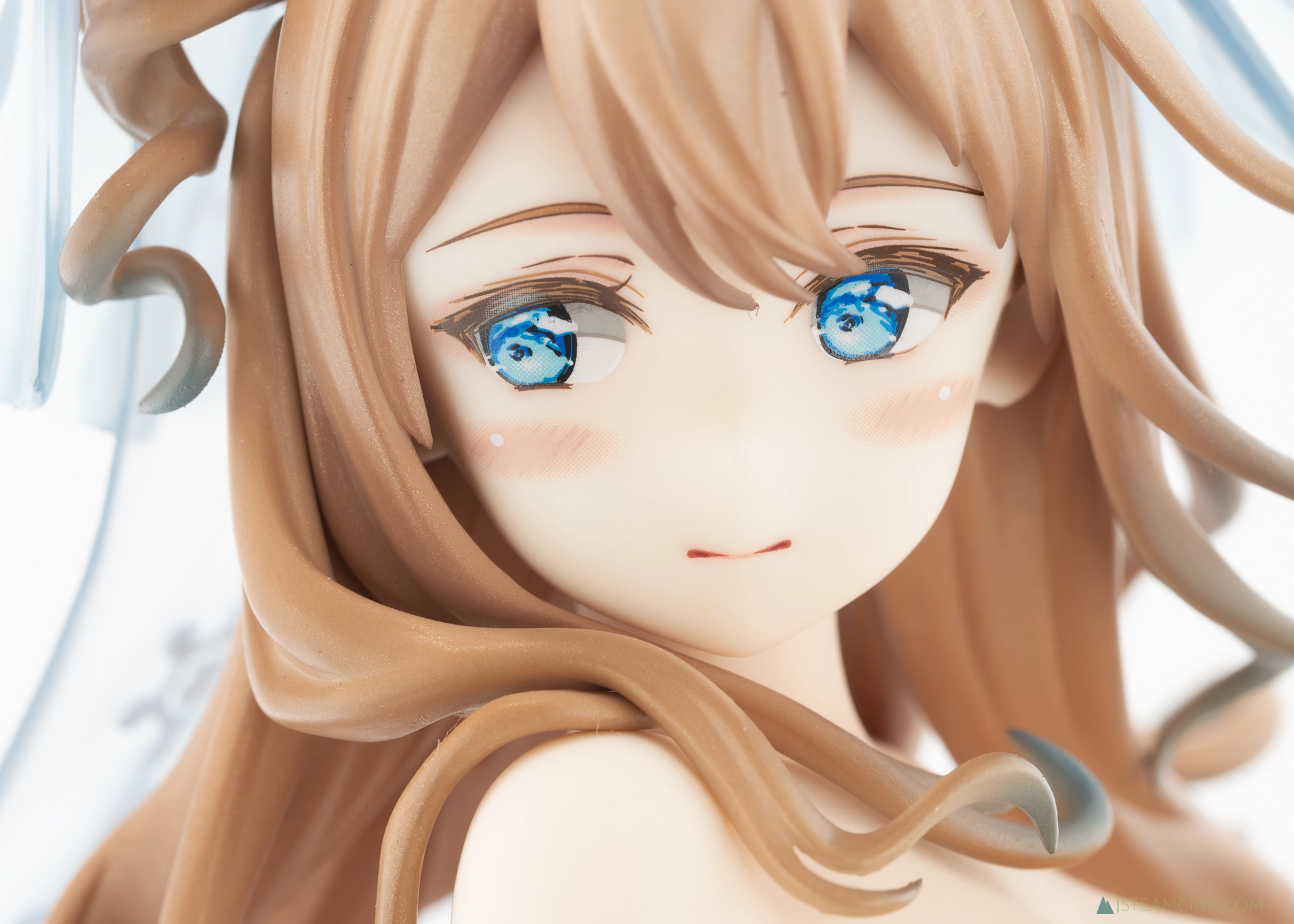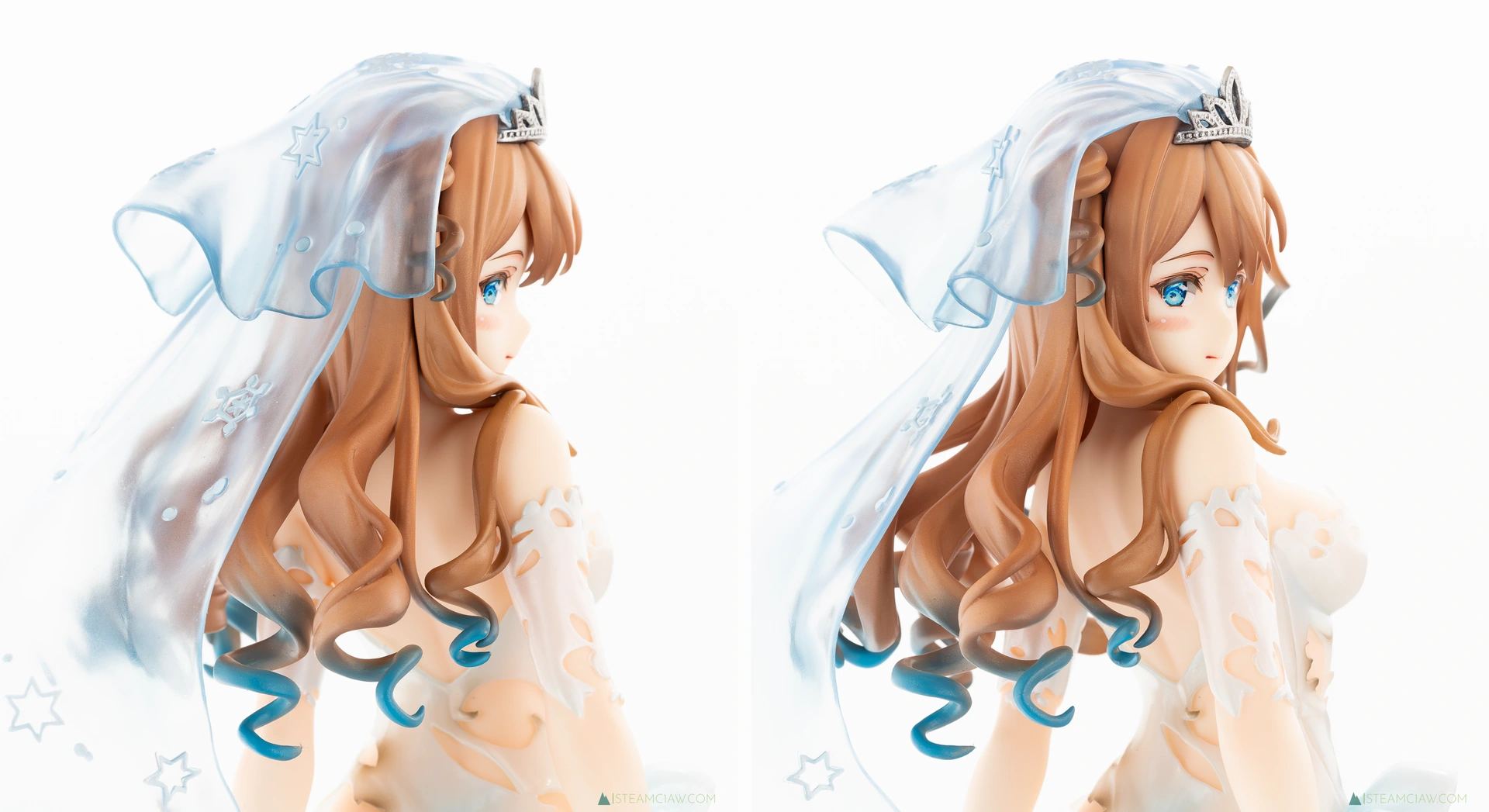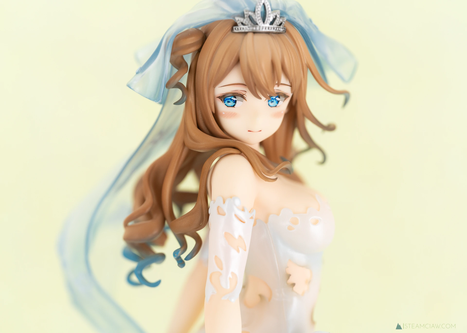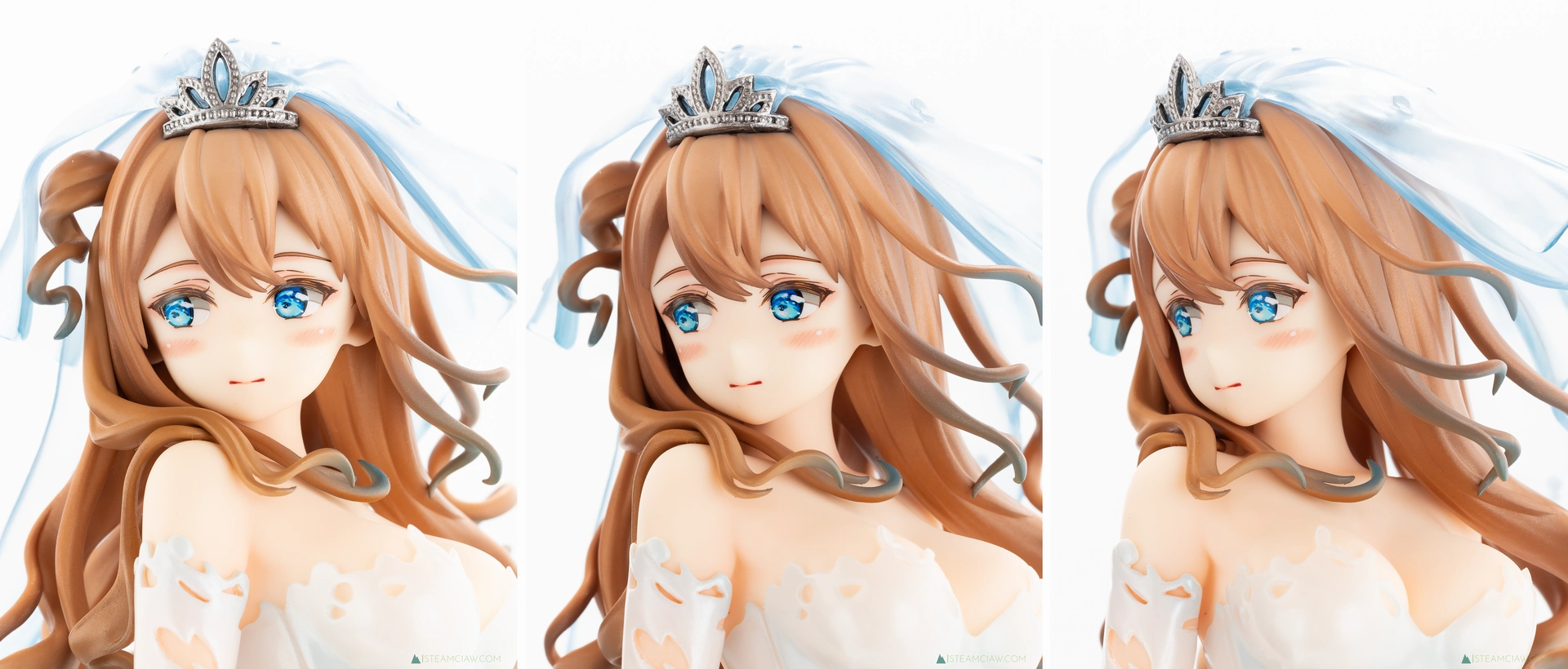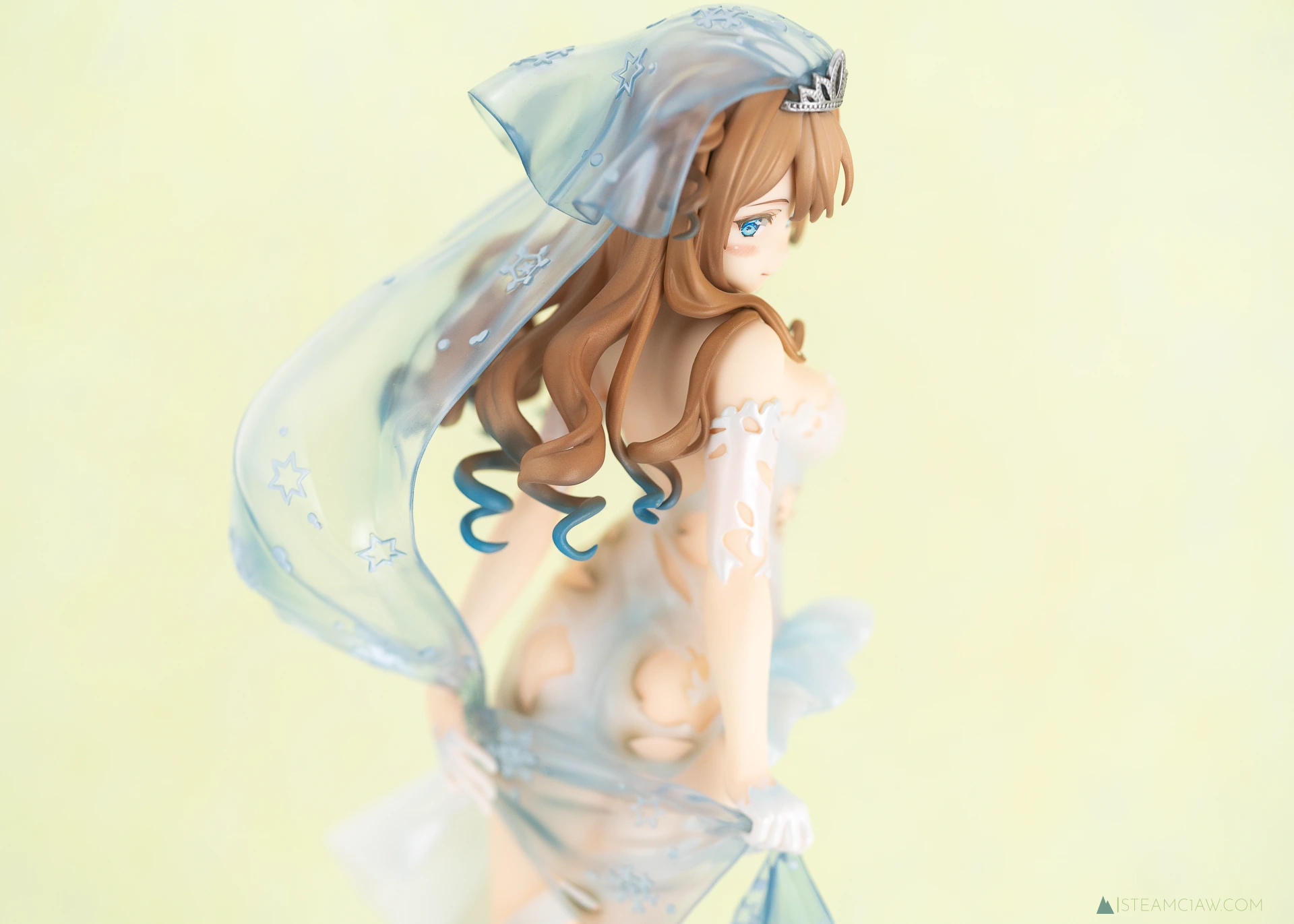 見てのとおり、ドレスはツヤのあるパール塗装でゴージャスな仕上がり。ヴェール、髪の毛のハイライト、瞳の色と、青色が随所に散りばめられているフィギュアですが、白と青のグラデーションはとても質感が高いですね。