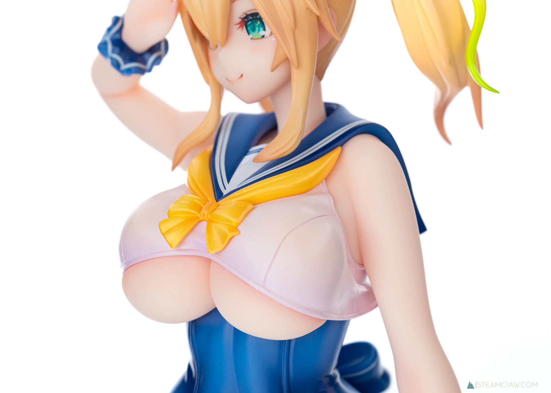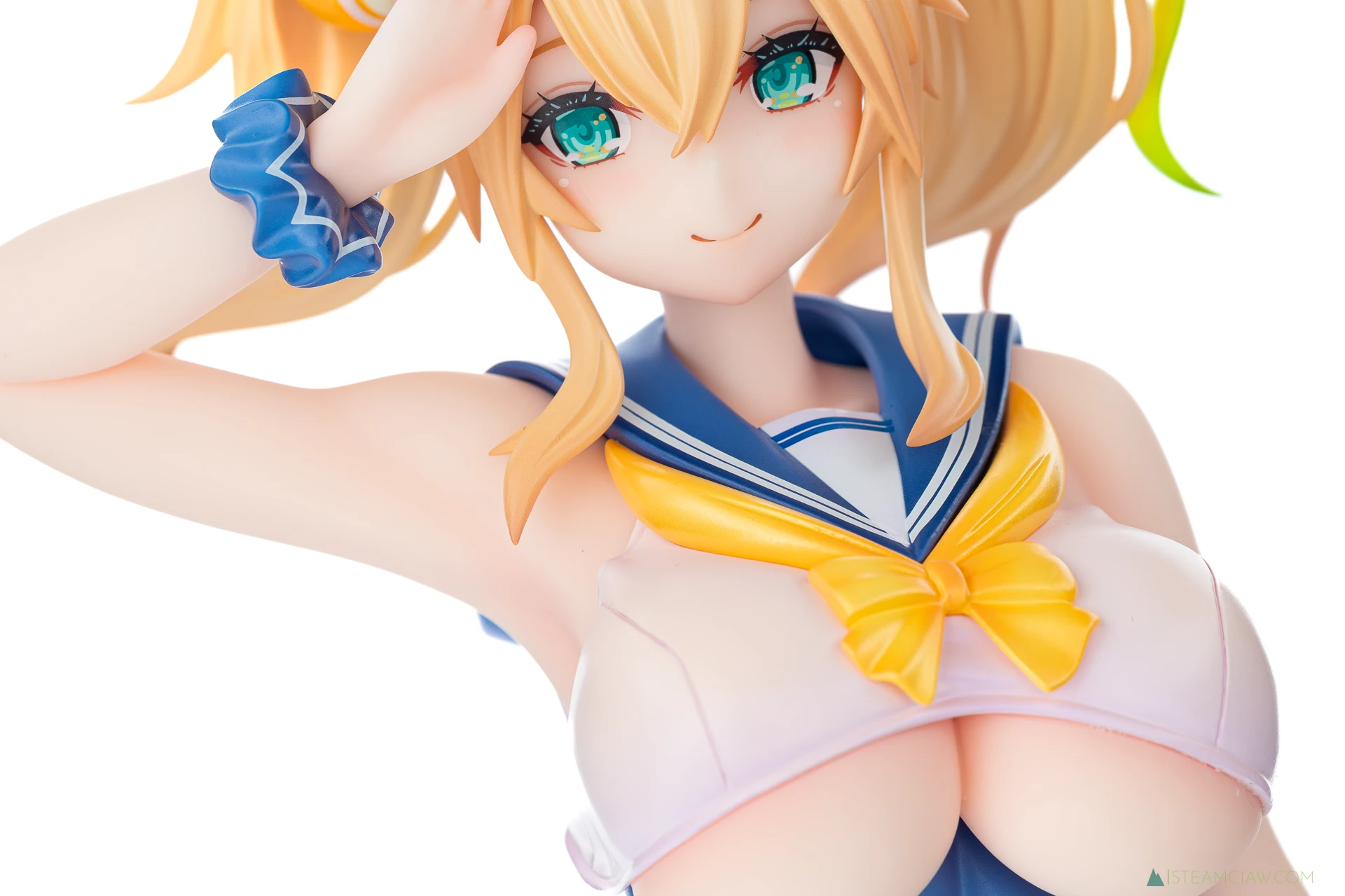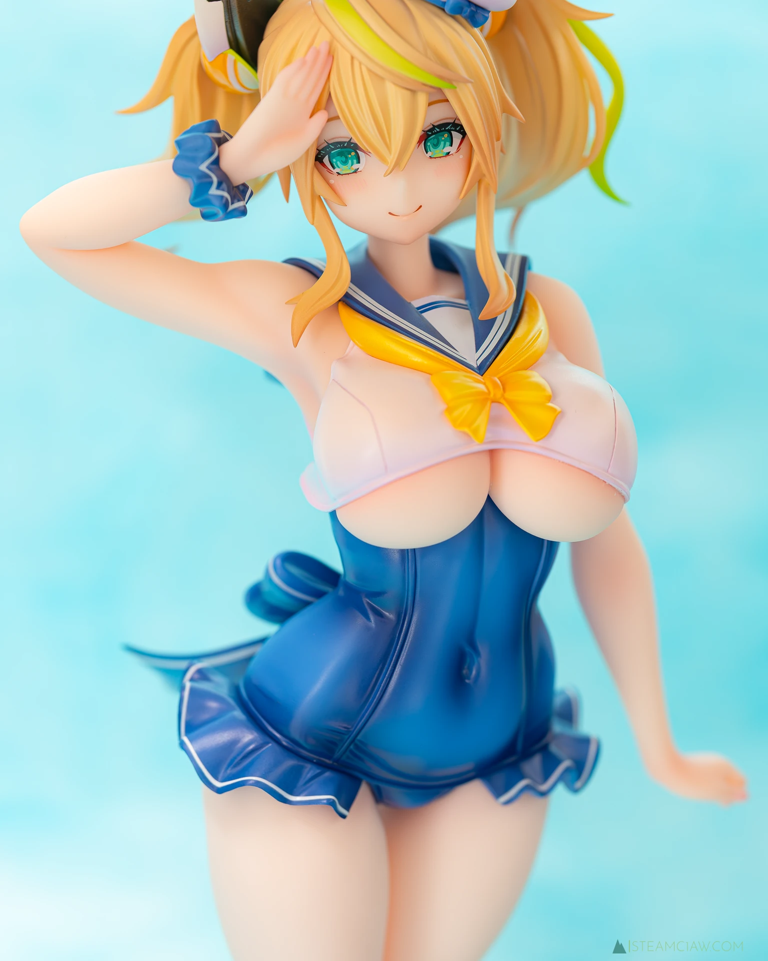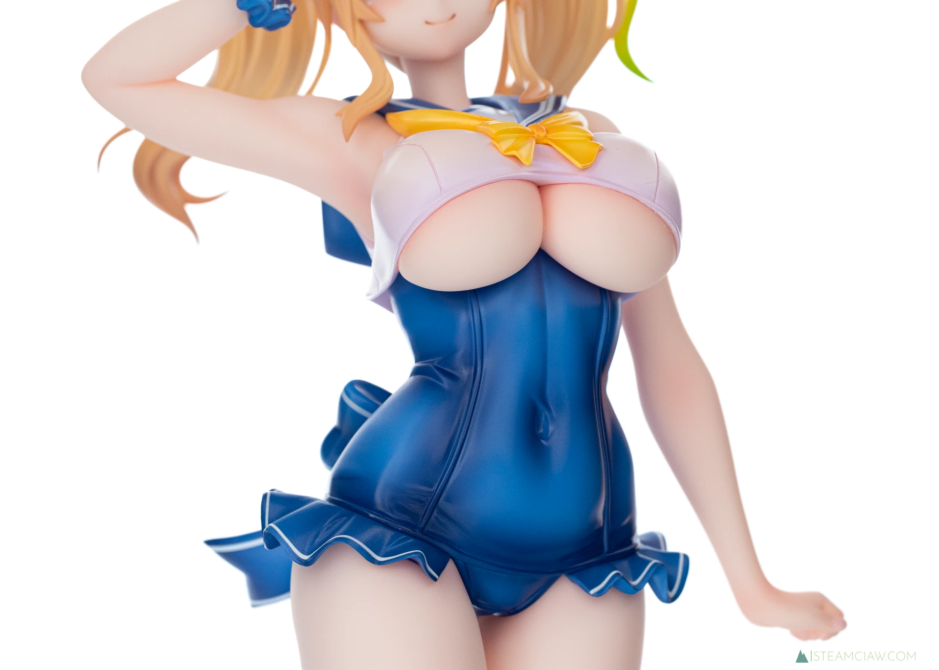 セーラー襟のネイビーと白の塗り分けは、塗装のはみ出しやガタつきが出やすい箇所ですが、きれいな仕上がり。アネットでは、水着のフリルのシワ部分に白の滲みがみられましたが、ジェネはアネットと比べてフリル部分のシワが深く入っていないためか、特に気になる箇所はみられません。
