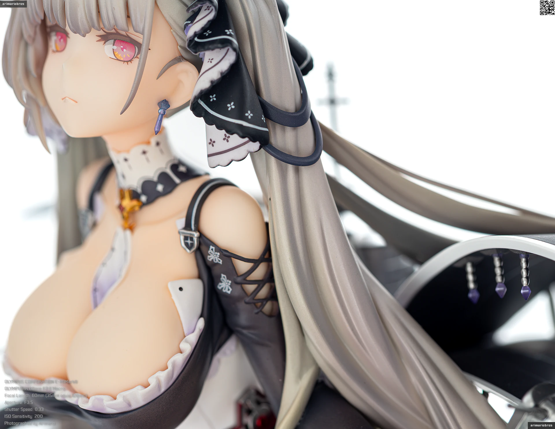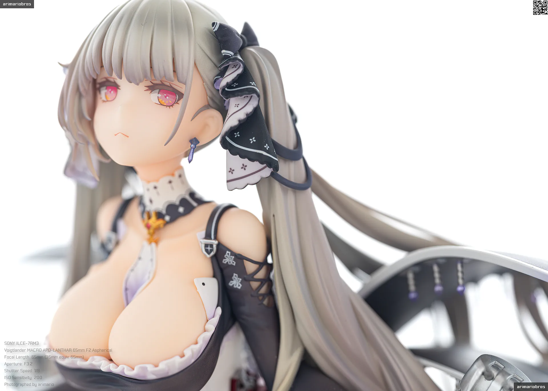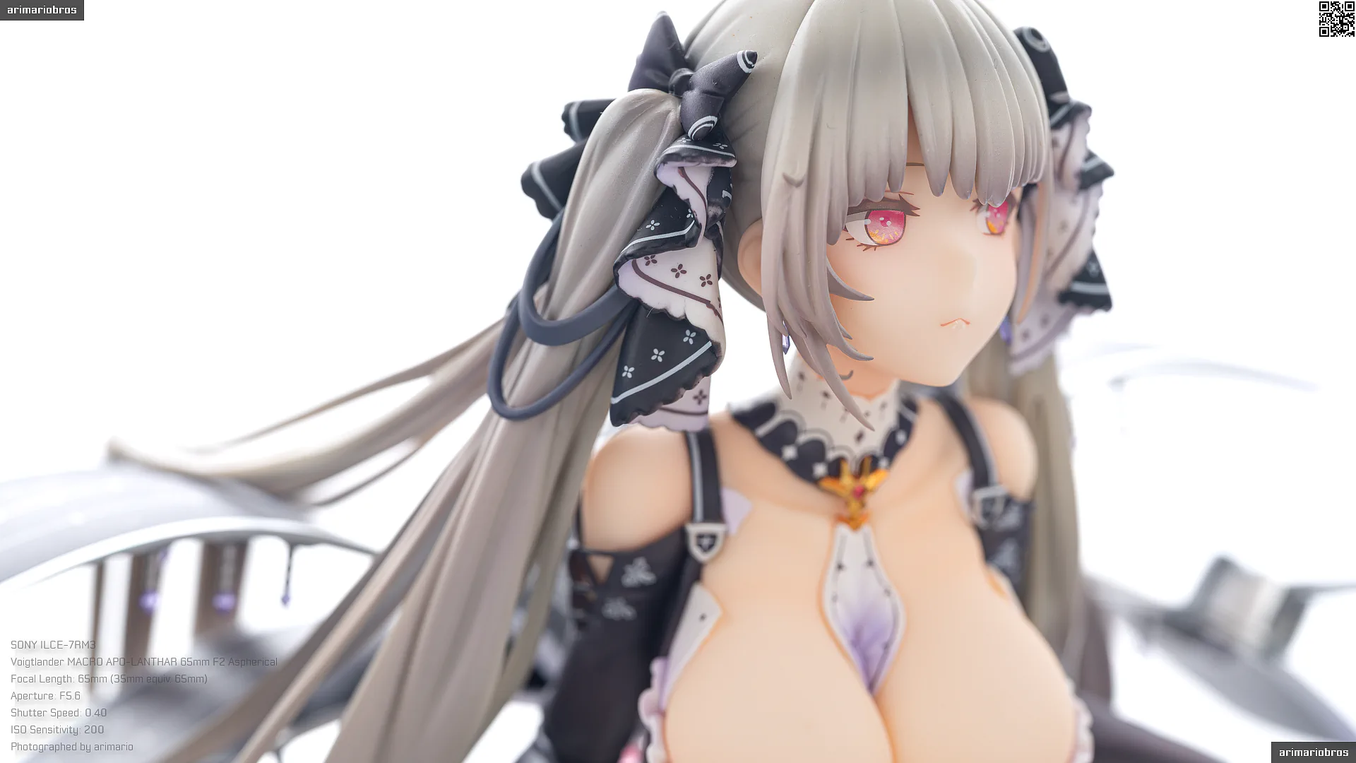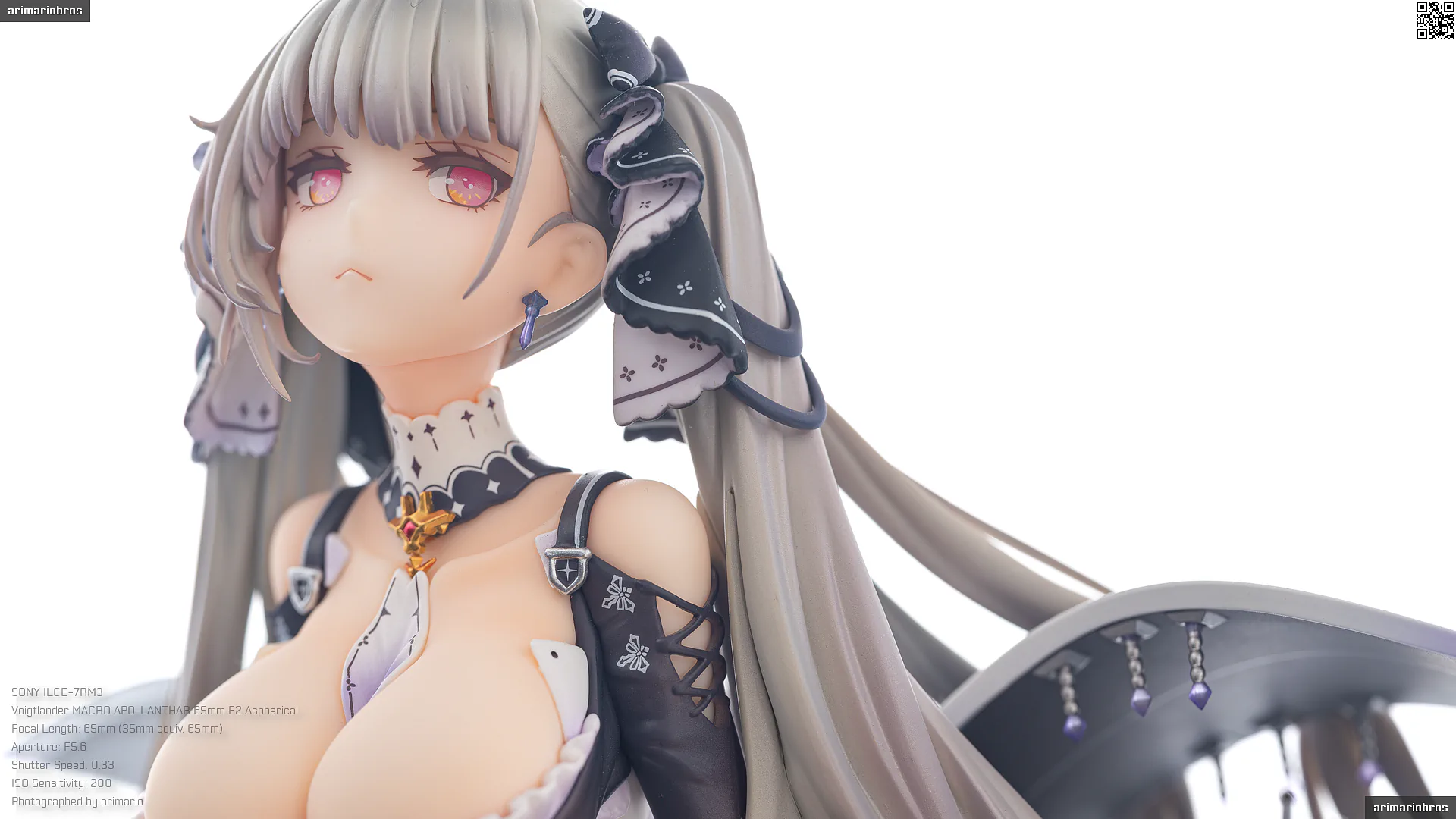 一方で、チープな塗装の光沢感があったり、髪の毛のパーツ接合部の仕上げが雑だったり、細かいパーツの塗装が甘かったりと、ちらほら隙がみられるのが残念。これが一般的なフィギュアの価格帯である税込みで30,000円以内におさまる希望小売価格なら納得できるかなと思いますが、35,000円という価格設定を考えると、手抜かりなく仕上げて欲しかったです。あと、彩色見本のクオリティがめちゃくちゃ高いので、それと比べてしまうと…というのもあります。