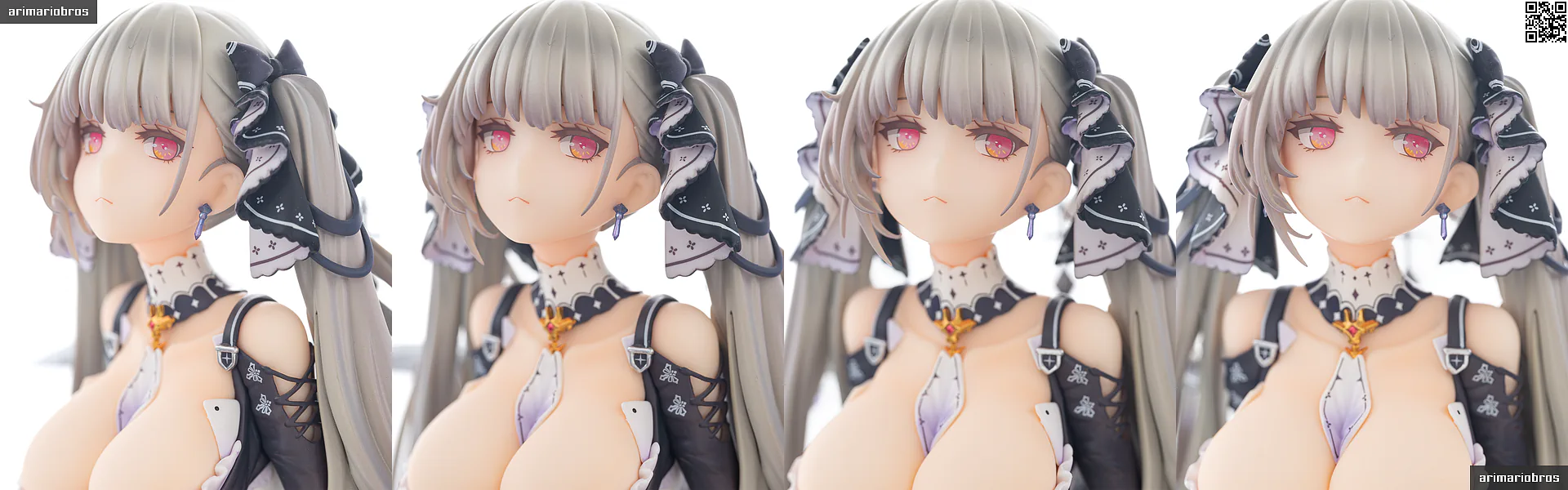 特に、ドレスのシワ表現は、なんなら元絵よりも細かいところまで造形されており、思わず唸らされる出来映え。ただ、彩色見本と比べるとプラスチック由来の「硬さ」が誤魔化しきれていないかなとも感じます。