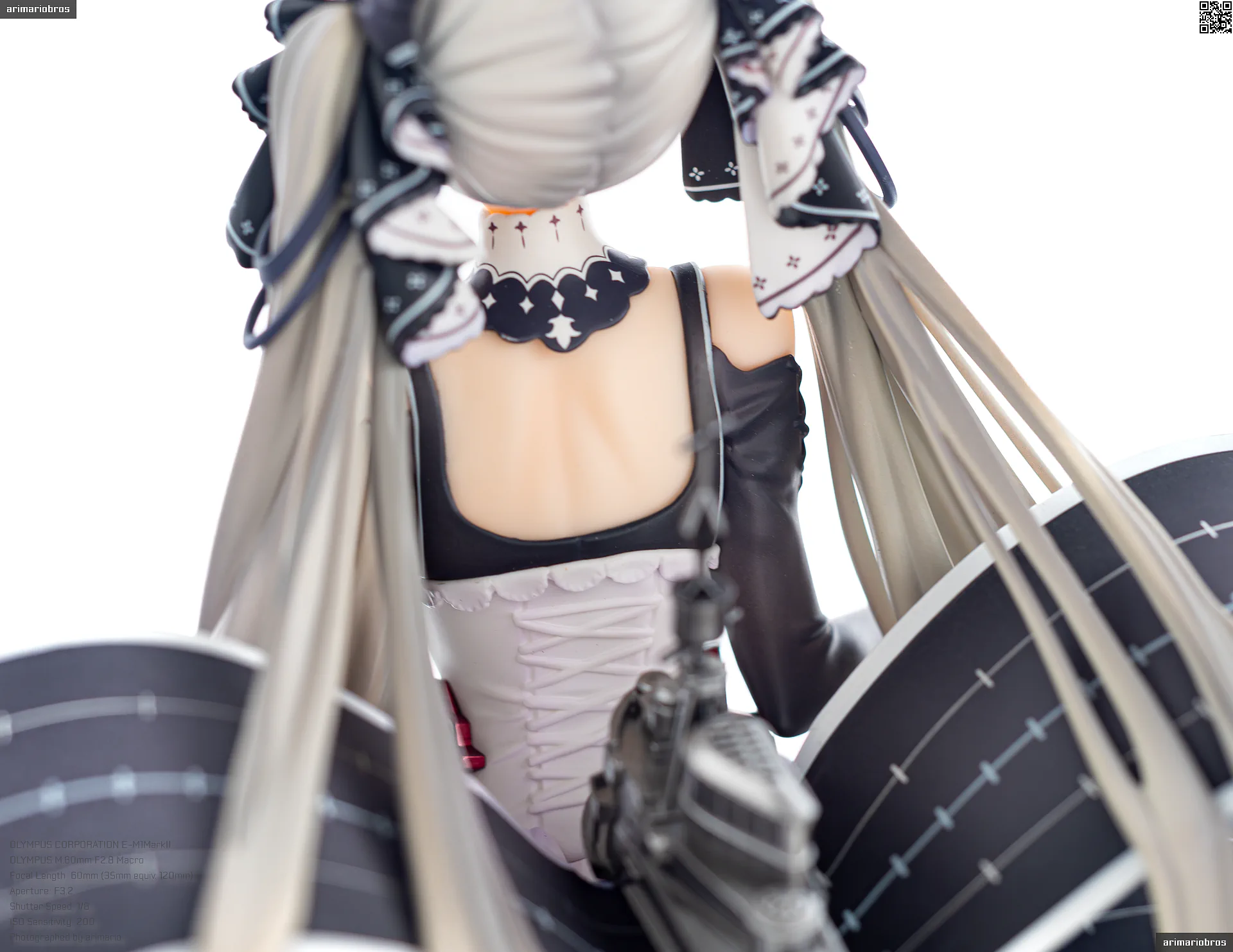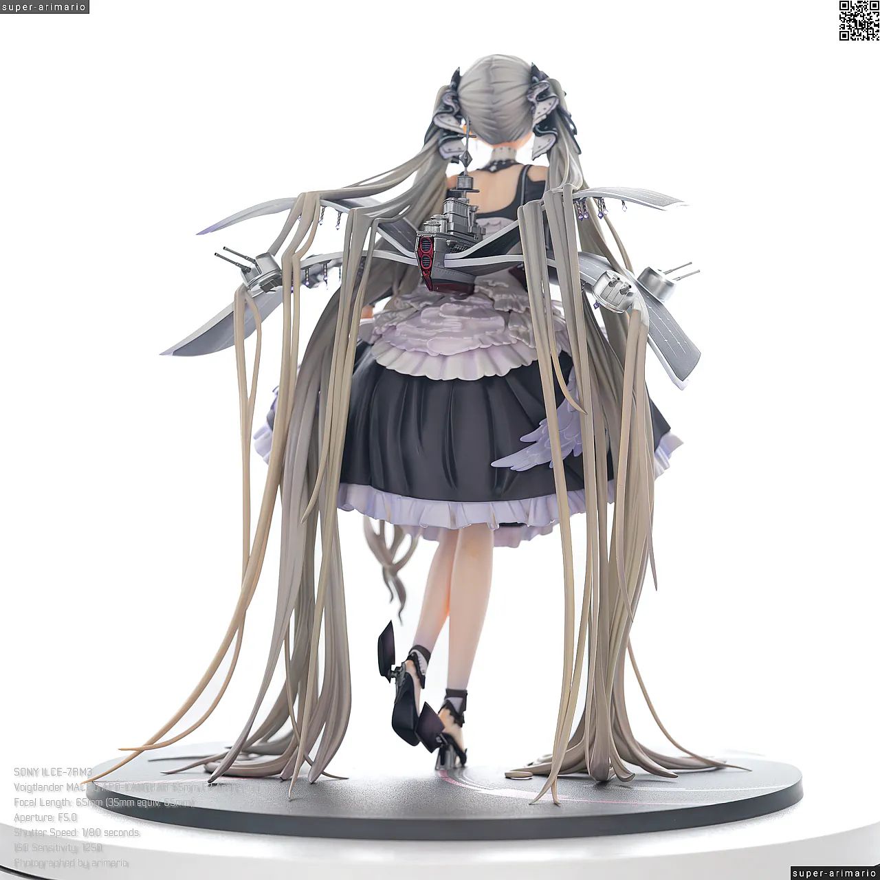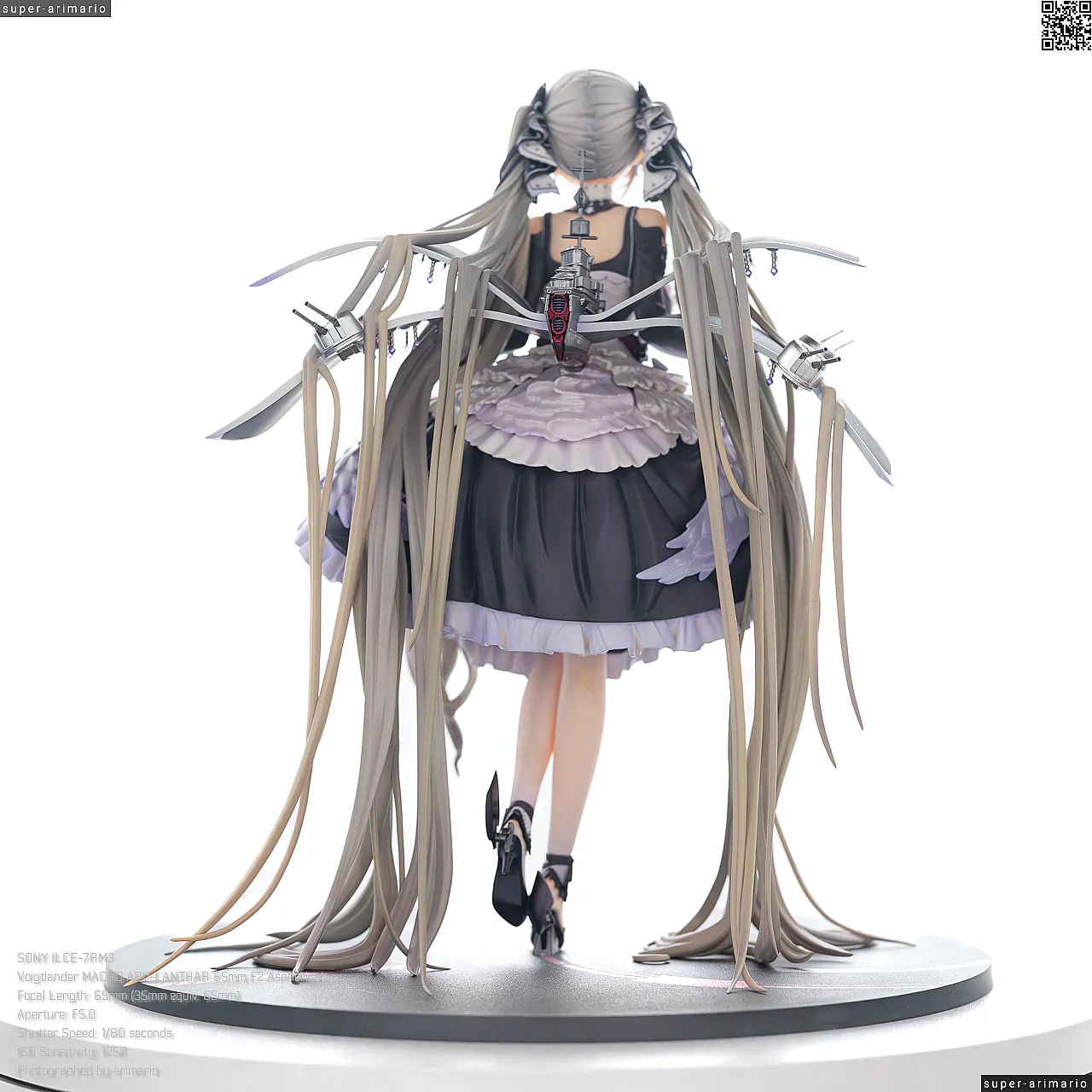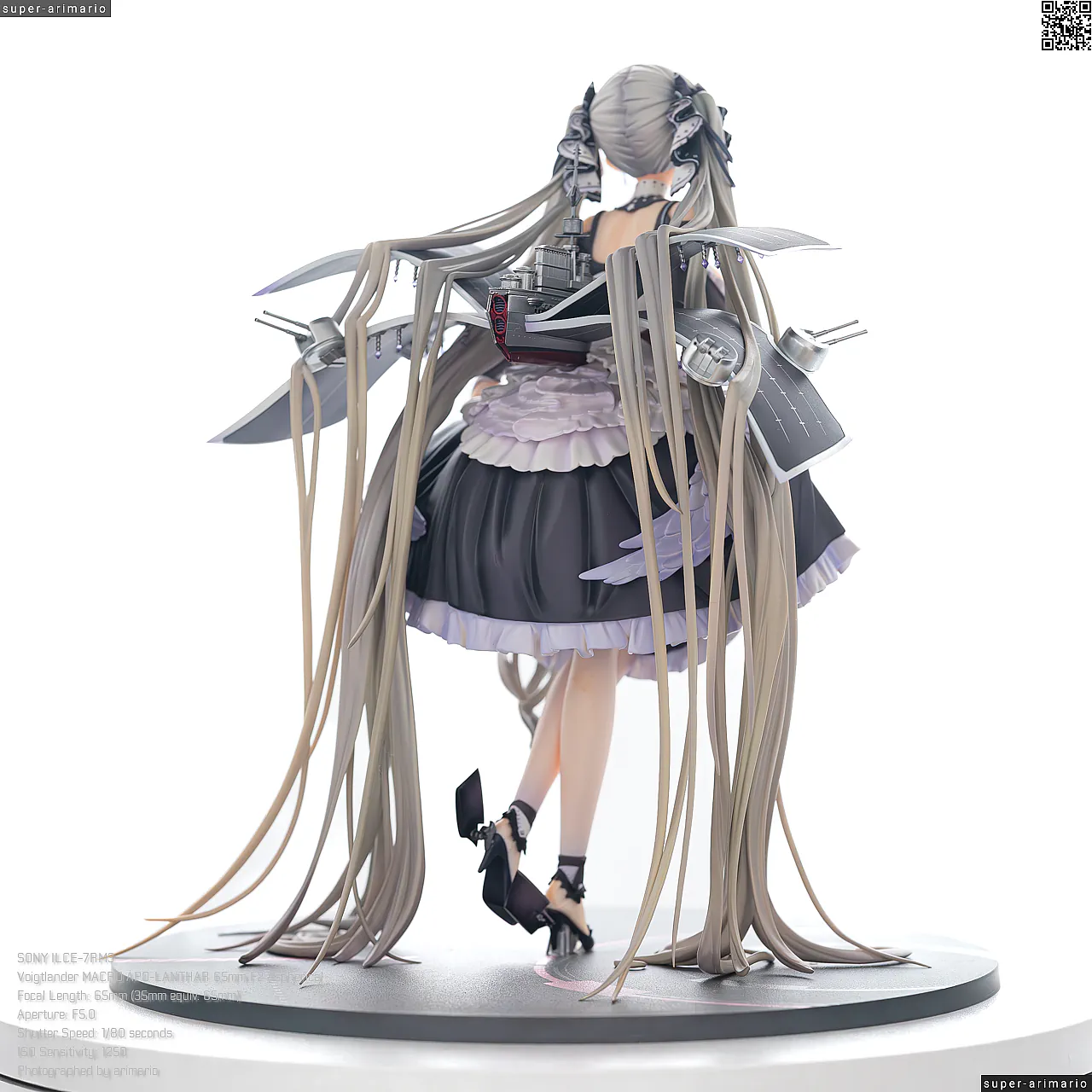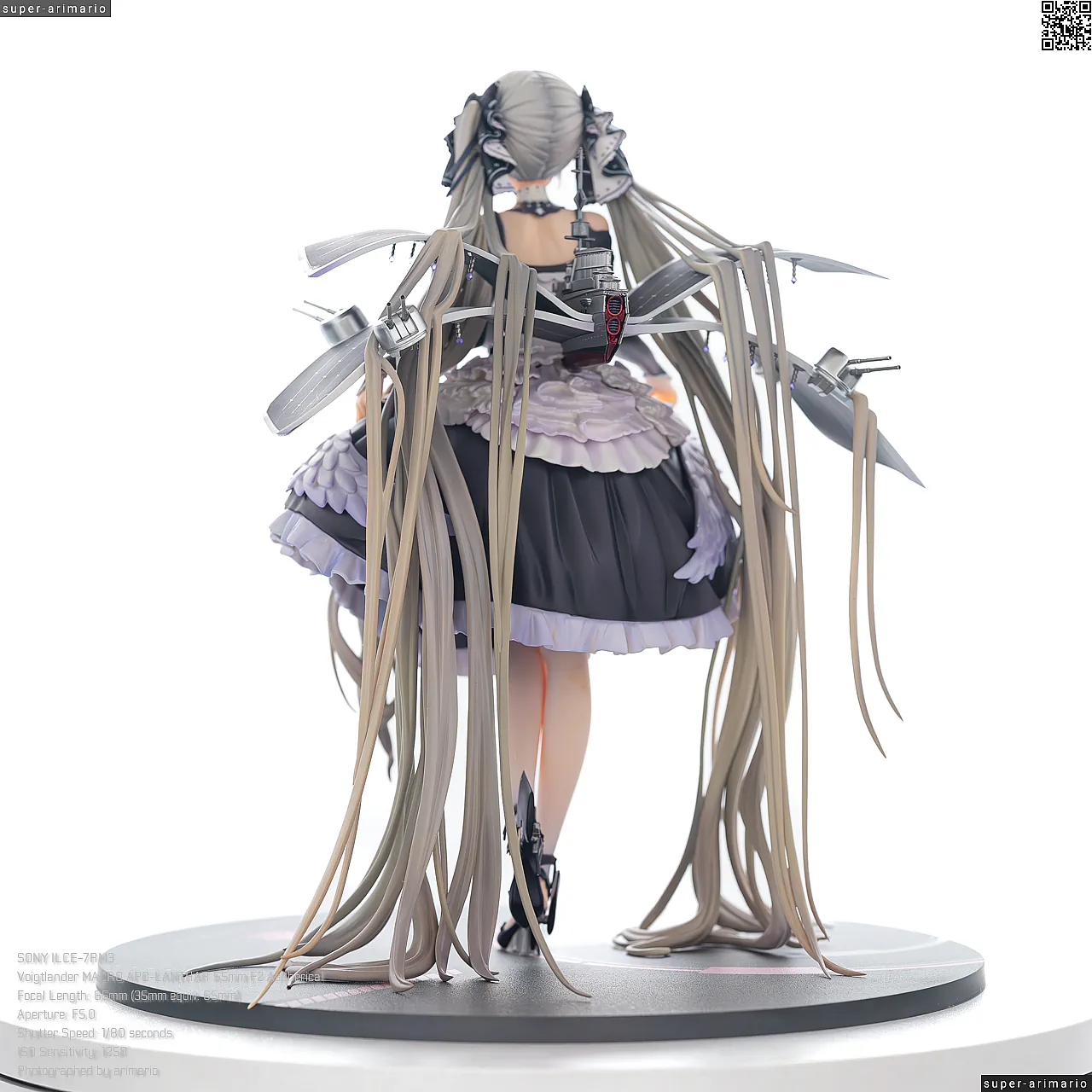 一方で、背中側は艤装パーツであまり見えない部分だからではないかと思いますが、どこか手抜き感のある仕上がり。コルセットの編み上げ部分は単調な白の塗りつぶしになっていますが、もうちょっと拘って塗ってほしかったなあ💧
