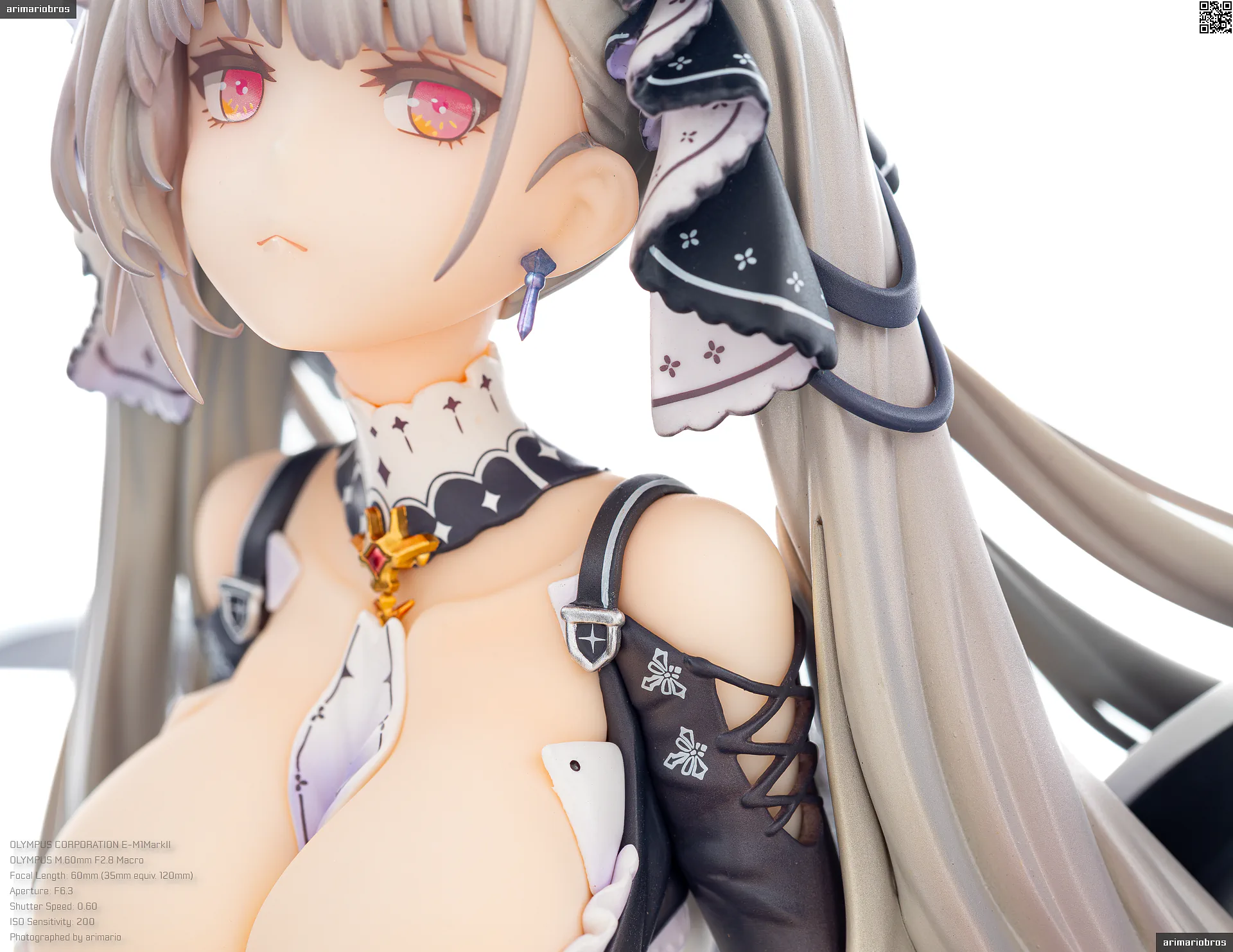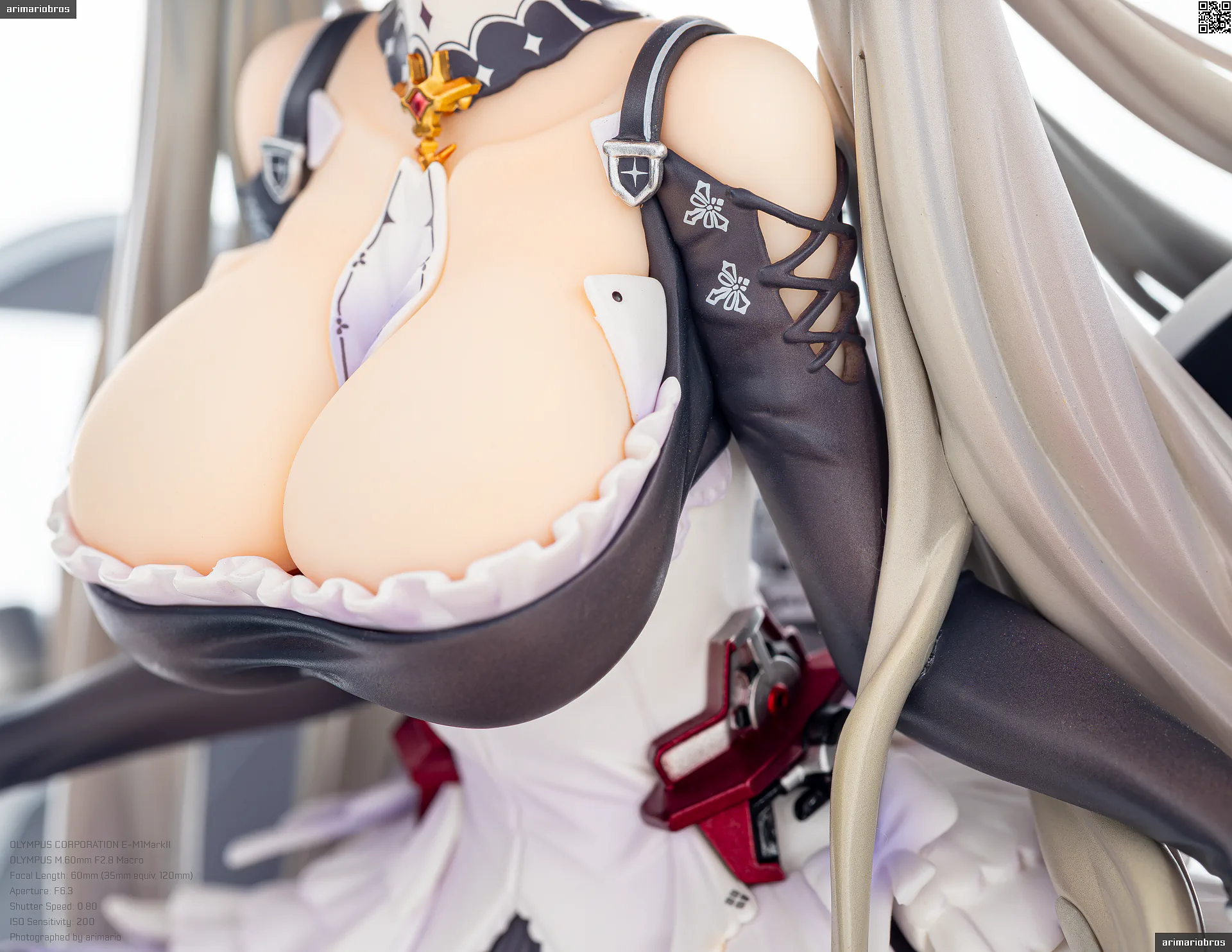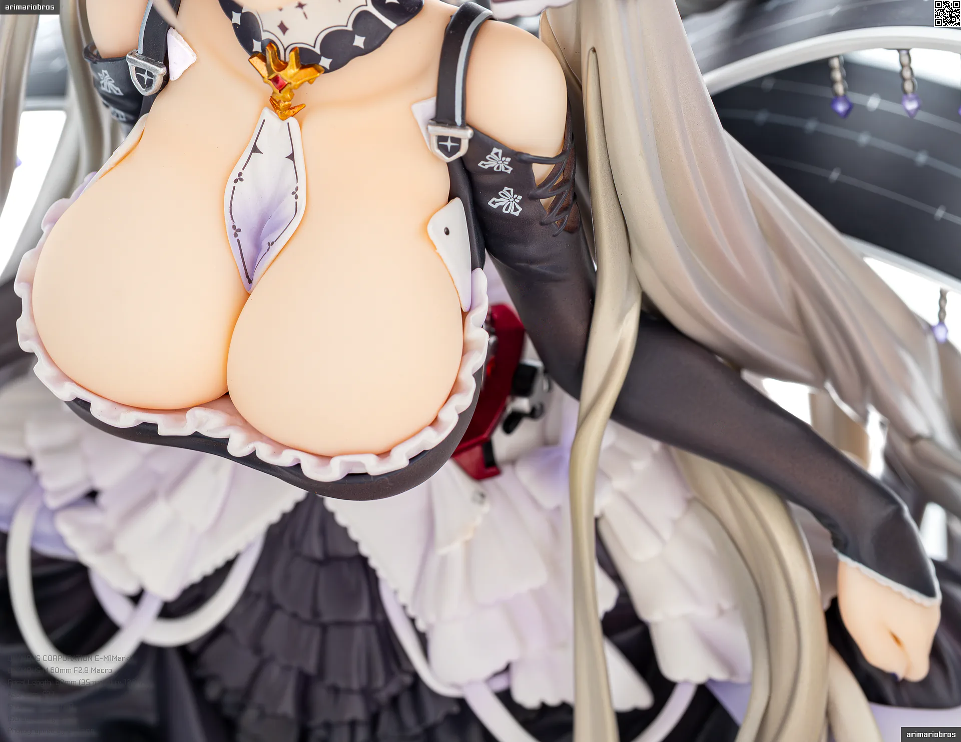 最後にバスト部分ですが、ボリューム感のあるバストをすべらかな塗装で再現。デコルテエリアやドレスのキワ部分にうっすらとピンクのハイライトが入っており、血色ある仕上がりになっています。このへんはさすが高価格帯のフィギュアだといえます。