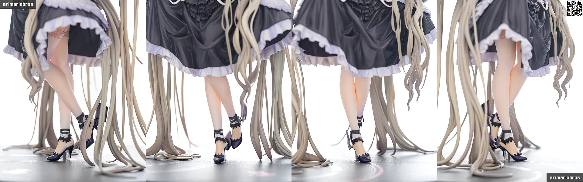 脚部は、ドレスに隠れておりあまり見どころはありません。バストの豊満具合やドレスのボリューム感に反して、随分と華奢なのが目立ちます。白いストッキングを着用しており、アームカバーと同様、うっすらと肌色が入っている透け感のある塗装です。