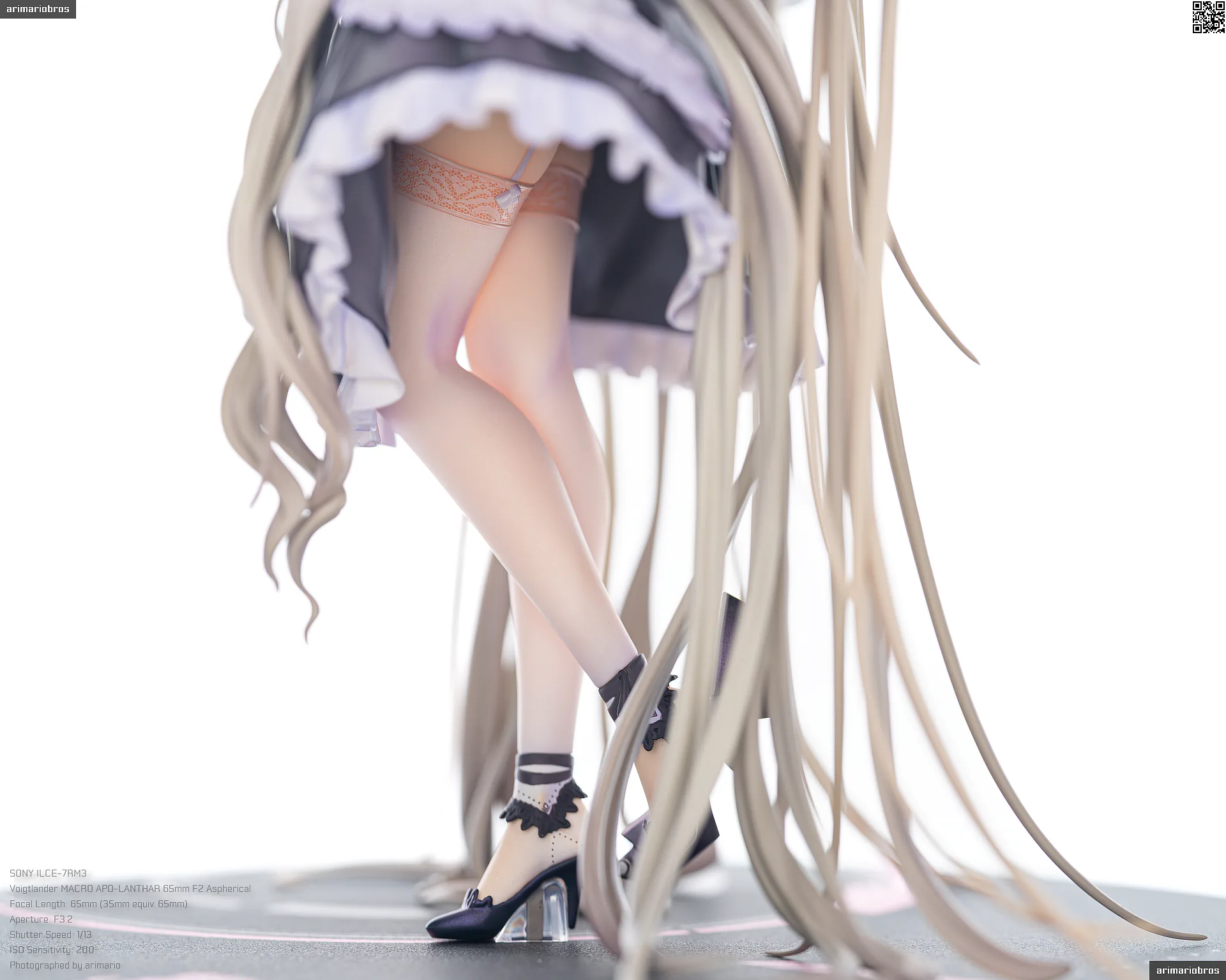 ロングスカートを着用していますが、下着はかなり凝ったデザイン・造形。まず、ストッキングのレース部分めちゃくちゃ細かく塗装されている時点でびっくりしたのですが、なんとガーターベルトまで作り込まれています。普通のフィギュアだと吊るし紐までしか再現していないことが多く、ベルト全体が再現されているのは珍しいですね。