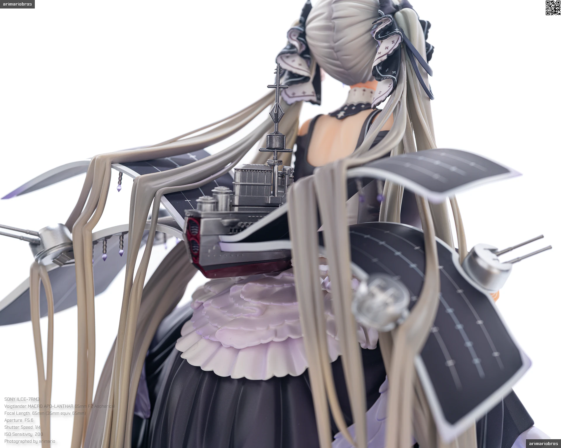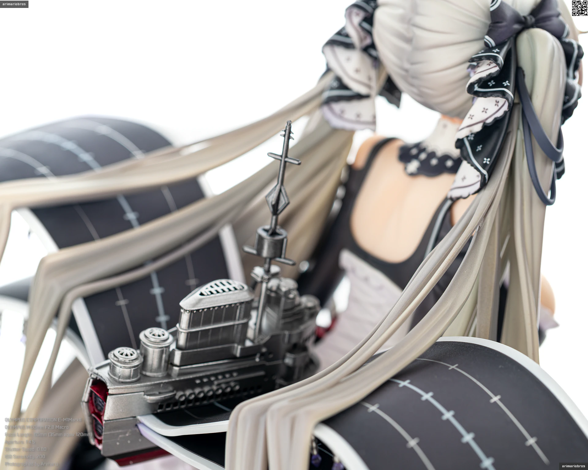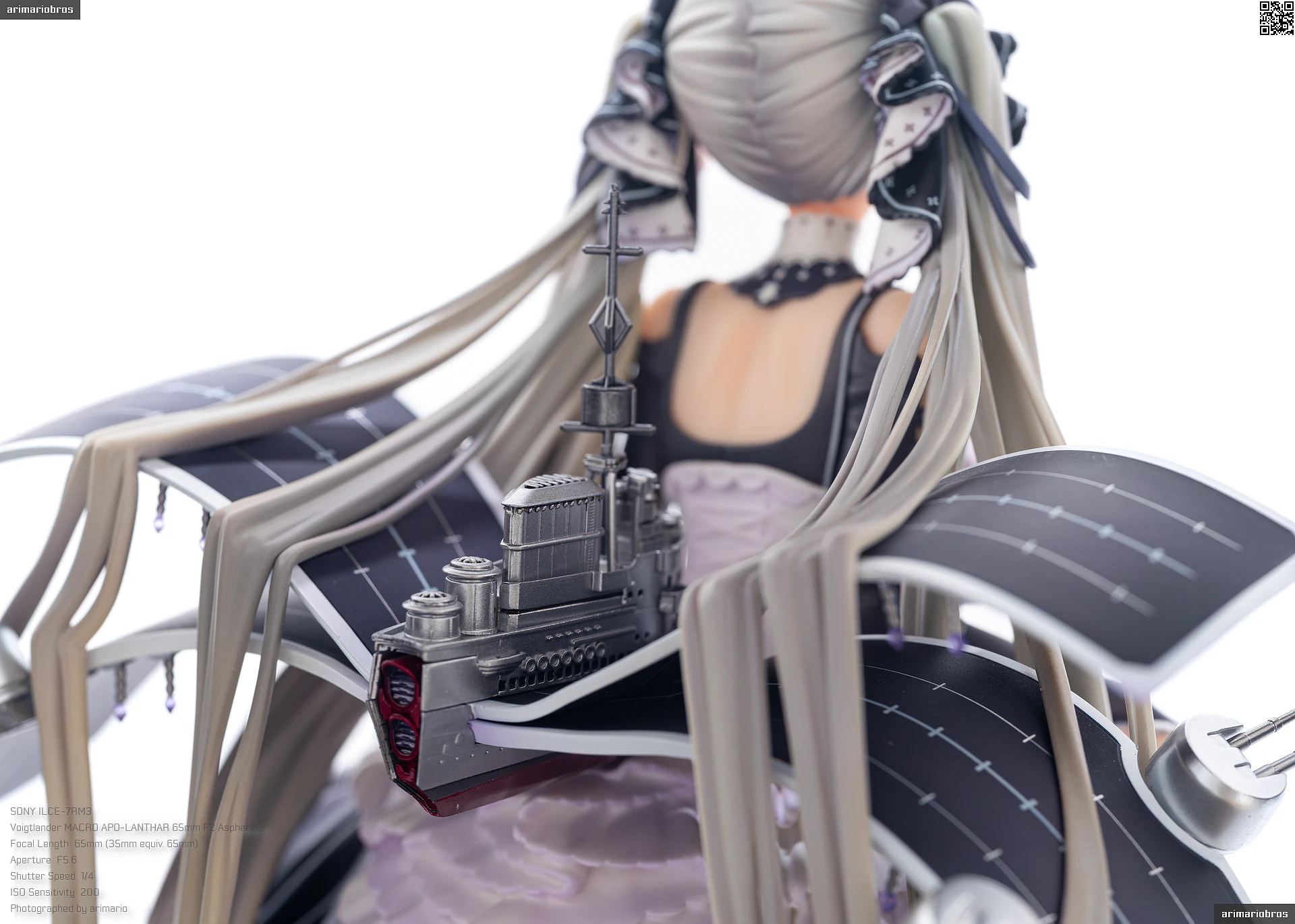 翼のように広がる艤装はシャドーの濃淡で、本体にマッチした淡さのある風合いです。メタリックカラーで彩色された、船体や砲塔の質感にもご注目下さい。