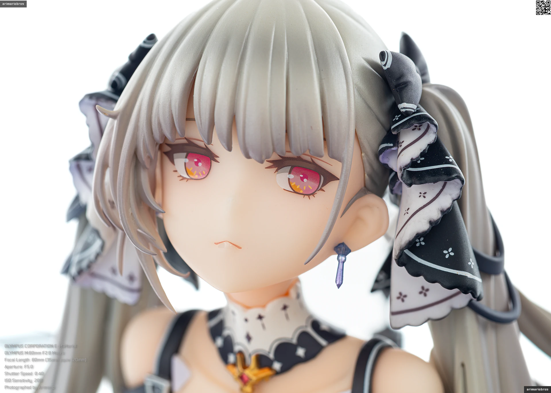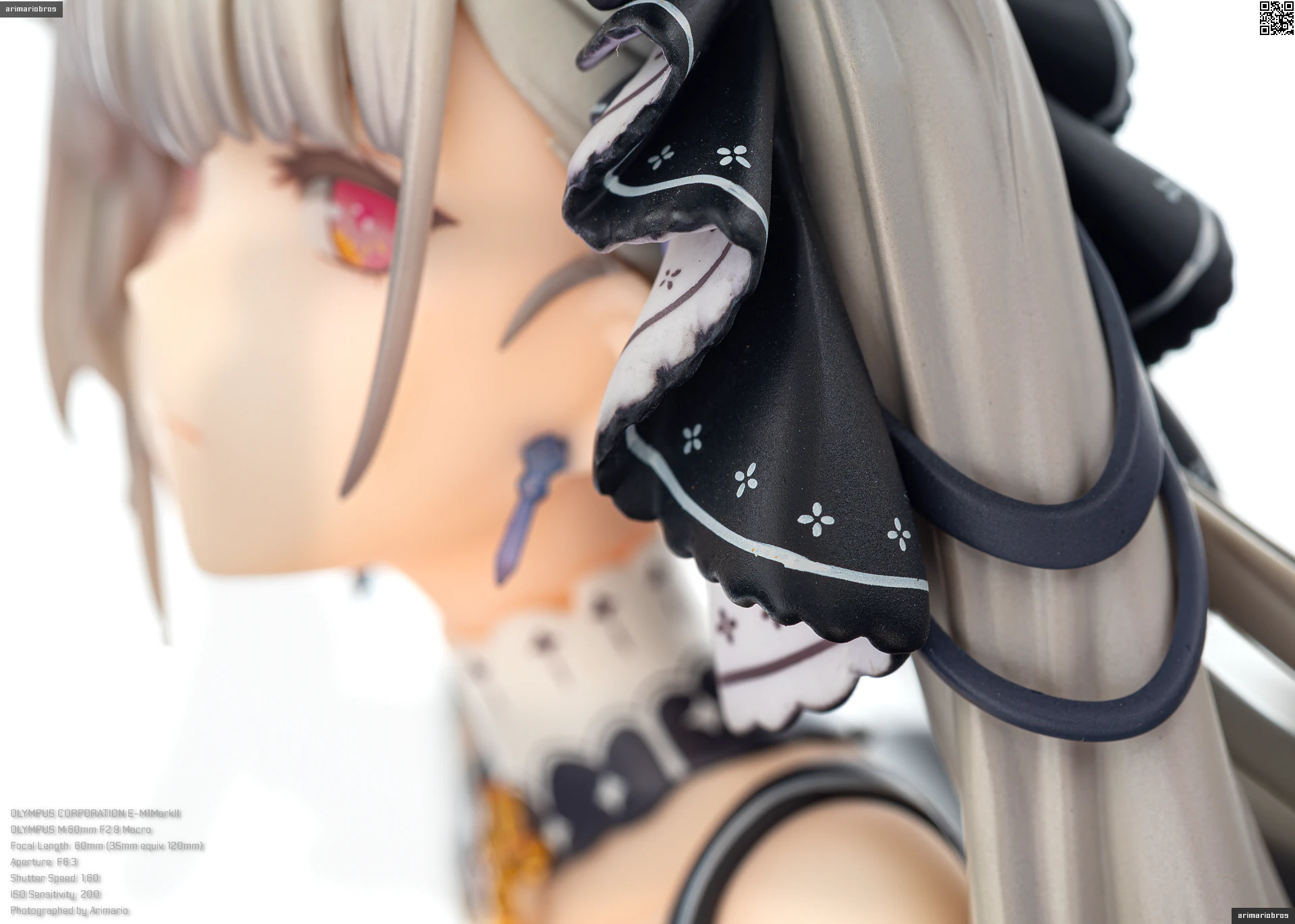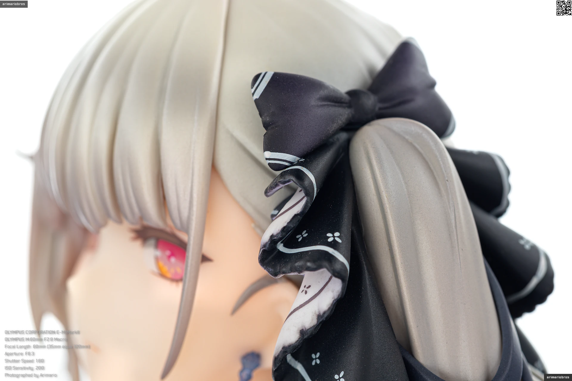 ツインテールの根本にはリボンの髪飾りを着用しています。フリルハンカチのような際が波打った複雑なデザインですが、安定したプリント品質。ただ、遠目からではあまりわかりませんが、細かくみると塗装のにじみがちらほら見られますね。