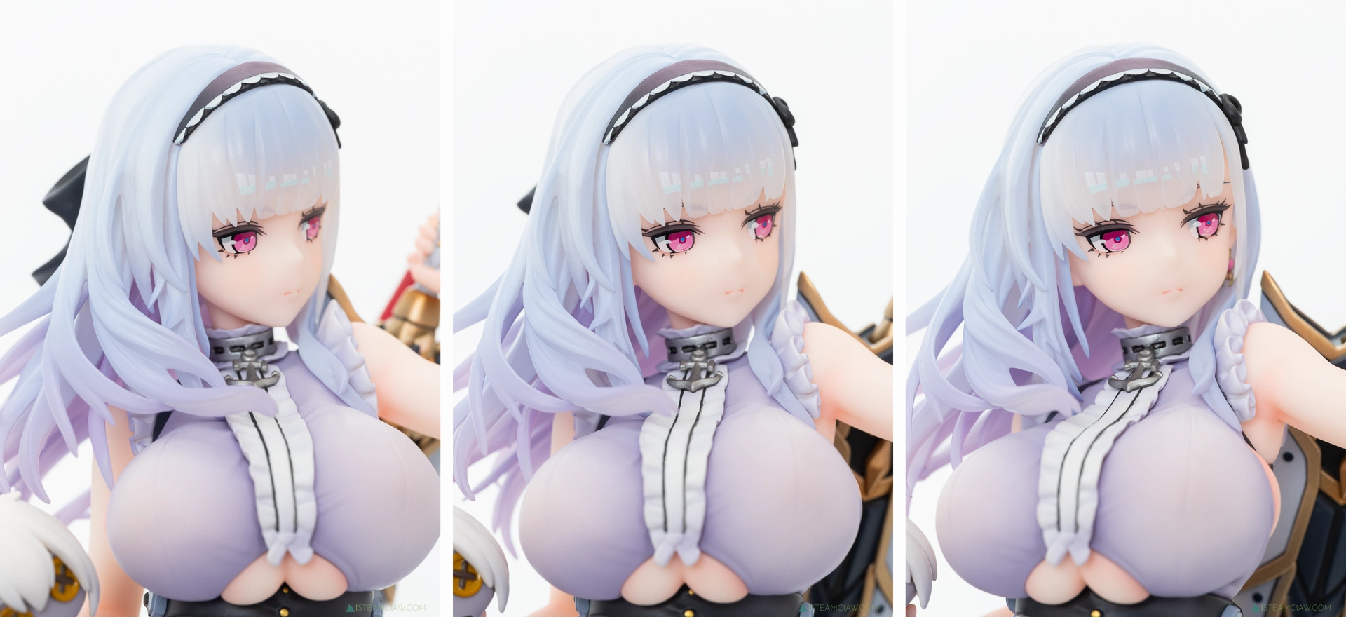 全体像の箇所でも触れましたが、肉感を強調した造形。わかりやすいところでいうとバストの下部分が思いっきり零れ落ちそうになっています。他にもワキまわり、エプロンの上に肉が乗っているなど細かいところまで表現されていて、むっちり感への強いこだわりを感じますね~😅
