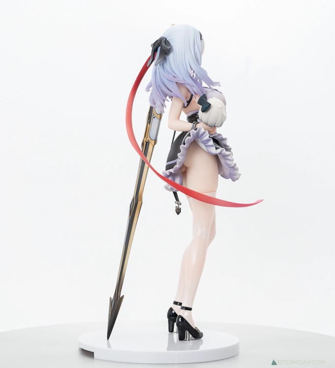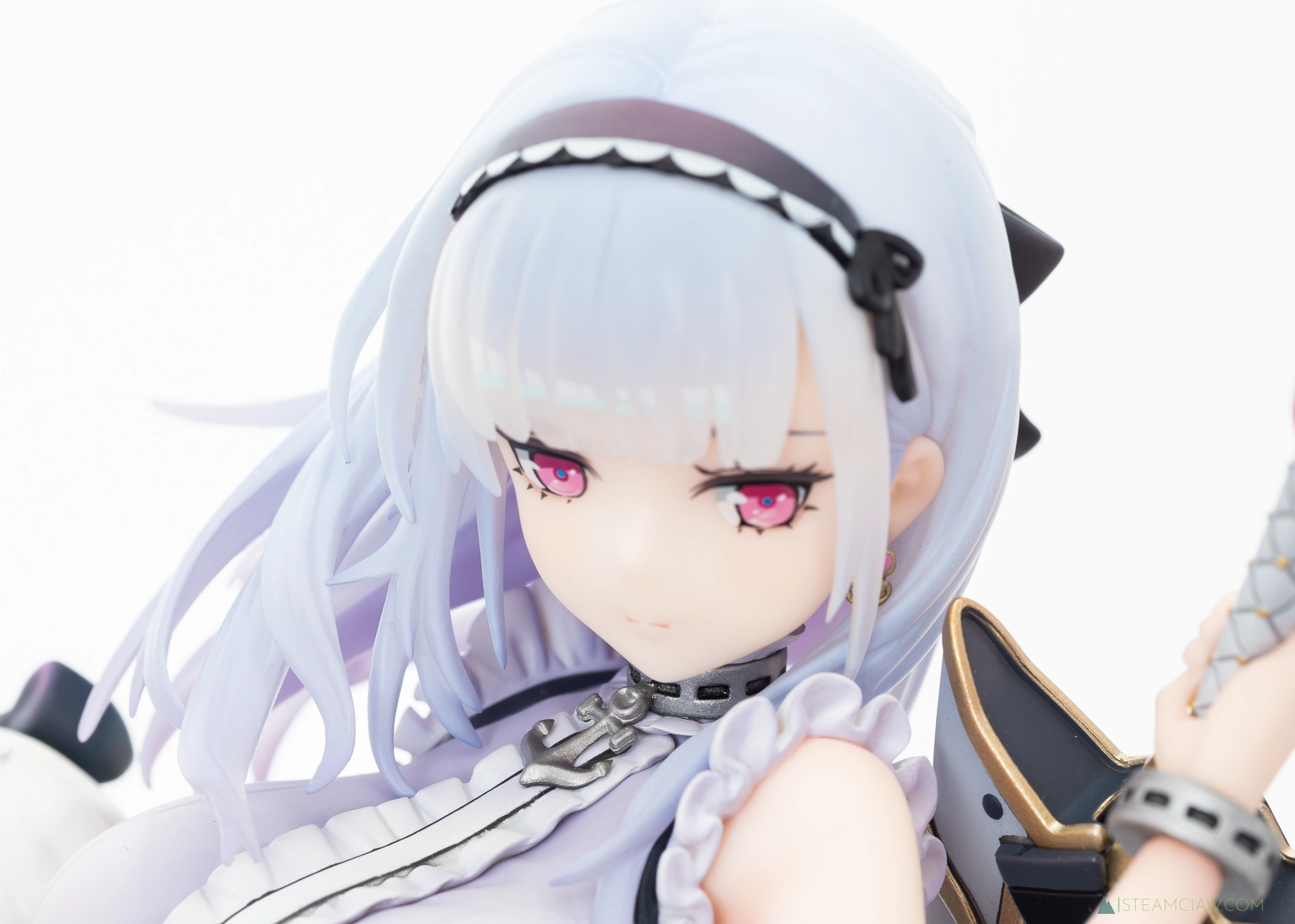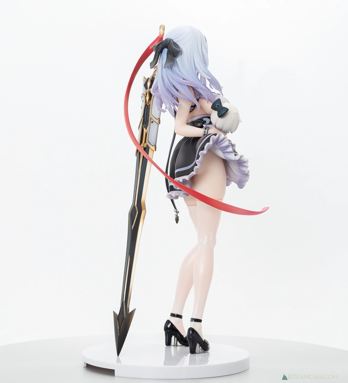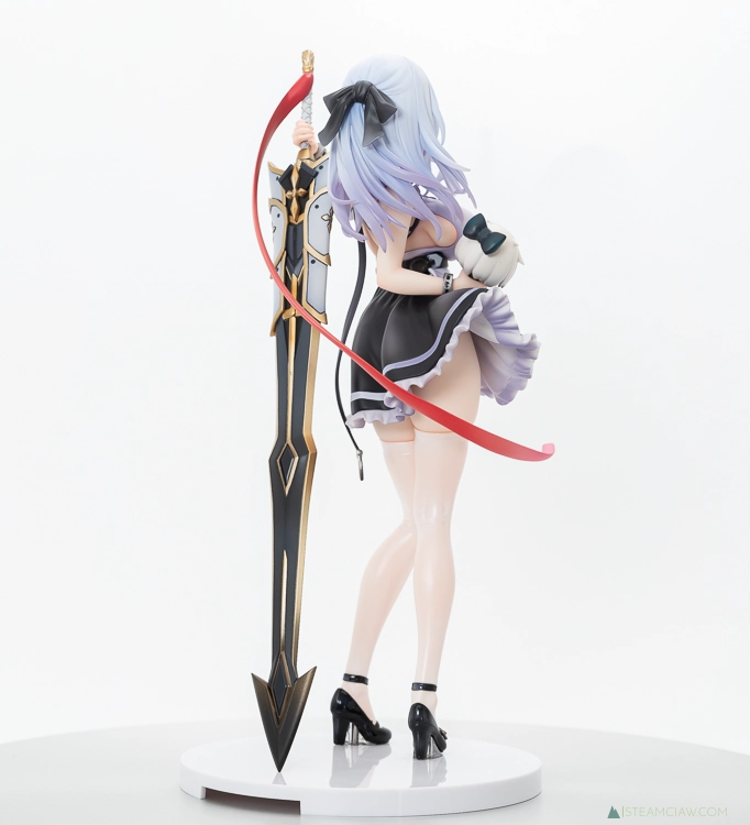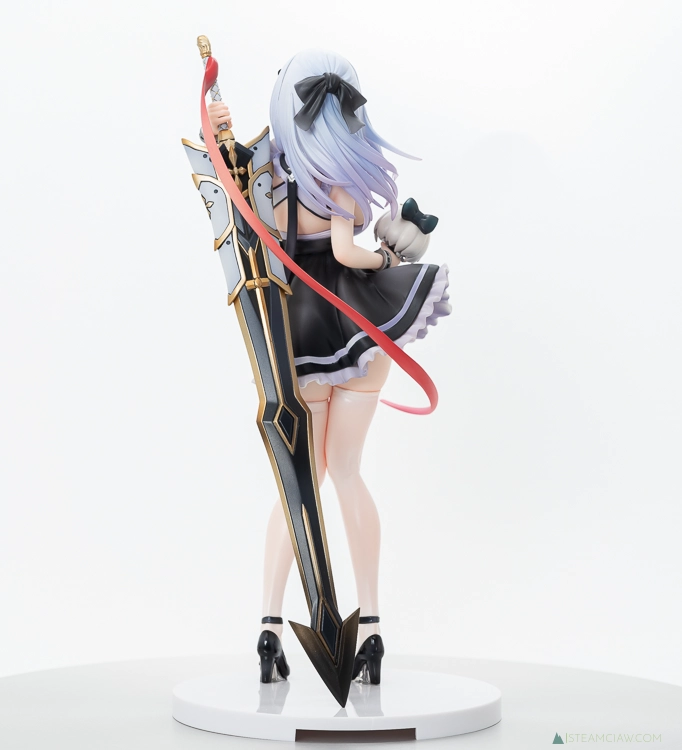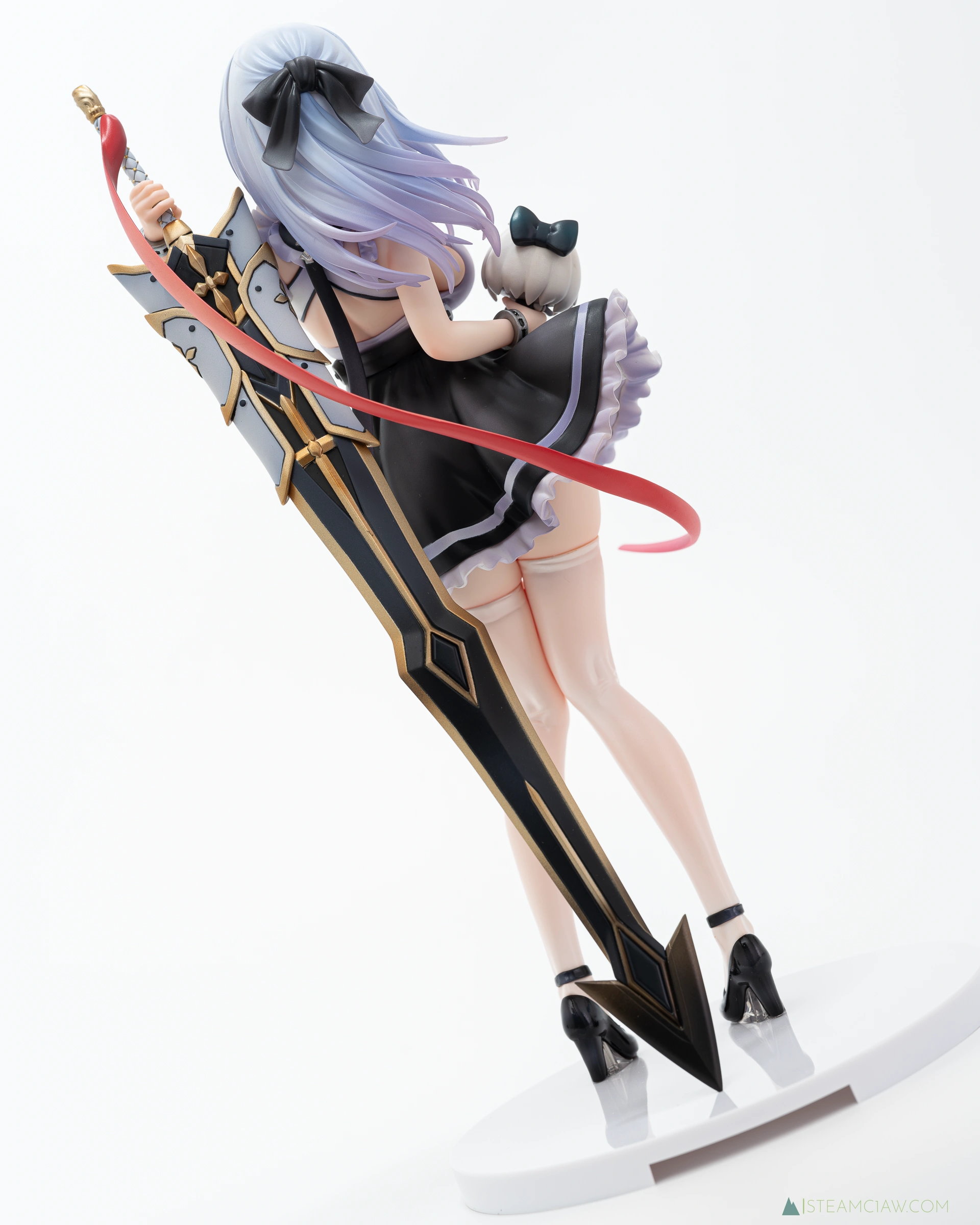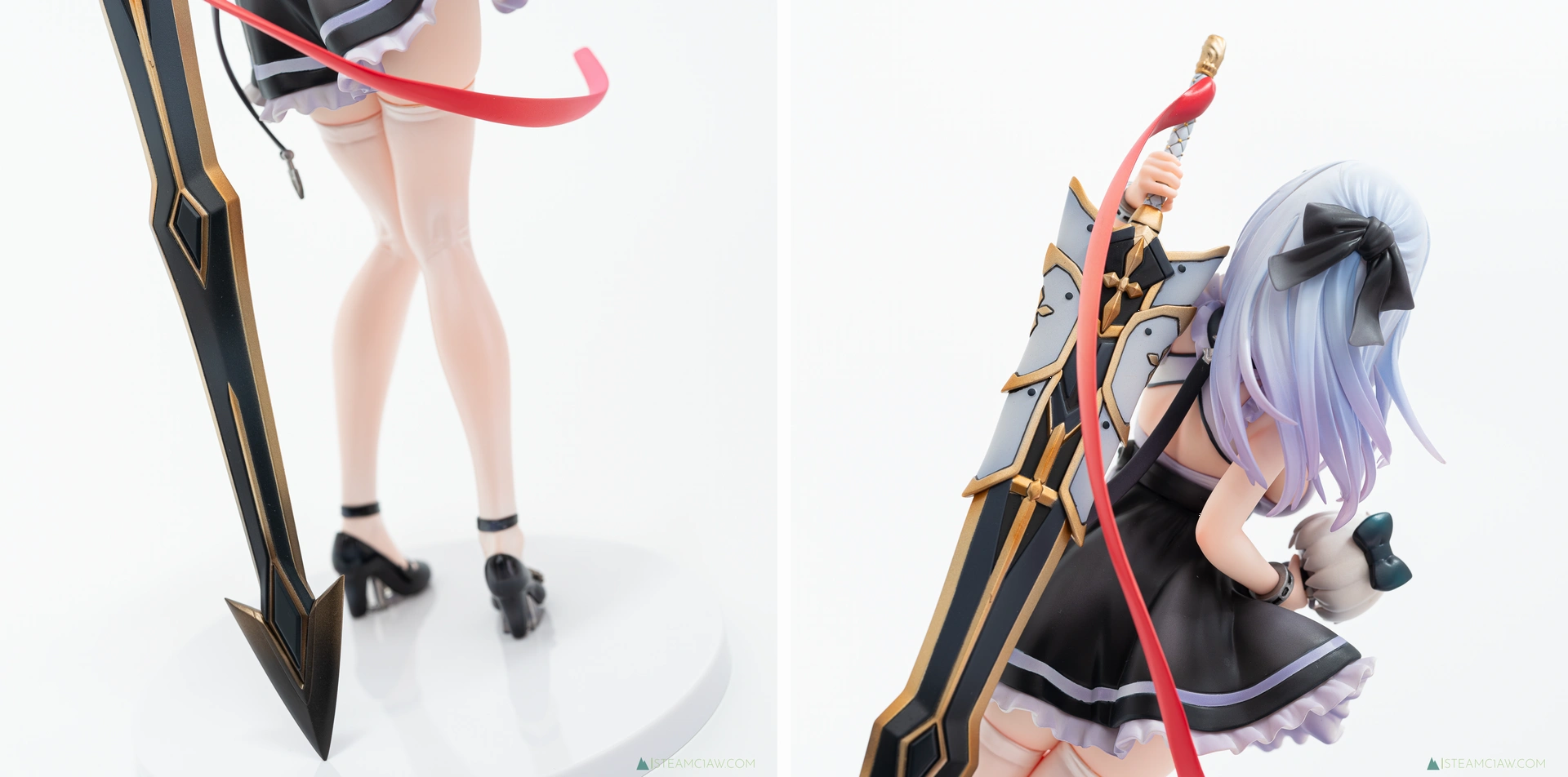 頭部にはメイド風の白黒カチューシャを着用のほか、後頭部に黒いリボン。よく見ると塗装時のホコリの巻き込みがあったりしますが、目立つほどではないかな。写真だと分りづらいですがリボンは端の部分がクリアパーツになっています。