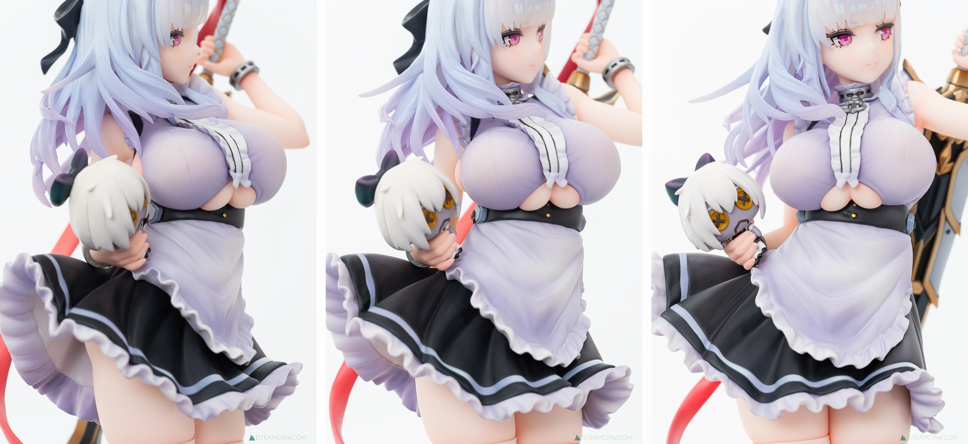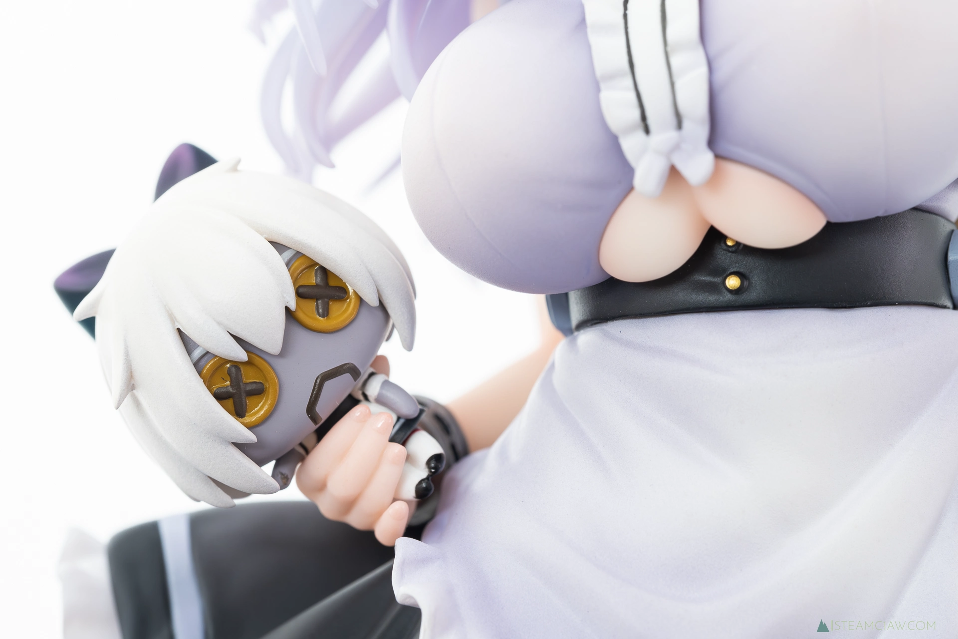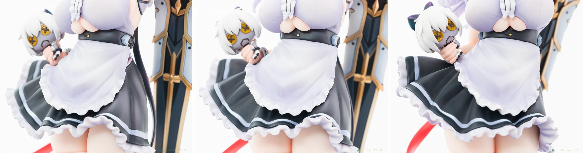 スカートは右側がめくれている、浮き上がっているような造形。こういう動きのあるデザインは良いですね。バストではち切れそうになっている胸部分はピシッと皺がない一方で、エプロンやスカートの裾には服装の動きに沿った皺が入っており、そのへんリアリティを考えられた立体化です。