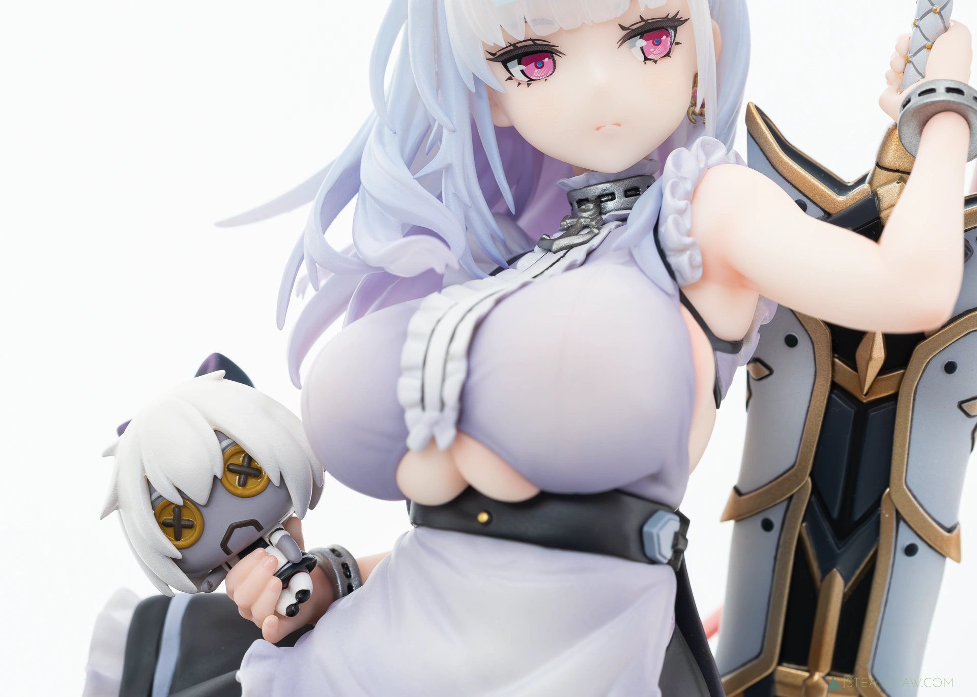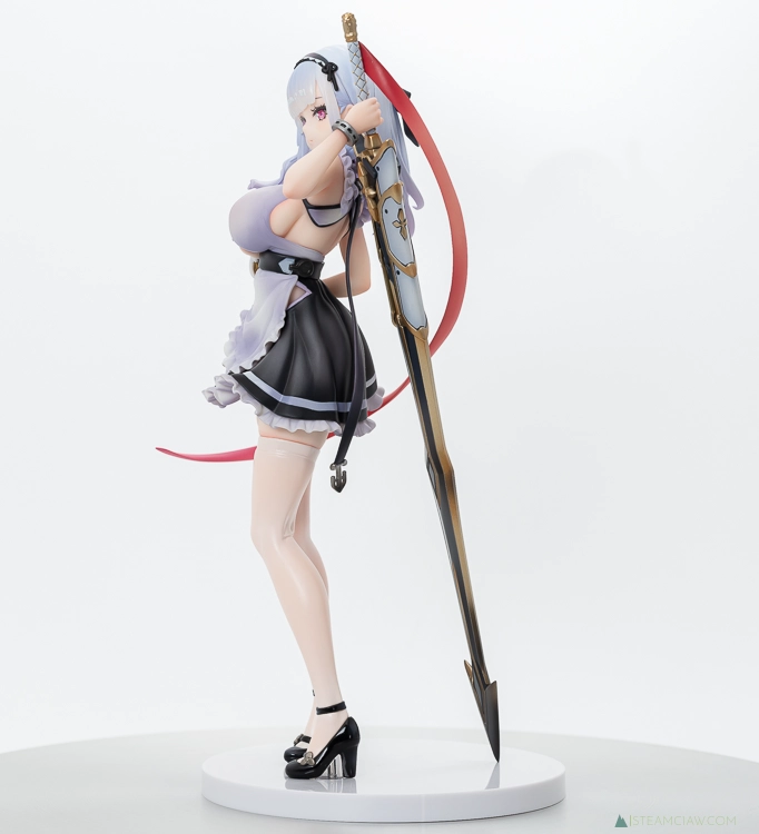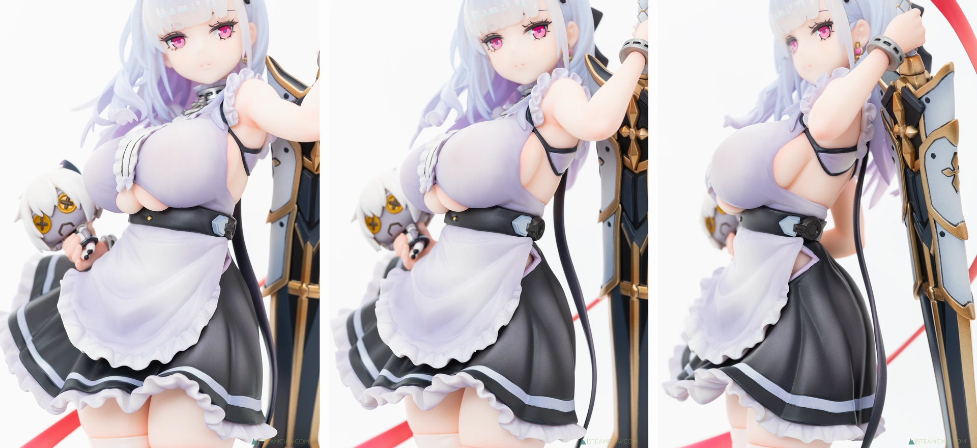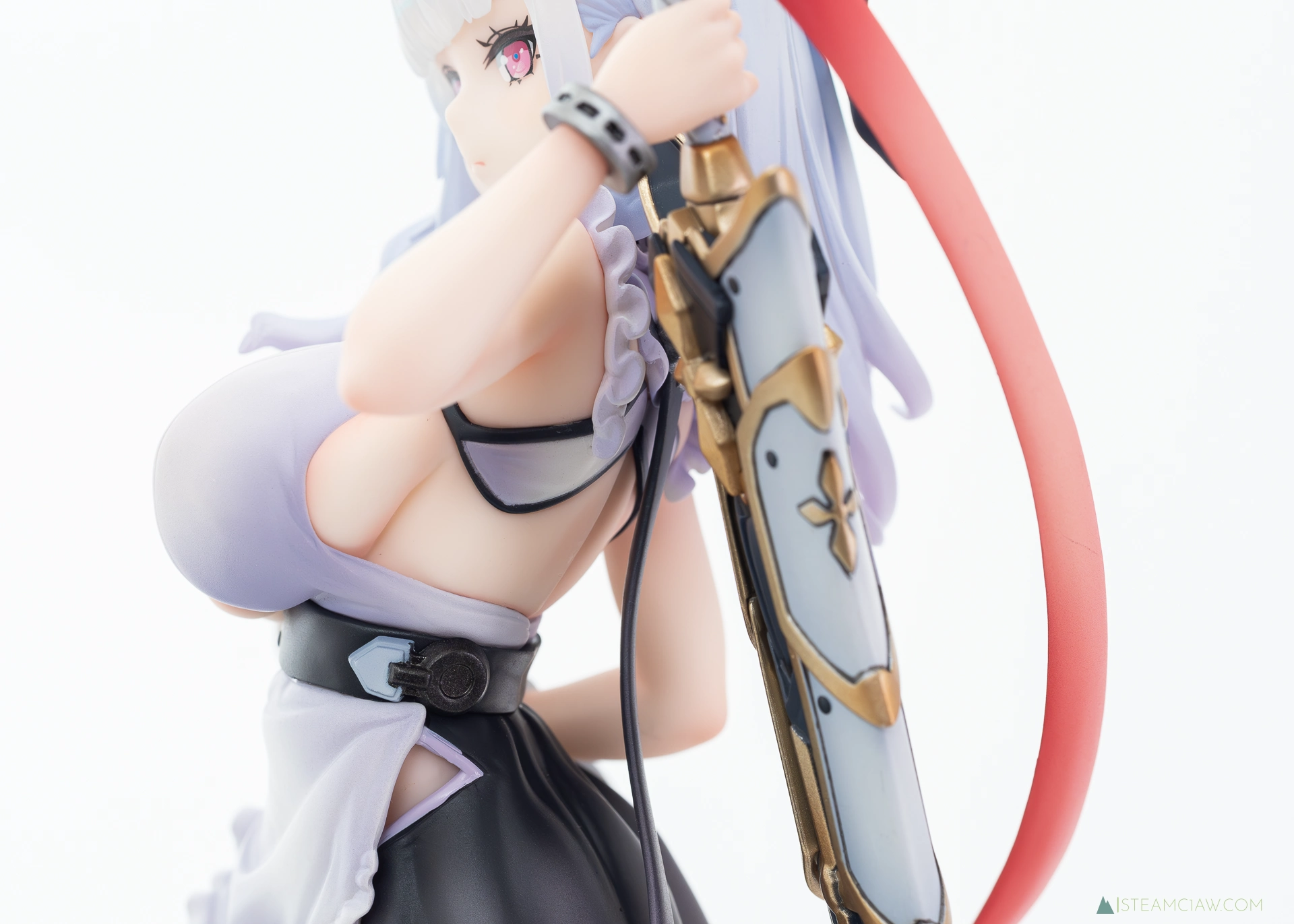 スカートは右側がめくれている、浮き上がっているような造形。こういう動きのあるデザインは良いですね。バストではち切れそうになっている胸部分はピシッと皺がない一方で、エプロンやスカートの裾には服装の動きに沿った皺が入っており、そのへんリアリティを考えられた立体化です。