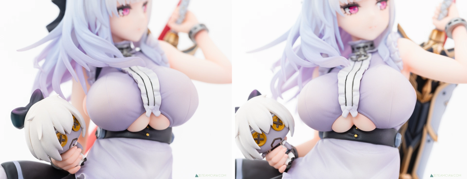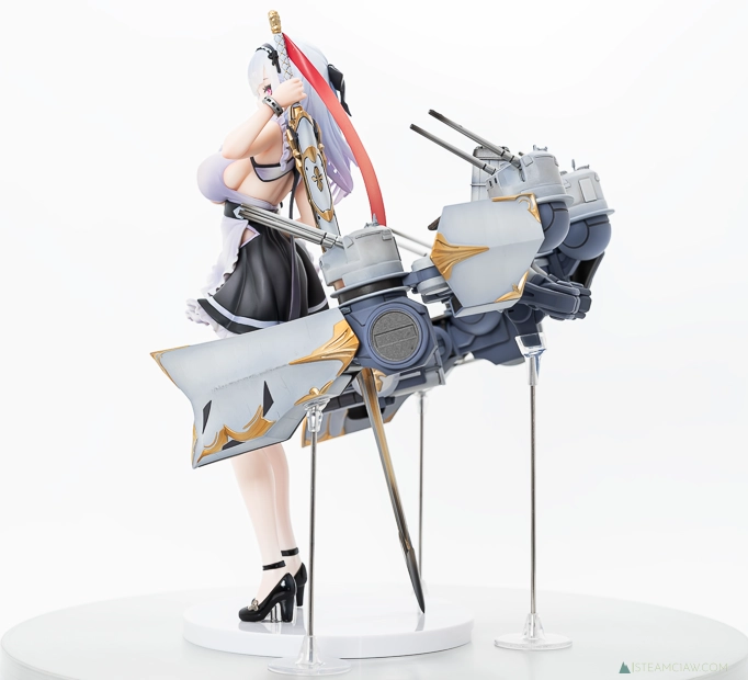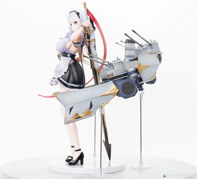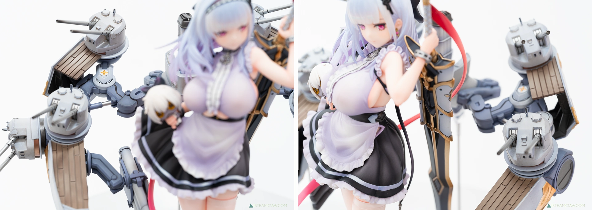 アズレンは着せ替え衣装のフィギュア化が多い作品で、特に昨今は通常衣装よりも着せ替え衣装のほうが多くフィギュア化されているくらいですが、このダイドーは通常衣装での立体化。商品名の「重装版」とは、キャラクター本体と通称「艤装」と呼ばれる兵器部分の両方が付属することを意味しており、キャラクター本体だけの「軽装版」が同時に発売されています。