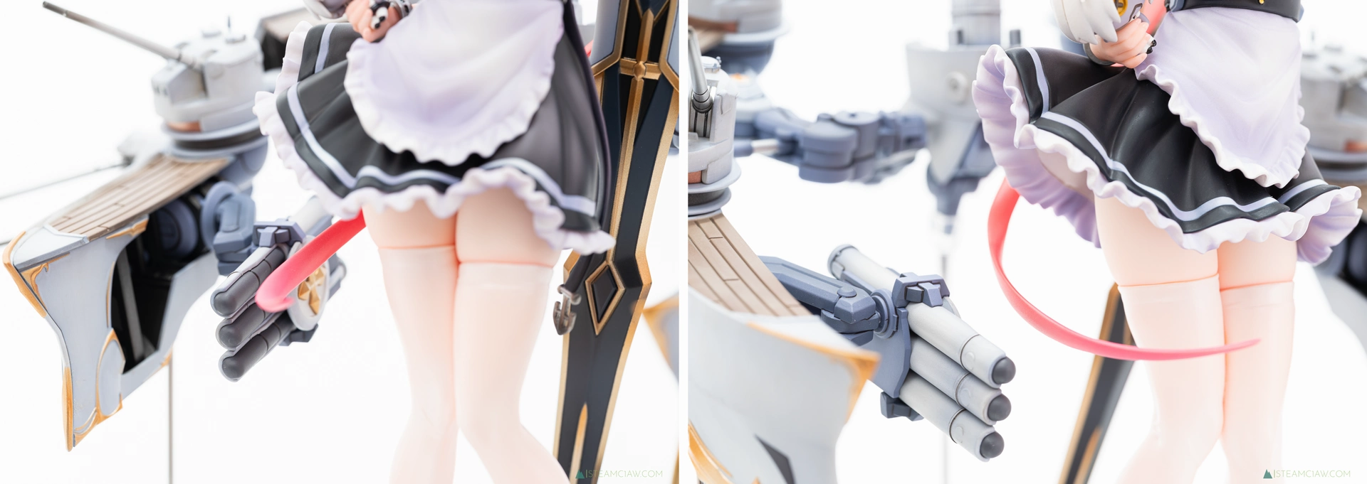 このむっちり感へのこだわりっぷりは好きな人には強烈に刺さると思います。フィギュア全体をみても手堅い造りで、特に艤装パーツ精巧さは見事。床置きの艤装パーツのおさまりが良くないという弱点はありますが、隙のないフィギュアです。