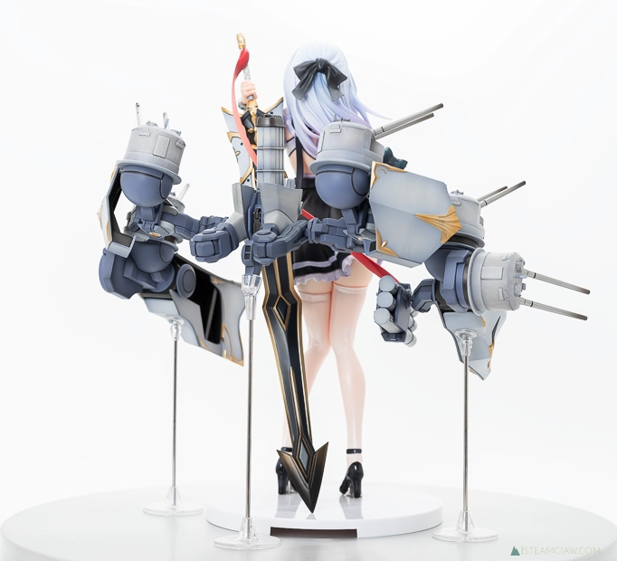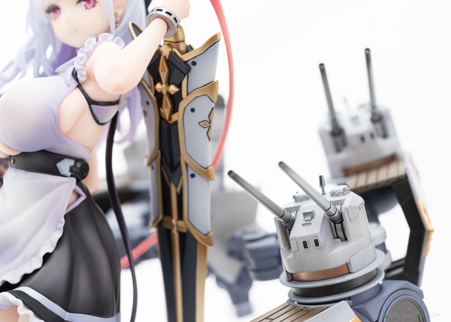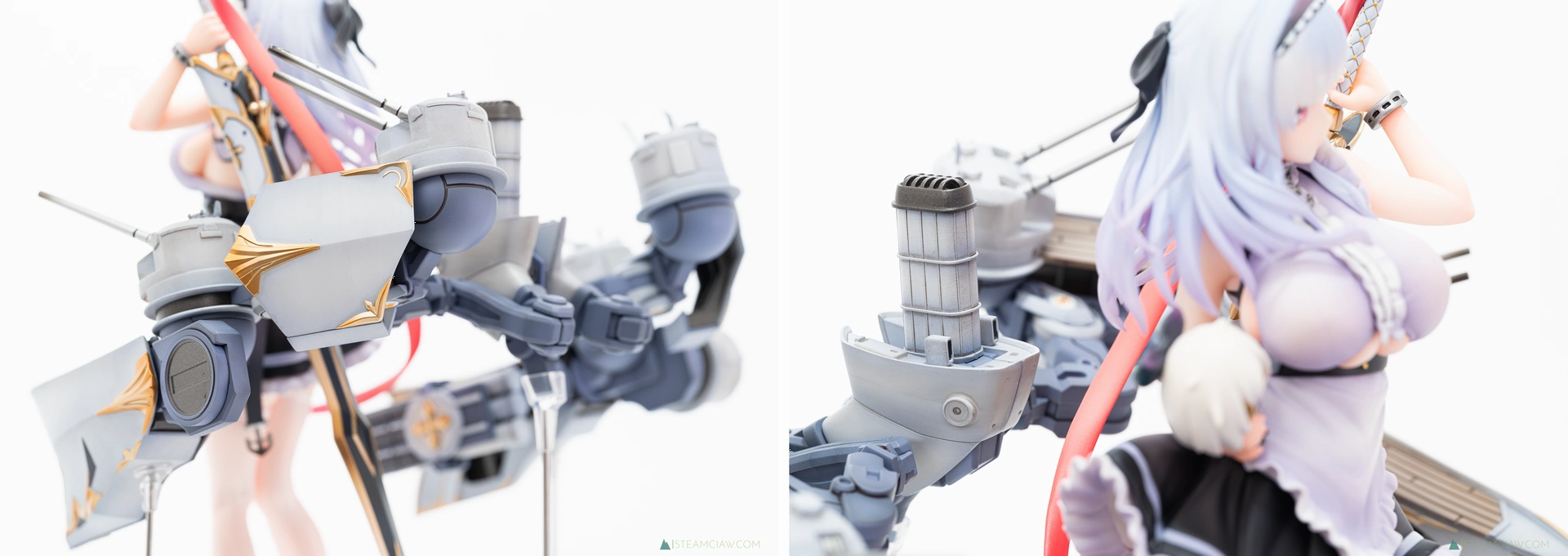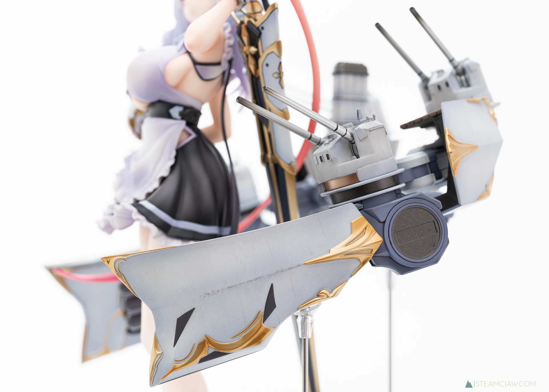 そして、この重装版のハイライトとなる艤装パーツ。アズールレーンの艤装パーツ付きの通常衣装 (立ち絵) 立体化商品として、他に「ホノルル」「セントルイス」などが出ていますが、それらフィギュアの中でも重量級の艤装パーツが付属しています。
