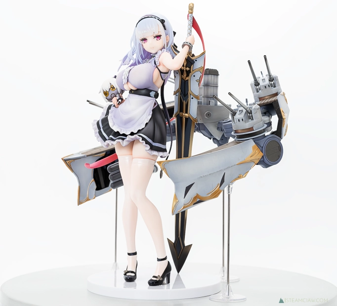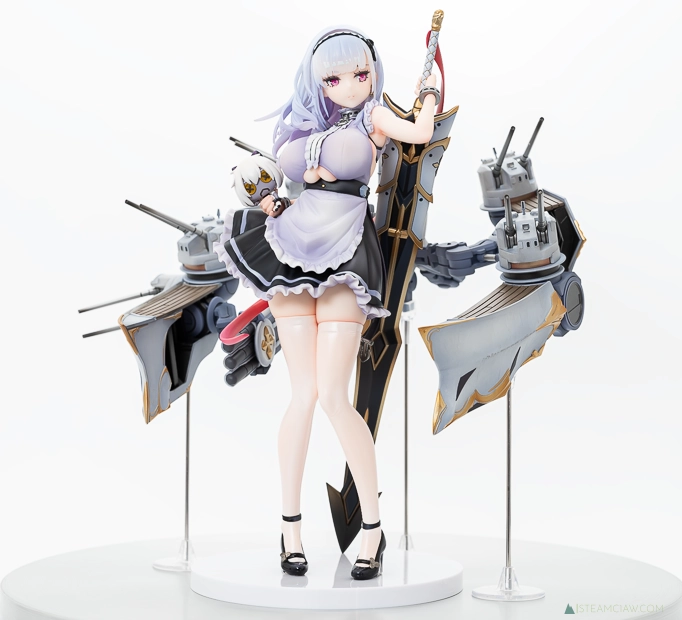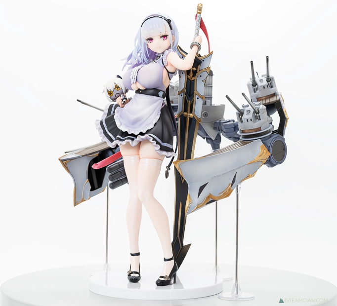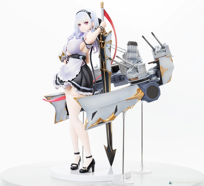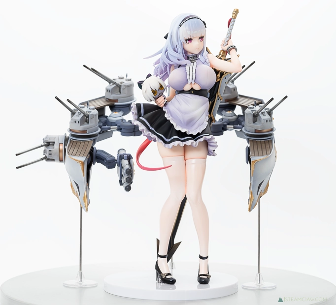 原作はマンジュウとヨンシーが共同開発する中華スマホゲーム『アズールレーン』(通称アズレン) ですね。このサイトでもフィギュア商品を紹介している『ドールズフロントライン』と同様に「艦これ」こと『艦隊これくしょん』に触発された兵器擬人化作品の一つ。あちらが「艦これ」のゲームシステムをベースに銃器を擬人化したゲームであるのに対し、こちらは「艦これ」同様に軍艦を擬人化しつつ、アクション要素を取り入れた別ジャンルのゲームに仕上げています。