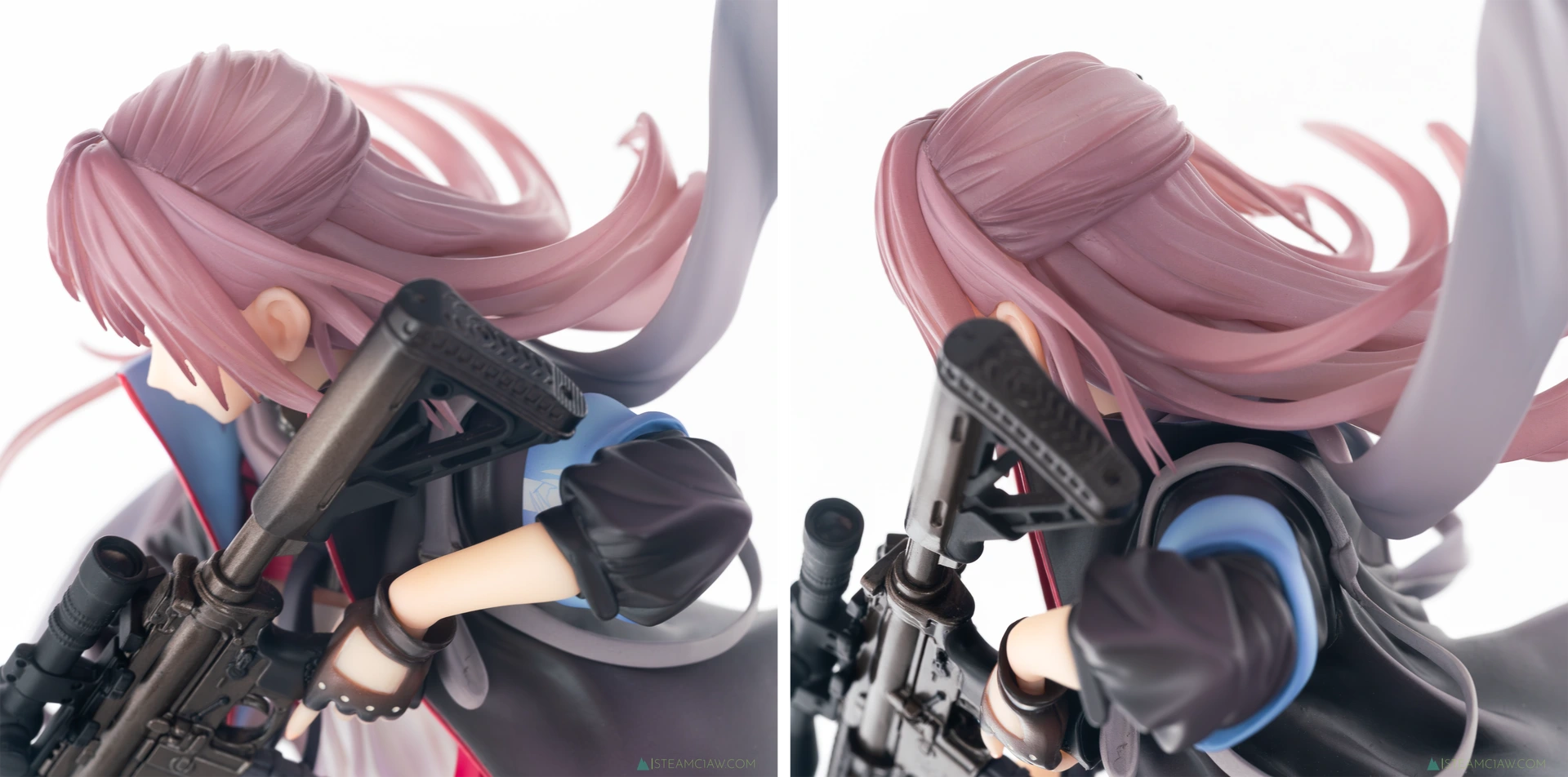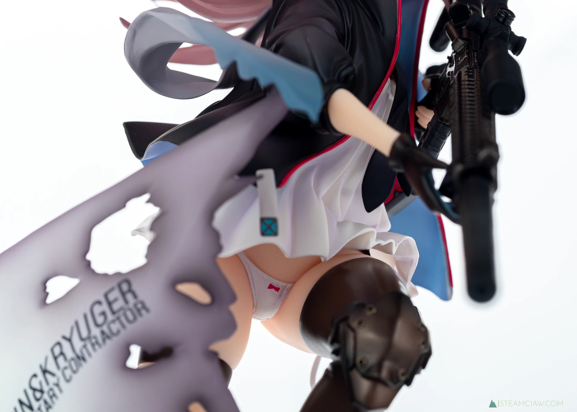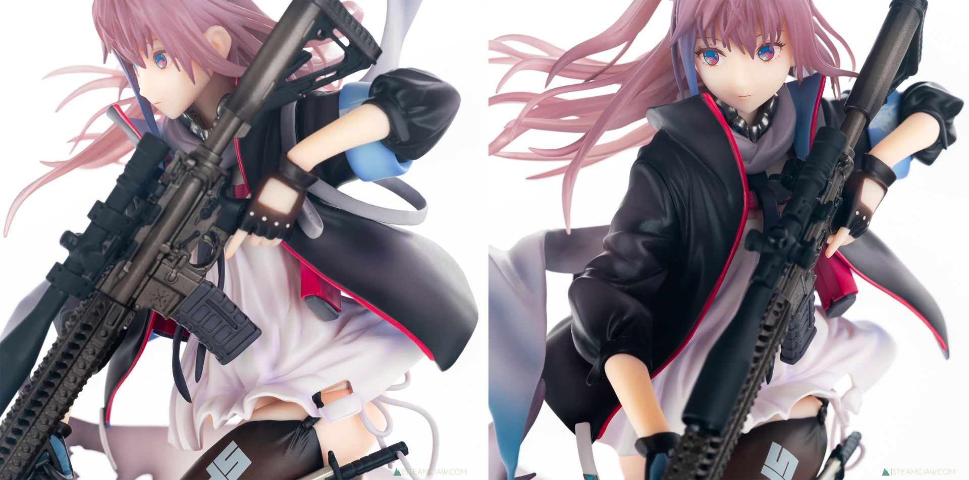 キャラクターの元ネタについてはともかく、このファット・カンパニーによるST AR-15の特徴は何といっても、オリジナルデザインでの立体化という点でしょう。ドルフロキャラクターのフィギュア商品は数多くあれど、その大多数が立ち絵や着せ替え衣装そのままの立体化で、フィギュアオリジナルのポージングは非常に珍しいです。