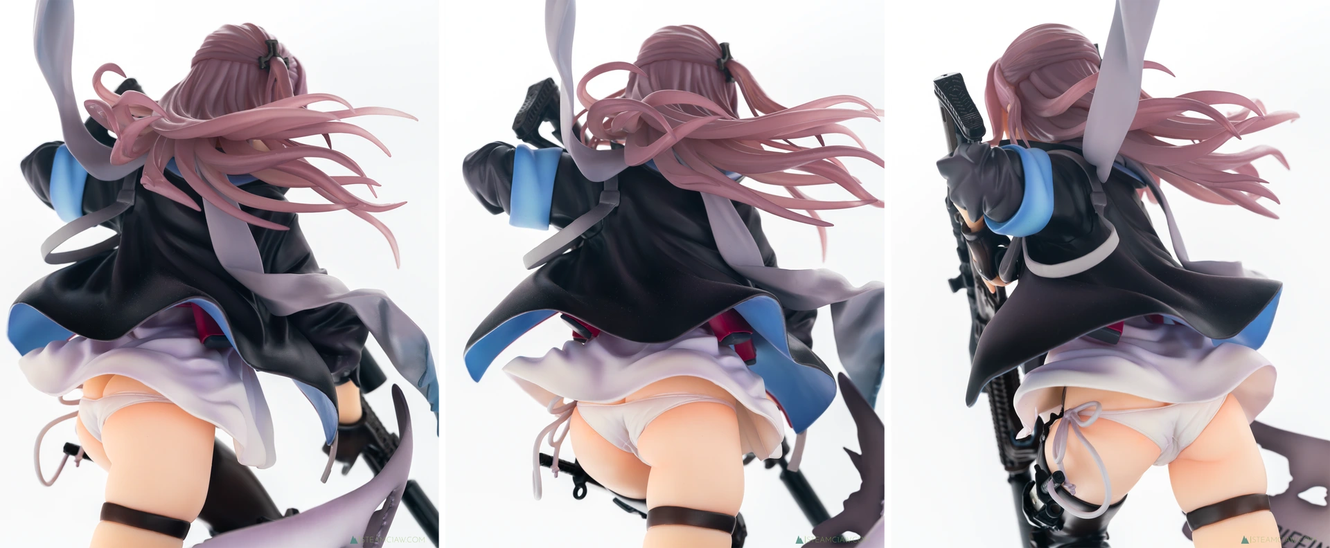 冒頭で書いたように、このフィギュアで一番話題になったのがモロ見えな下着。めちゃくちゃ丈の短いワンピースと前傾姿勢とが相まって、もはや「ローアングルからだと簡単にみえる」とかではなく「よほど工夫しないと隠せない」レベルで下着が丸見えです😅