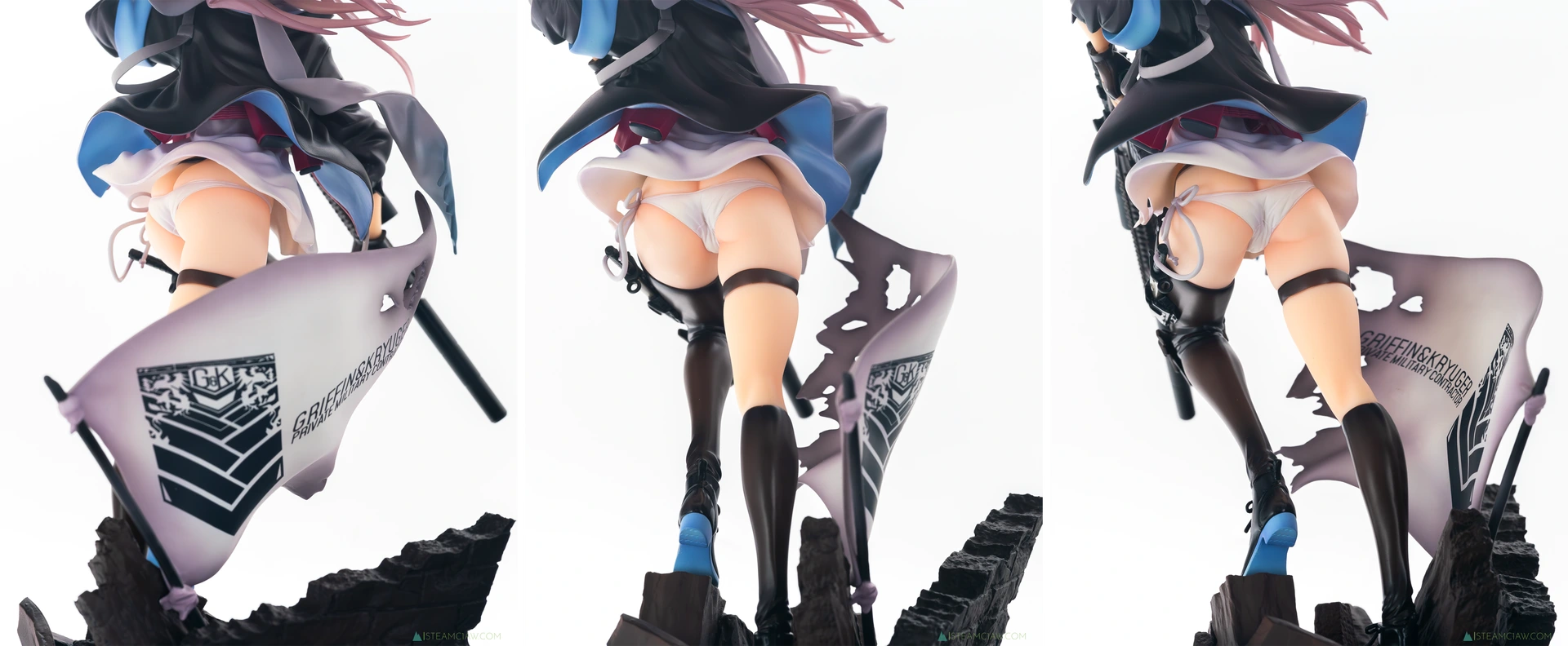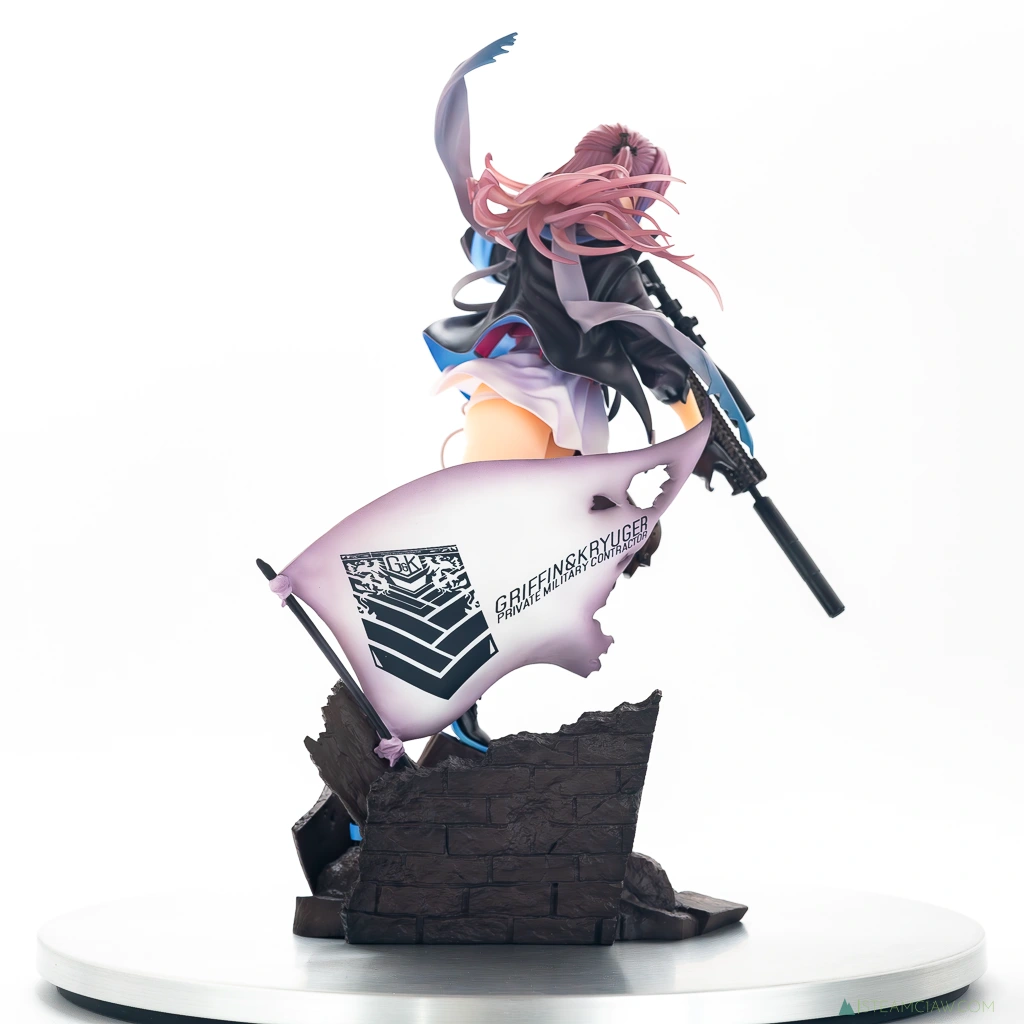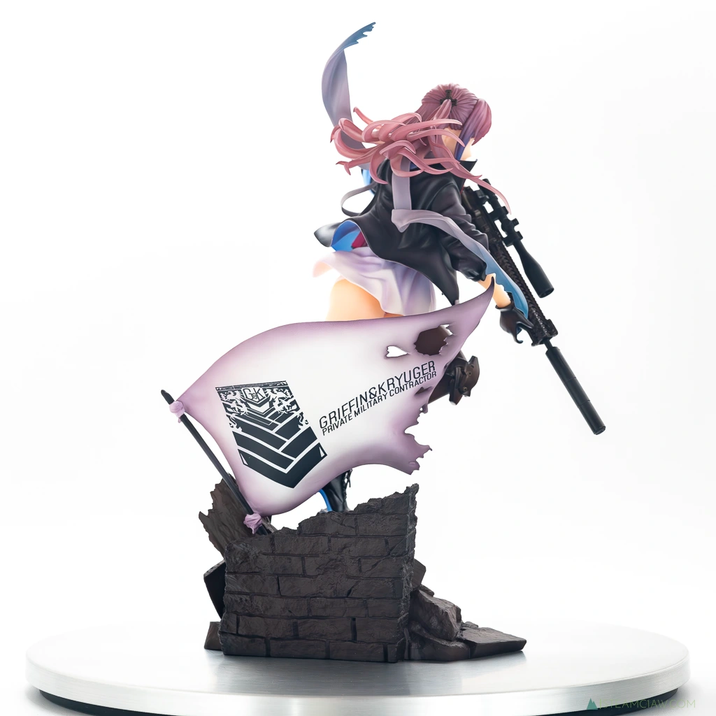 台座に固定する旗がアクセサリーとして付属。ゲーム内に登場する民間軍事会社である「グリフィン&クルーガー」のロゴと社名があしらわれていますが、クルーガーって一般的にはKRYUGERではなくKRUGERあるいはKRUEGERって綴りになるんじゃないですかね🤔