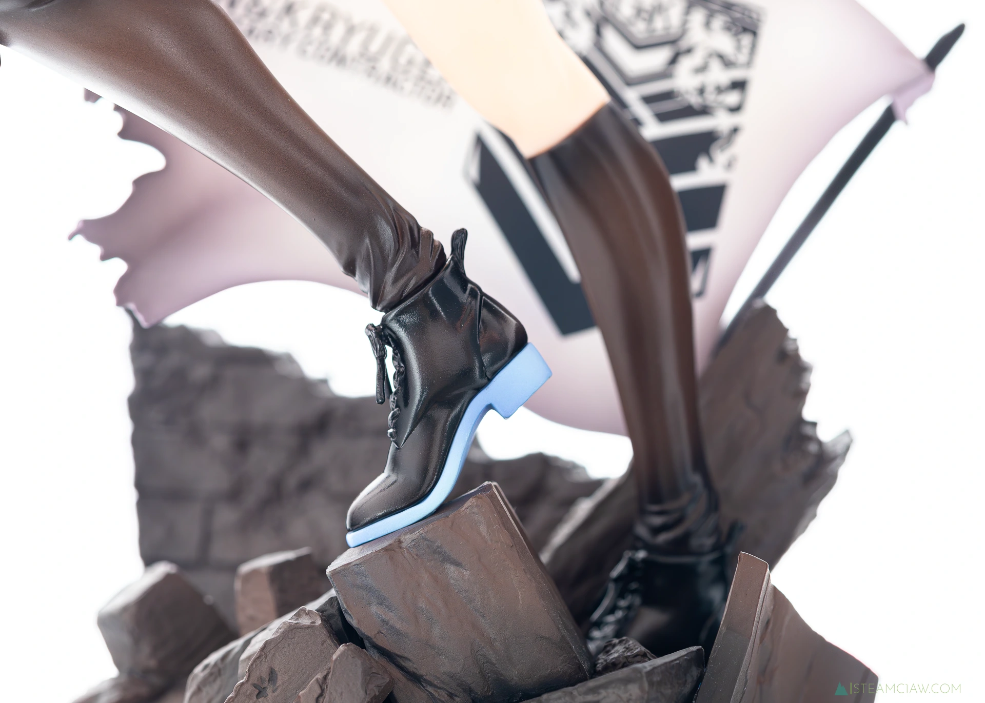 左腿には下着の項目でも触れたコンバットナイフを装着しているほか、左膝にはプロテクターを装備。ナイフはもうちょっと使い古されたような雰囲気の塗装にして欲しかった気もしますが、全体的には無骨な感じがグッド。足元も変に高いヒールの靴を履かせるのではなく、短めの半長靴なのも戦闘服という雰囲気が出ていて良いですね。ソールはパーソナルカラーである青で塗装。