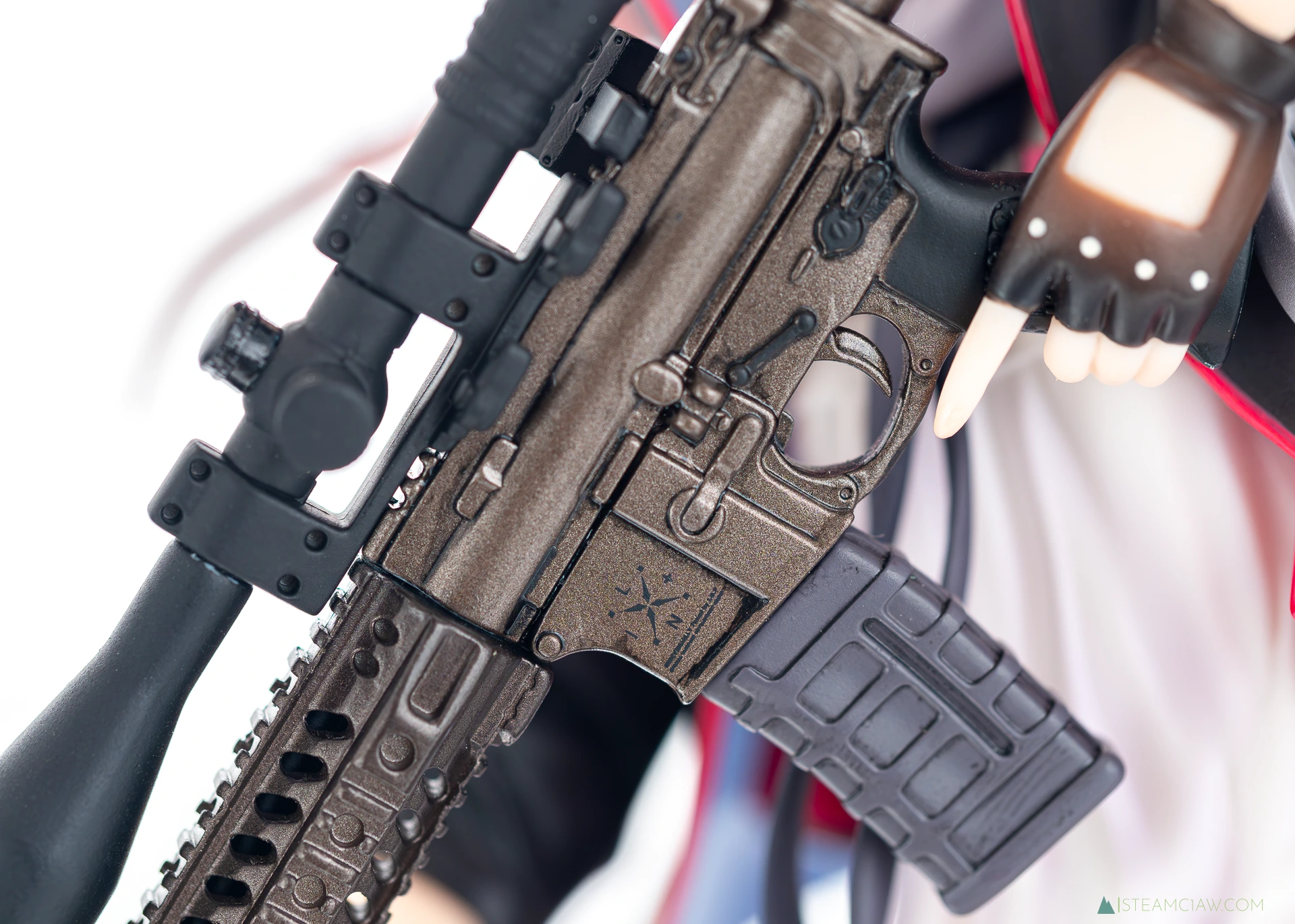 ST AR-15ライフルが付属。特徴的な銃身のほか、トリガーやセレクターなどの細部までしっかり再現。銃器をモチーフとした作品であるドルフロは、銃器の立体化に関しては丁寧なフィギュア商品が多いですが、このST AR-15もその例に漏れず、ずっしりとした重厚感があります。