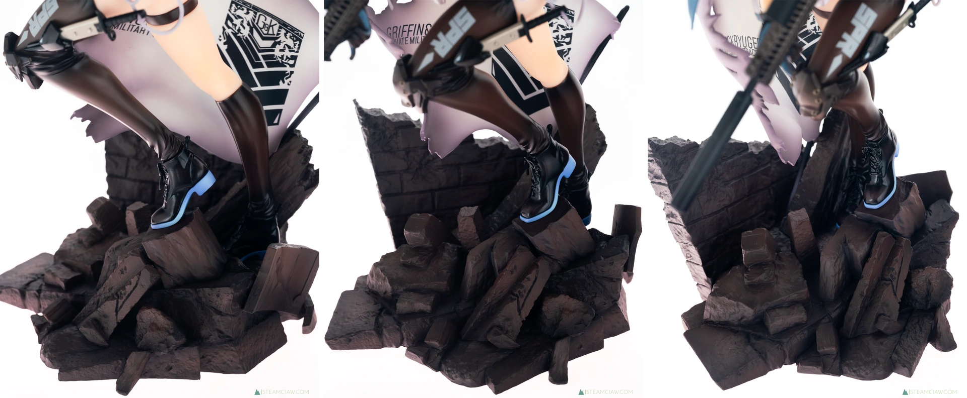 戦場の瓦礫をイメージした台座が付属。質感はそれなりですが、積み重なった瓦礫が丁寧に表現されており、オリジナルのポージングと相まって、臨場感を高めてくれます。