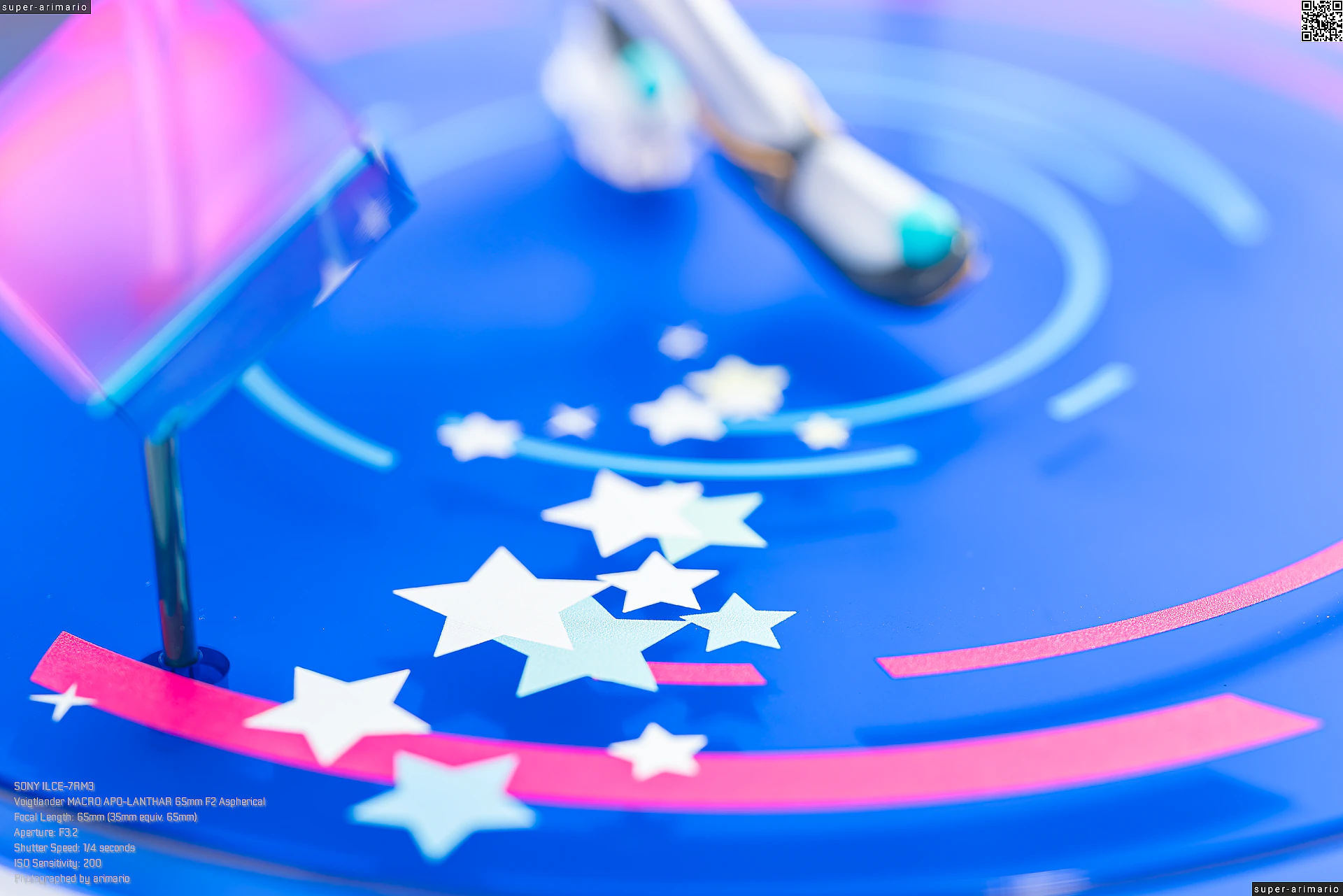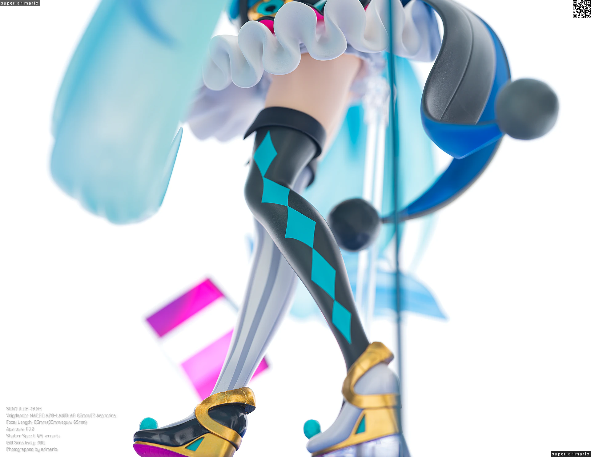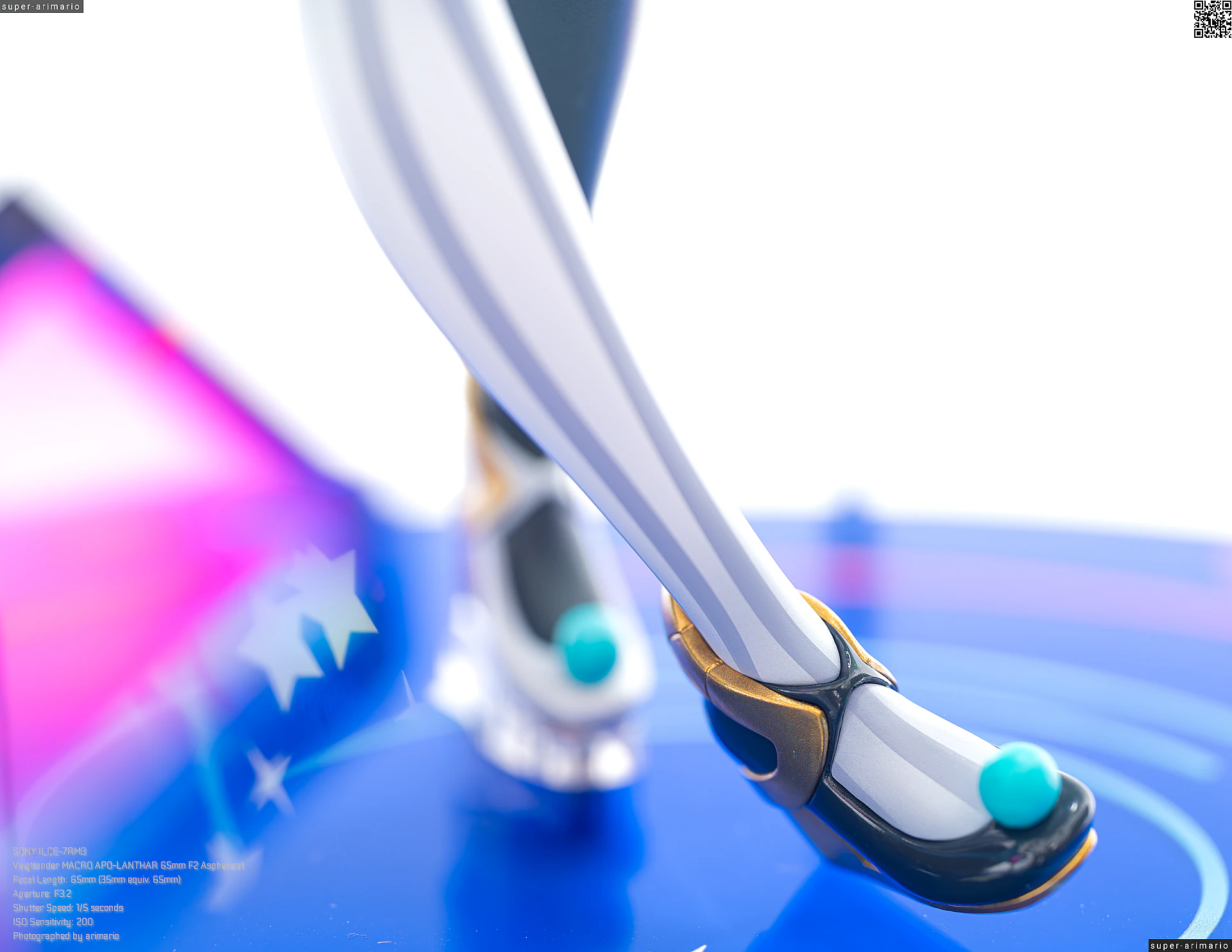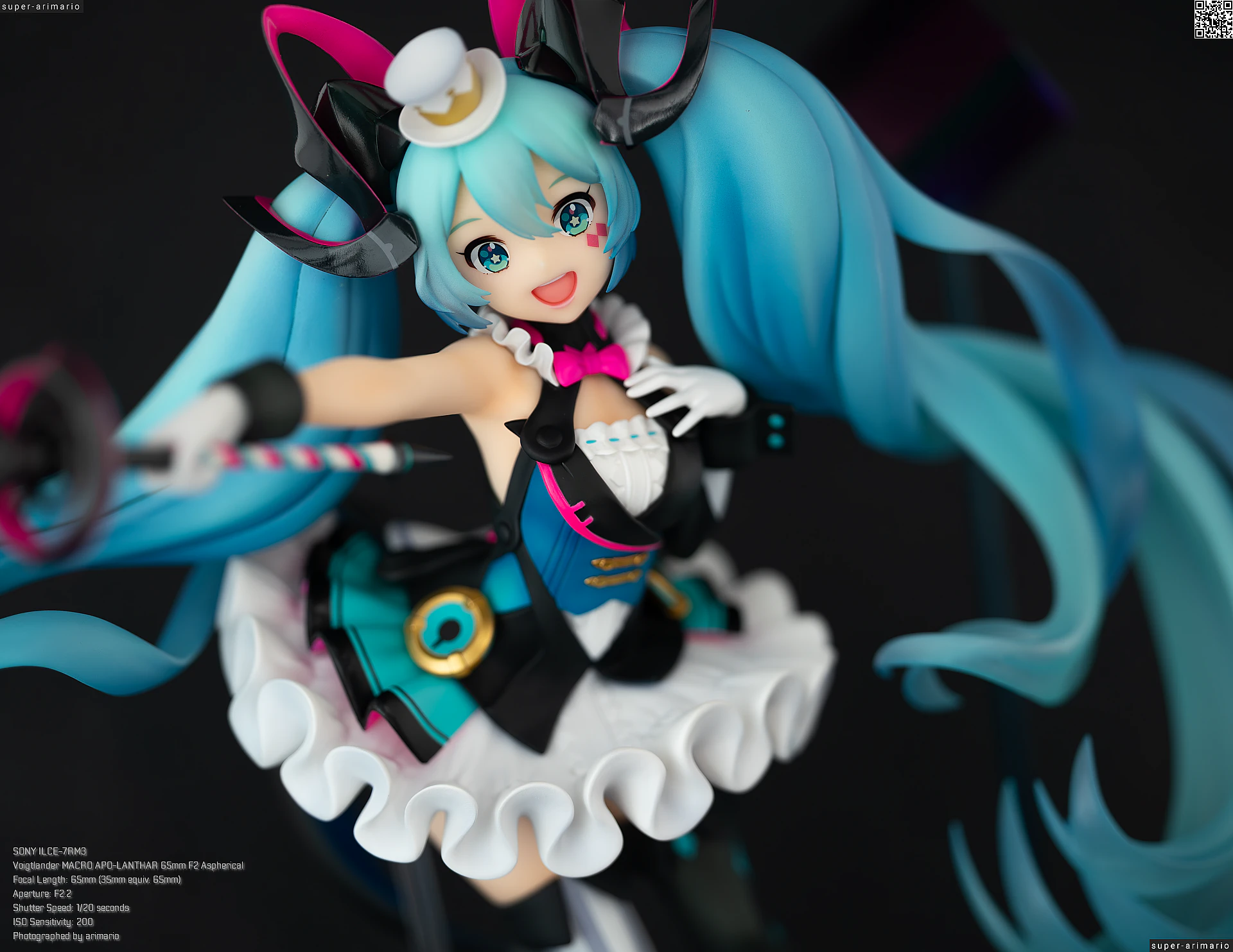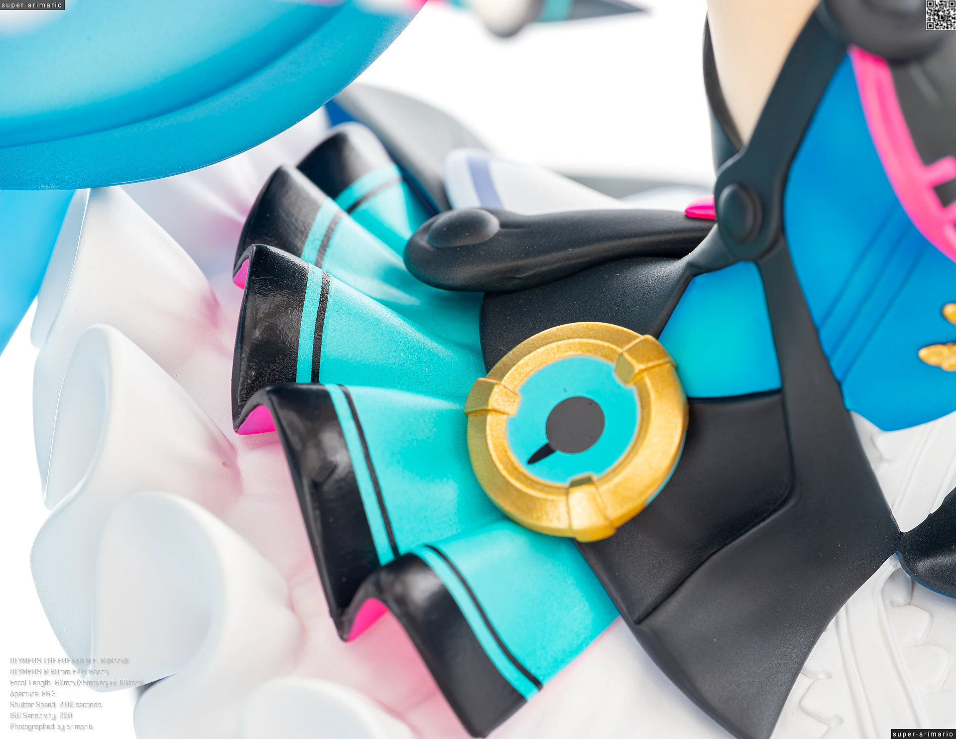 頭部には白とゴールドのマジシャンハットに加えて、ツヤっとしたブラックとネオンピンクの髪飾りが付属。猫耳モチーフなのかな。これは3パーツに分割されており、左右パーツを本体に差し込んだあと、後頭部側パーツを磁石で固定するという面白い構造になっています。ただ、このパーツはイマイチ据わりが良くないのと、塗装に値段なりのチープさを感じますね😓