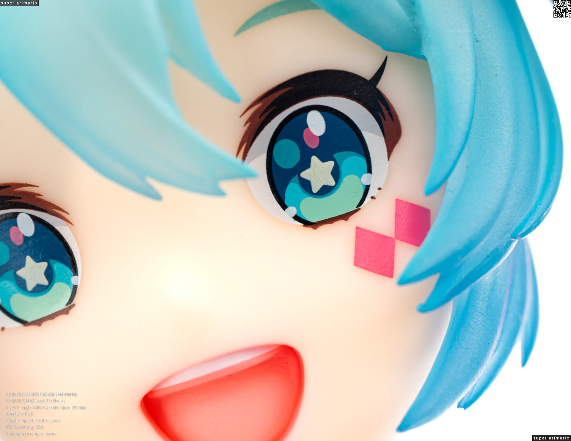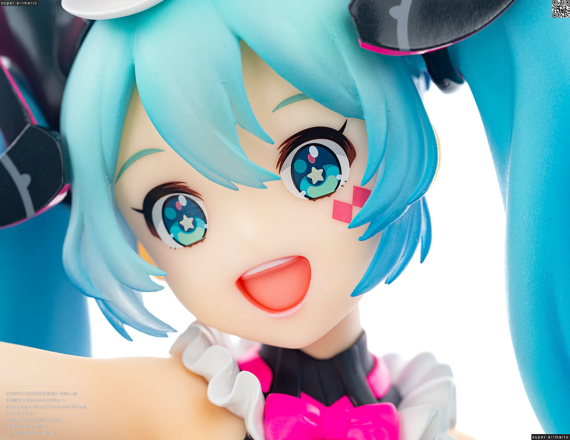 顔まわりは元絵を比較的忠実に再現。細かいところでいうと、元絵では向かって右手にカメラ目線を配っているようにみえるのに対して、こちらではまっすぐ前を見据えている点が違いでしょうか。また、瞳もピンクや星形のキャッチライトが追加で入っており、アイドルっぽさを演出しています。口を大きく開いた笑顔が可愛らしいですね。
