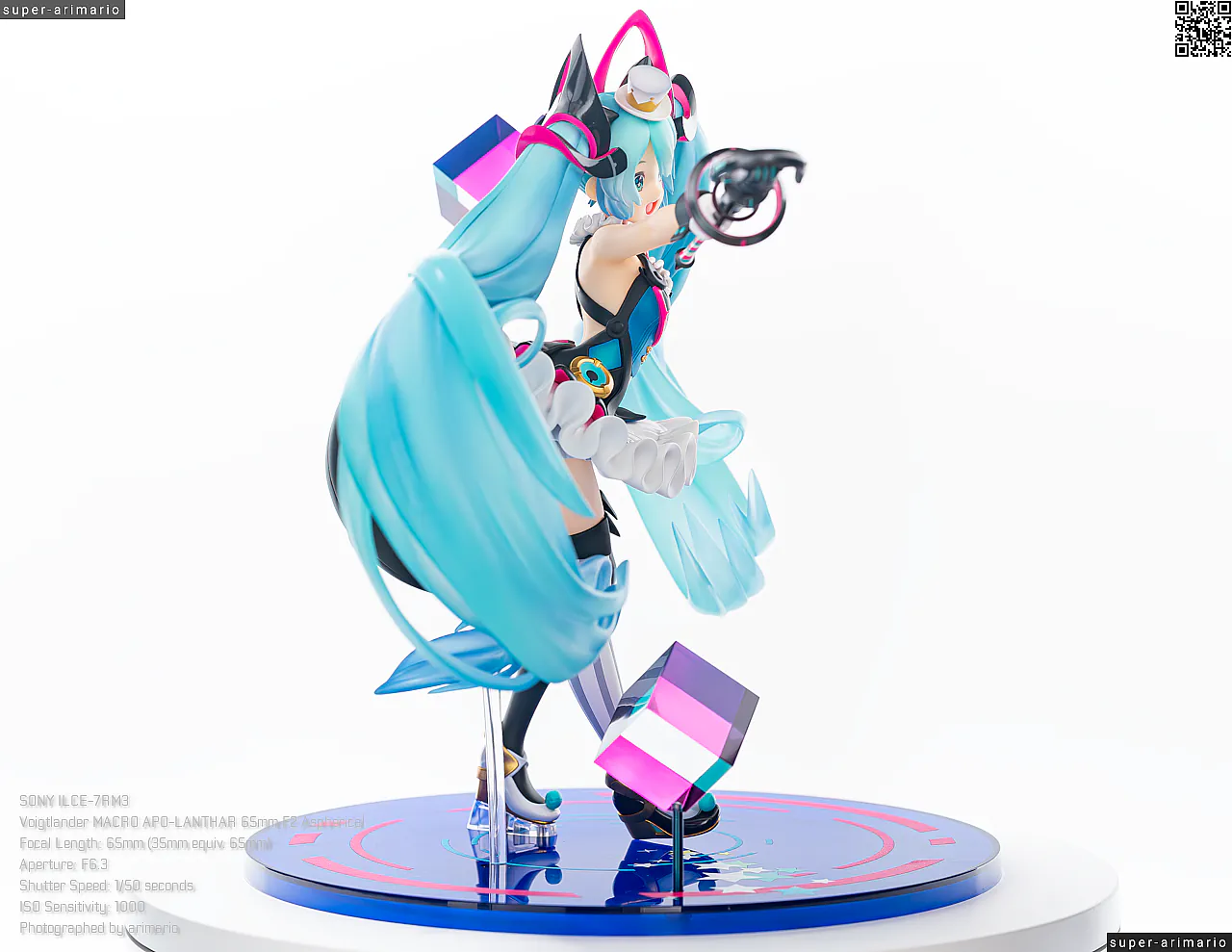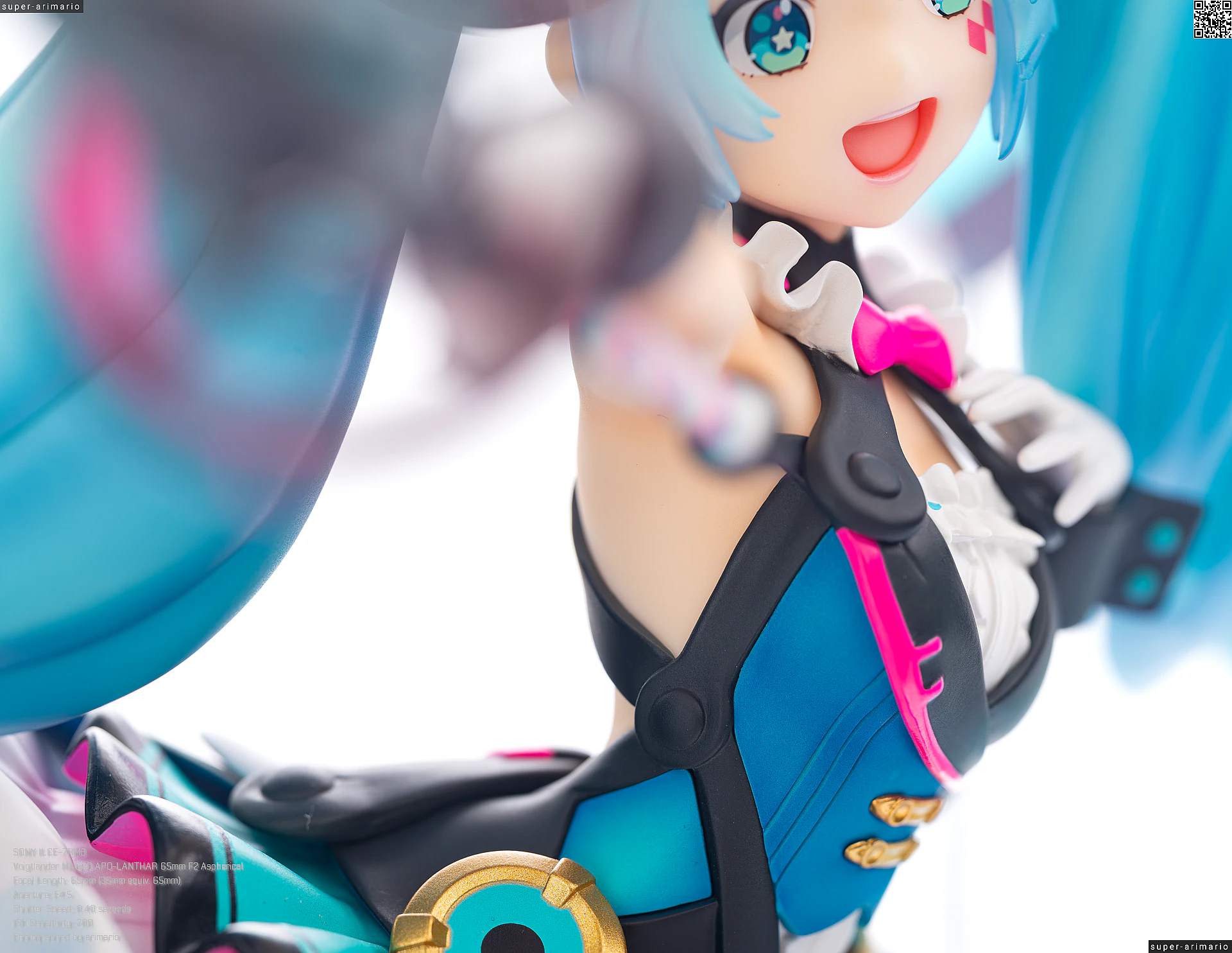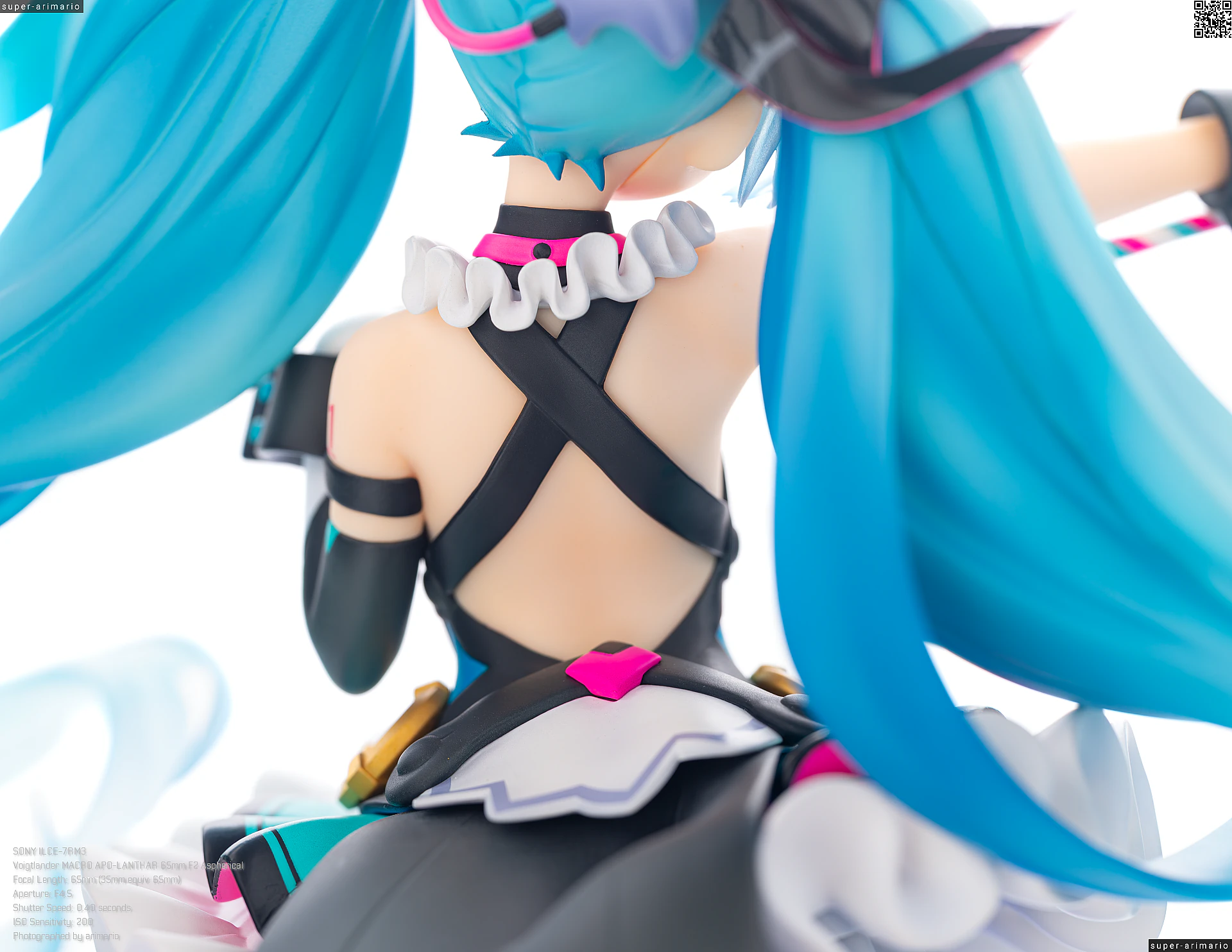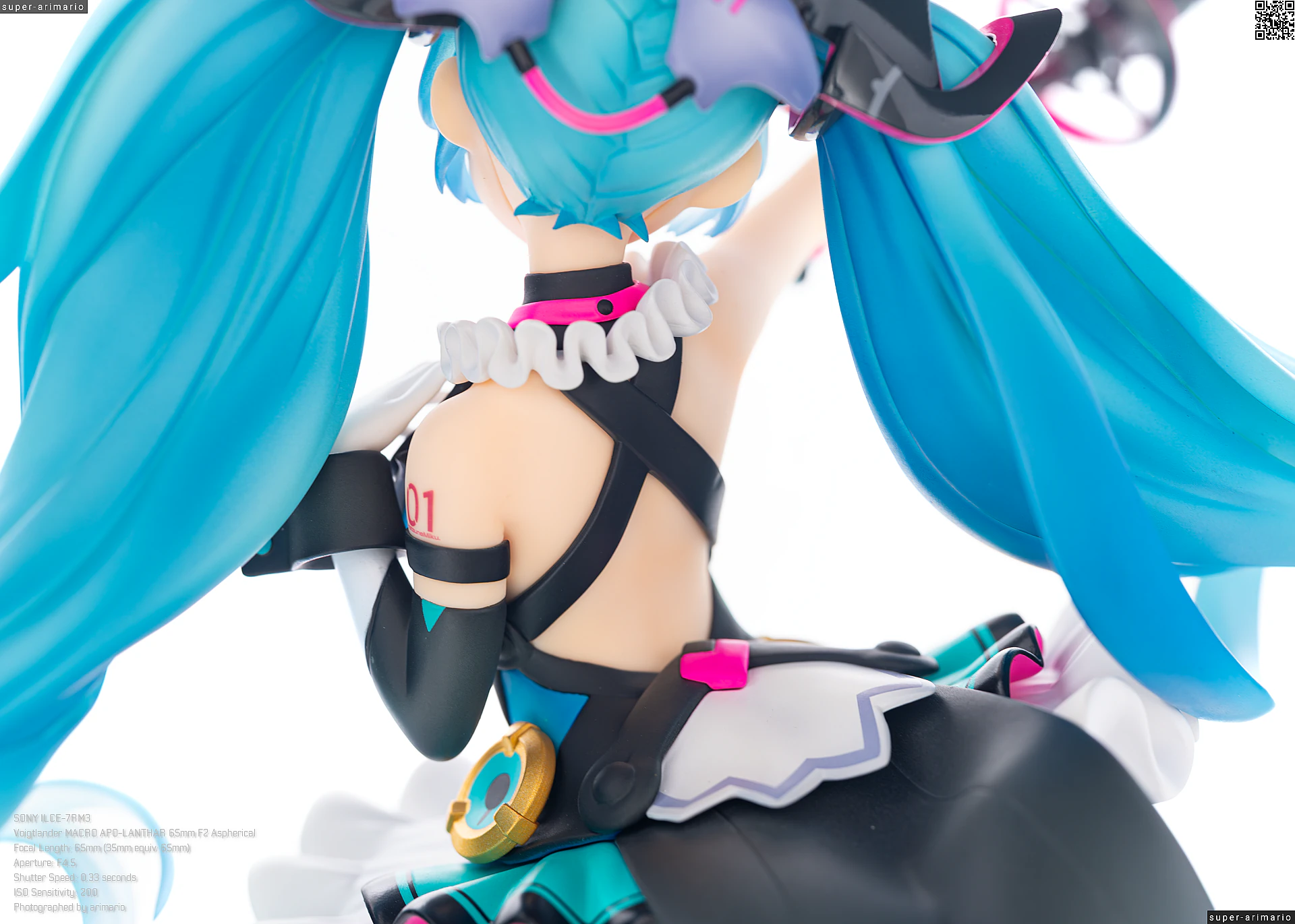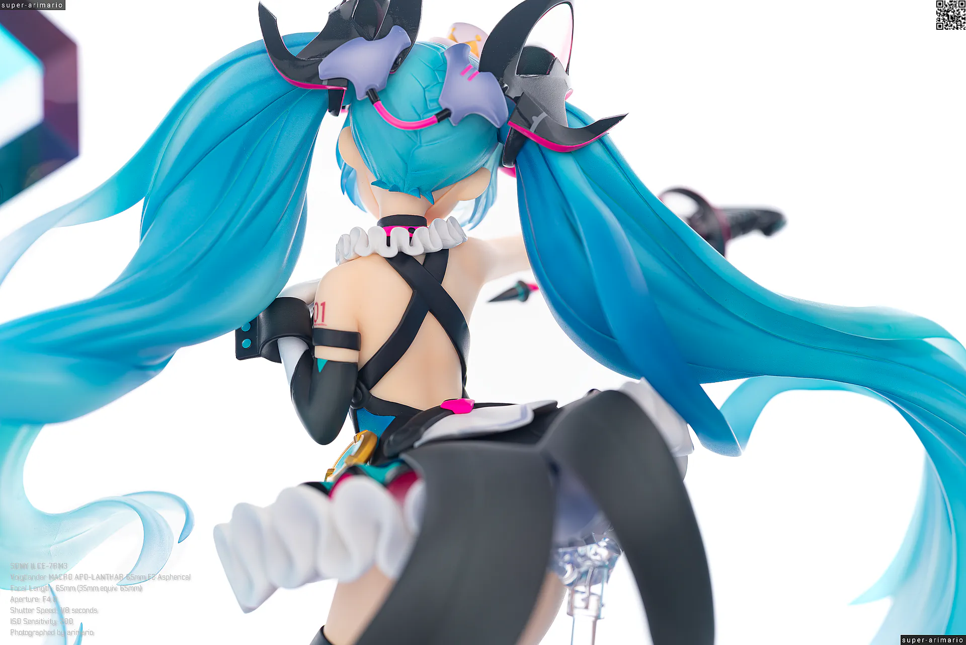 ボリュームある髪の毛の動きやポージングも相まって、ステージ上で元気いっぱいパフォーマンスを繰り広げるアイドルというイメージ。初音ミクのイメージカラーを意識した差し色は、元絵と比べるとビビッドなネオンカラーで再現。近未来的な衣装デザインをうまく表現できているのではないでしょうか。