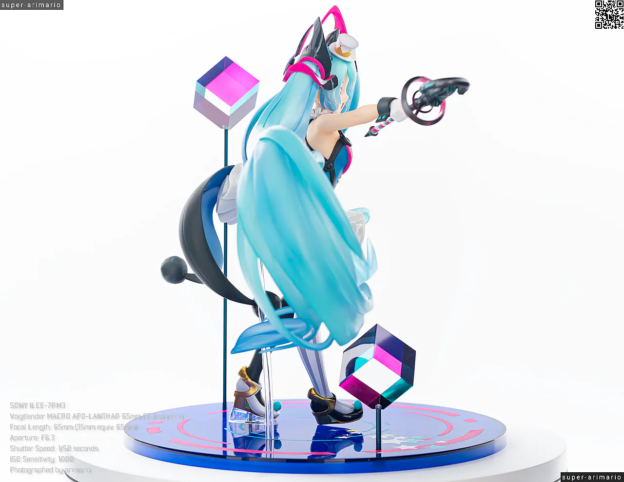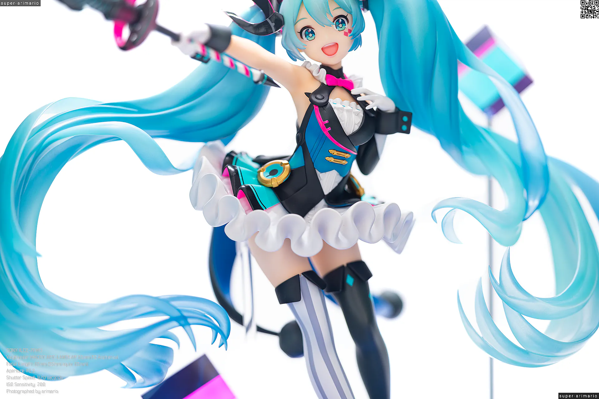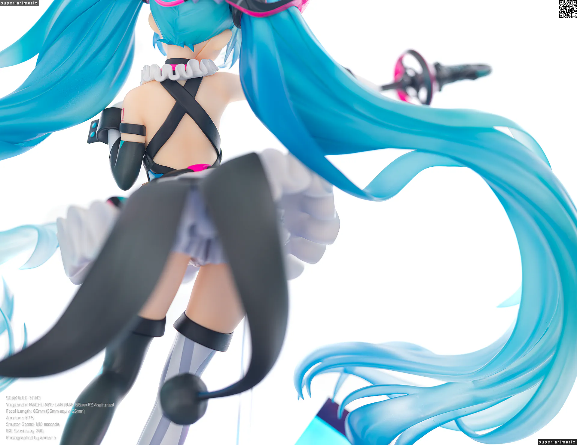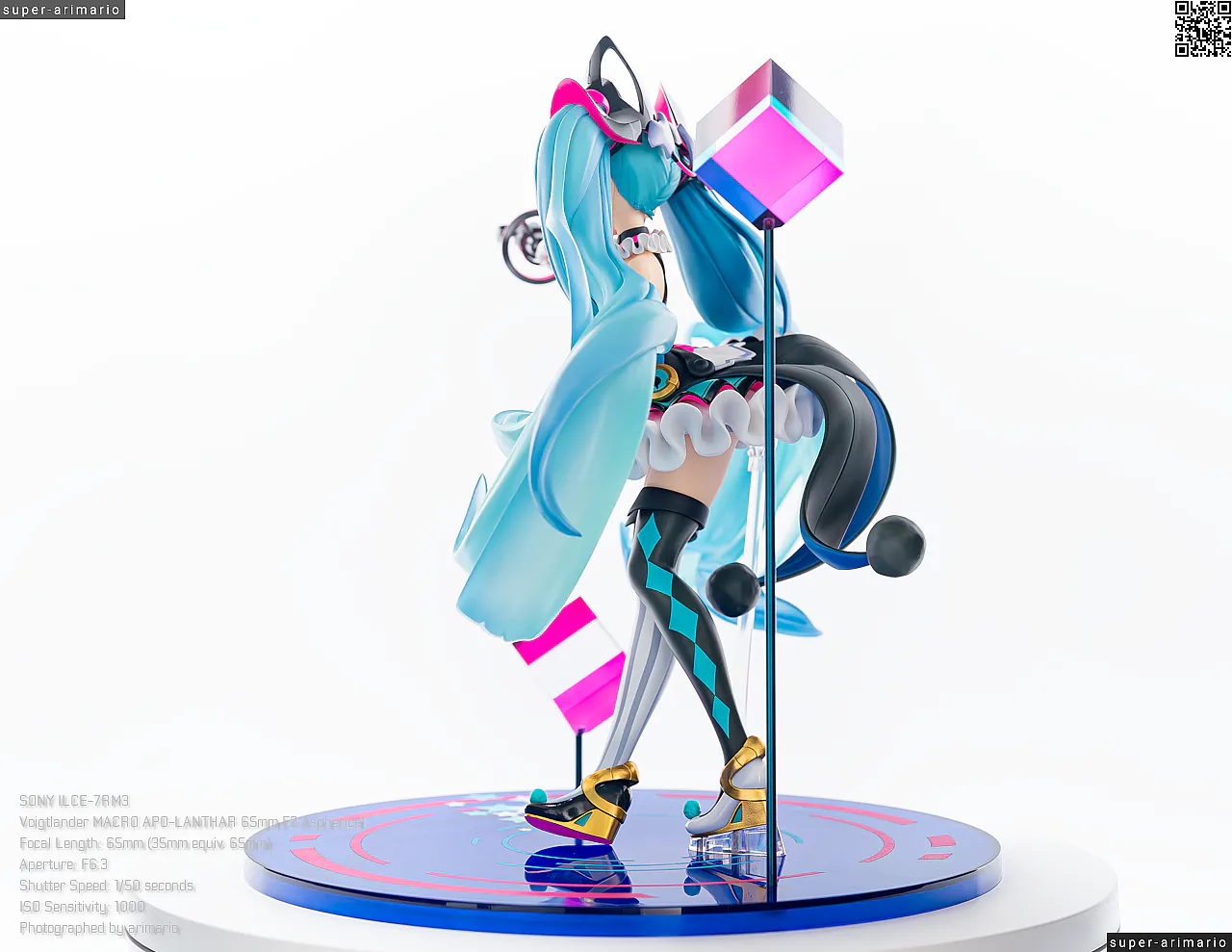 ボリュームある髪の毛の動きやポージングも相まって、ステージ上で元気いっぱいパフォーマンスを繰り広げるアイドルというイメージ。初音ミクのイメージカラーを意識した差し色は、元絵と比べるとビビッドなネオンカラーで再現。近未来的な衣装デザインをうまく表現できているのではないでしょうか。