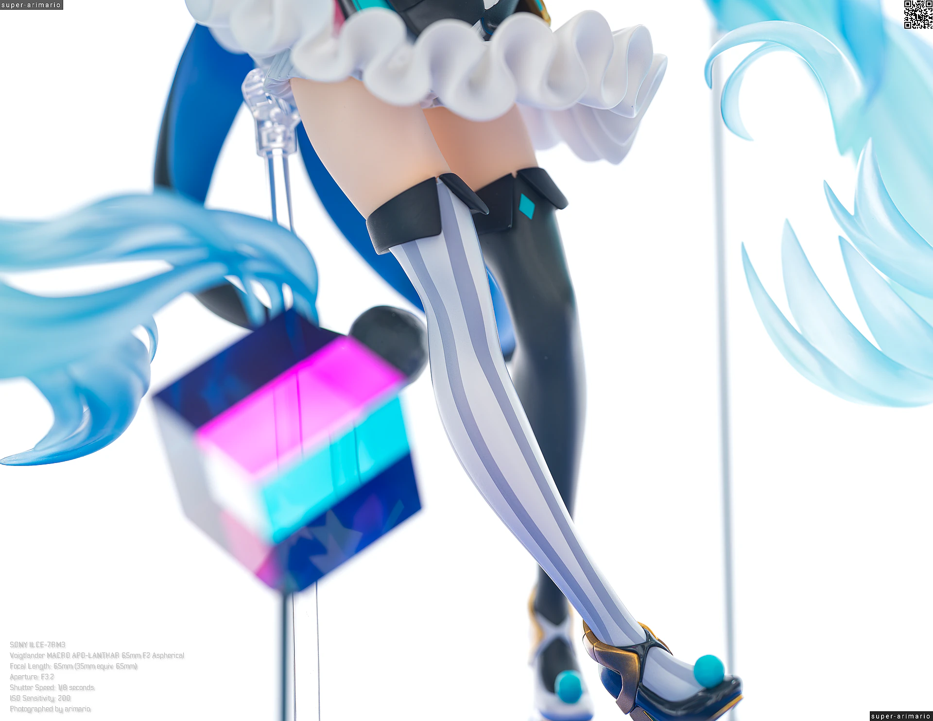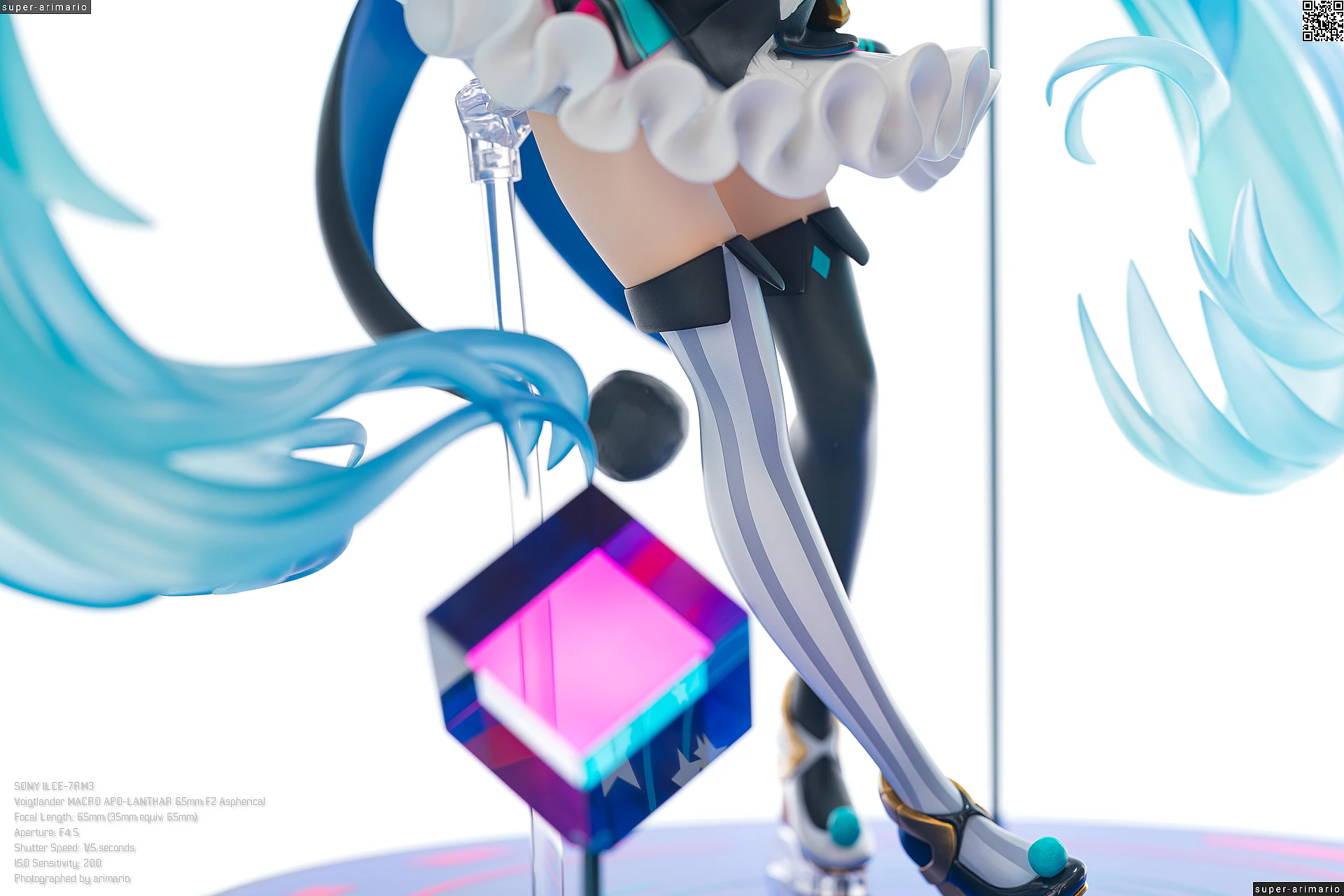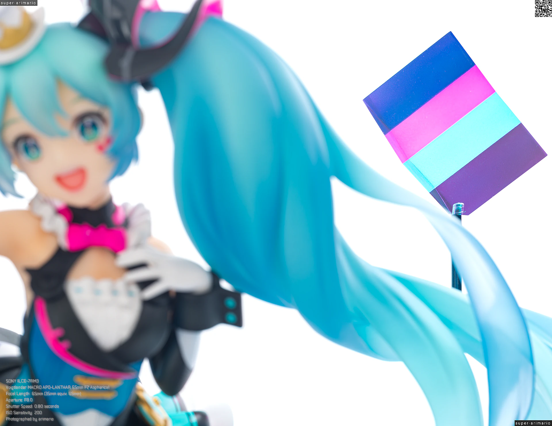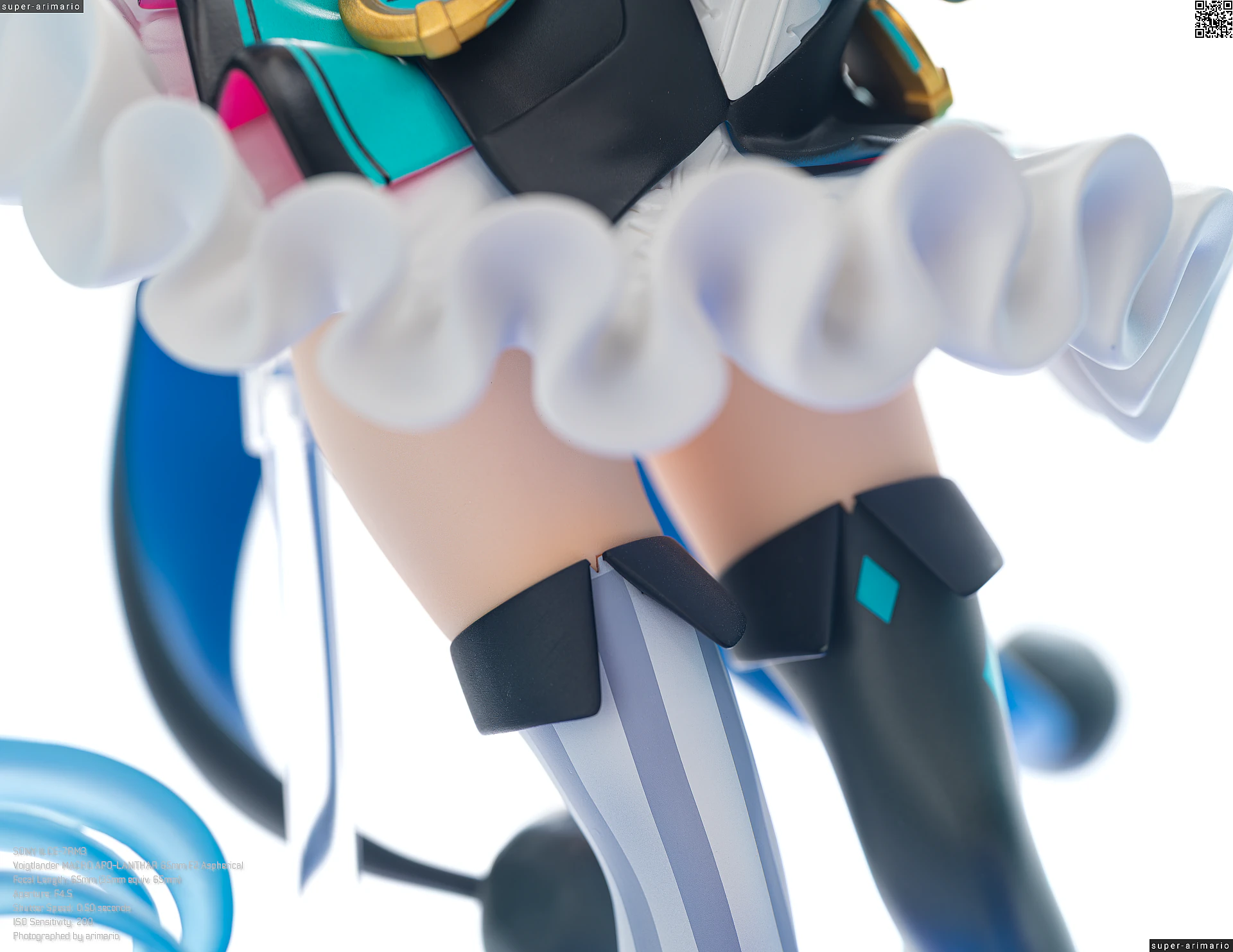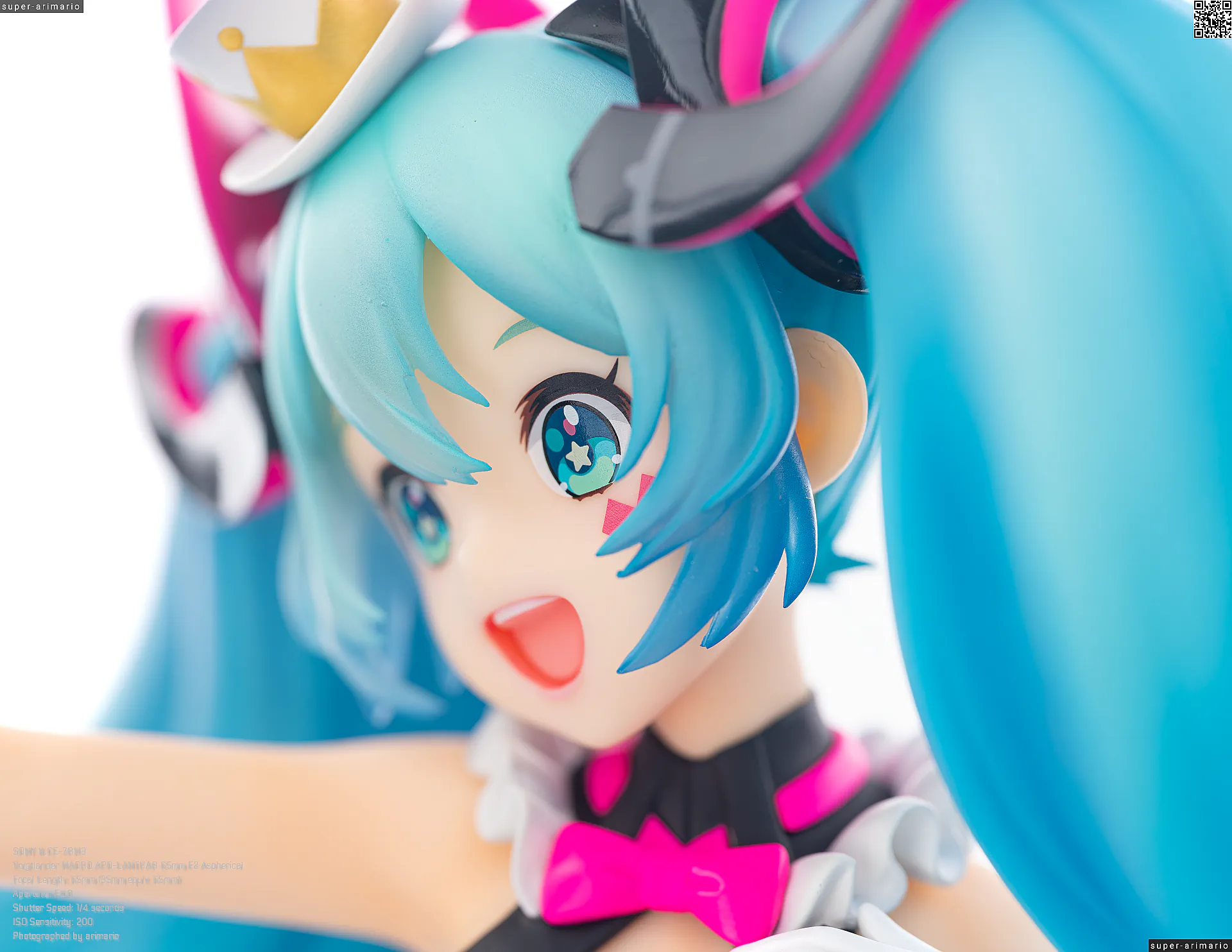 ボリュームある髪の毛の動きやポージングも相まって、ステージ上で元気いっぱいパフォーマンスを繰り広げるアイドルというイメージ。初音ミクのイメージカラーを意識した差し色は、元絵と比べるとビビッドなネオンカラーで再現。近未来的な衣装デザインをうまく表現できているのではないでしょうか。
