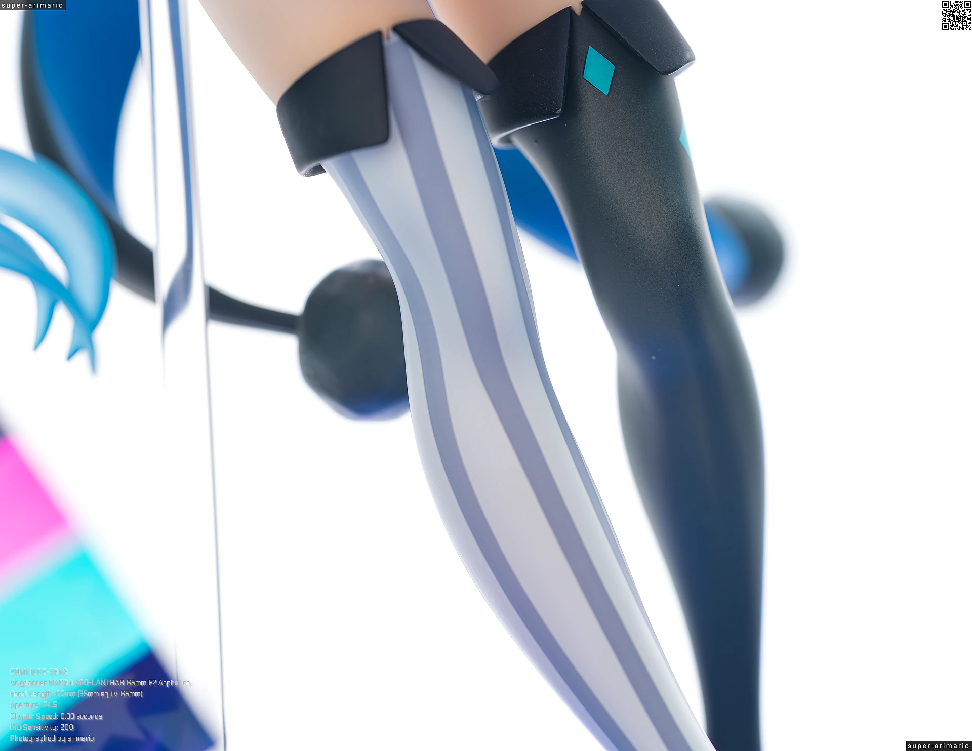 絶対領域の肌部分ですが、質感に拘った形跡はなく、至って健全なビジュアルとなっています。全年齢キャラクターであることと、スカートに隠れて目立たないデザインになっていることが理由かな。そんなに高価格の商品じゃないですしね。