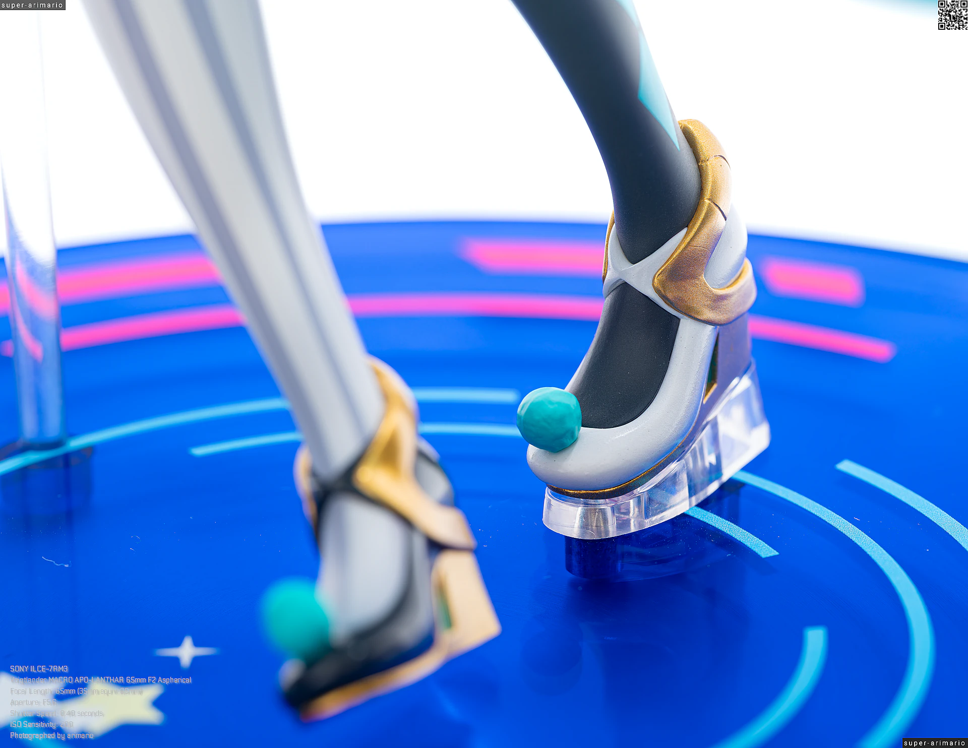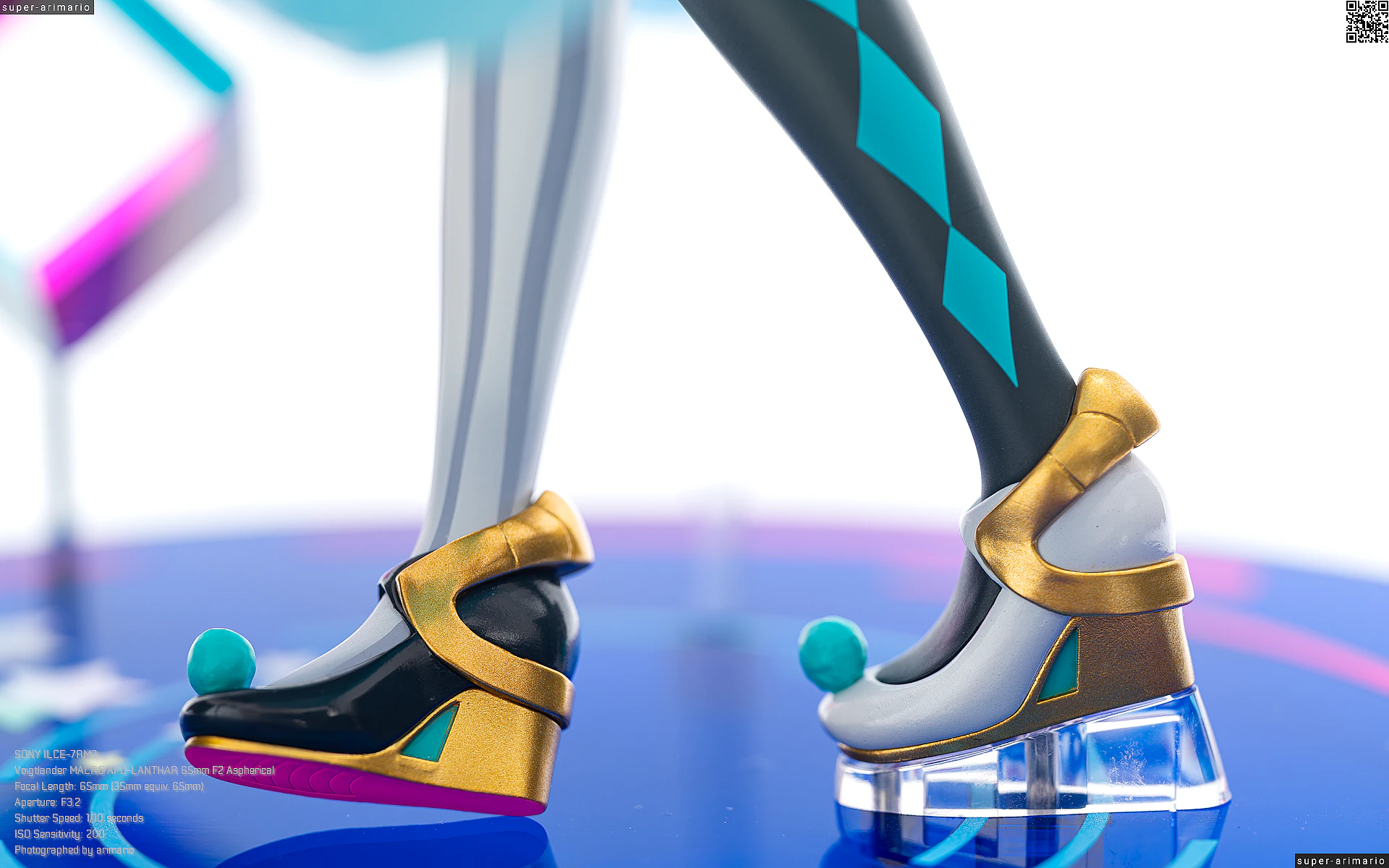 足元のパンプスは、つま先にテーマカラーであるターコイズブルーの球体状の飾りがあるほか、ゴールドの装飾が施されています。靴底はそのまま黒やゴールドで塗ってしまっても問題ないはずの箇所ですが、ピンク塗装になっているなど地味なポイントも拘ってつくられていますね。
