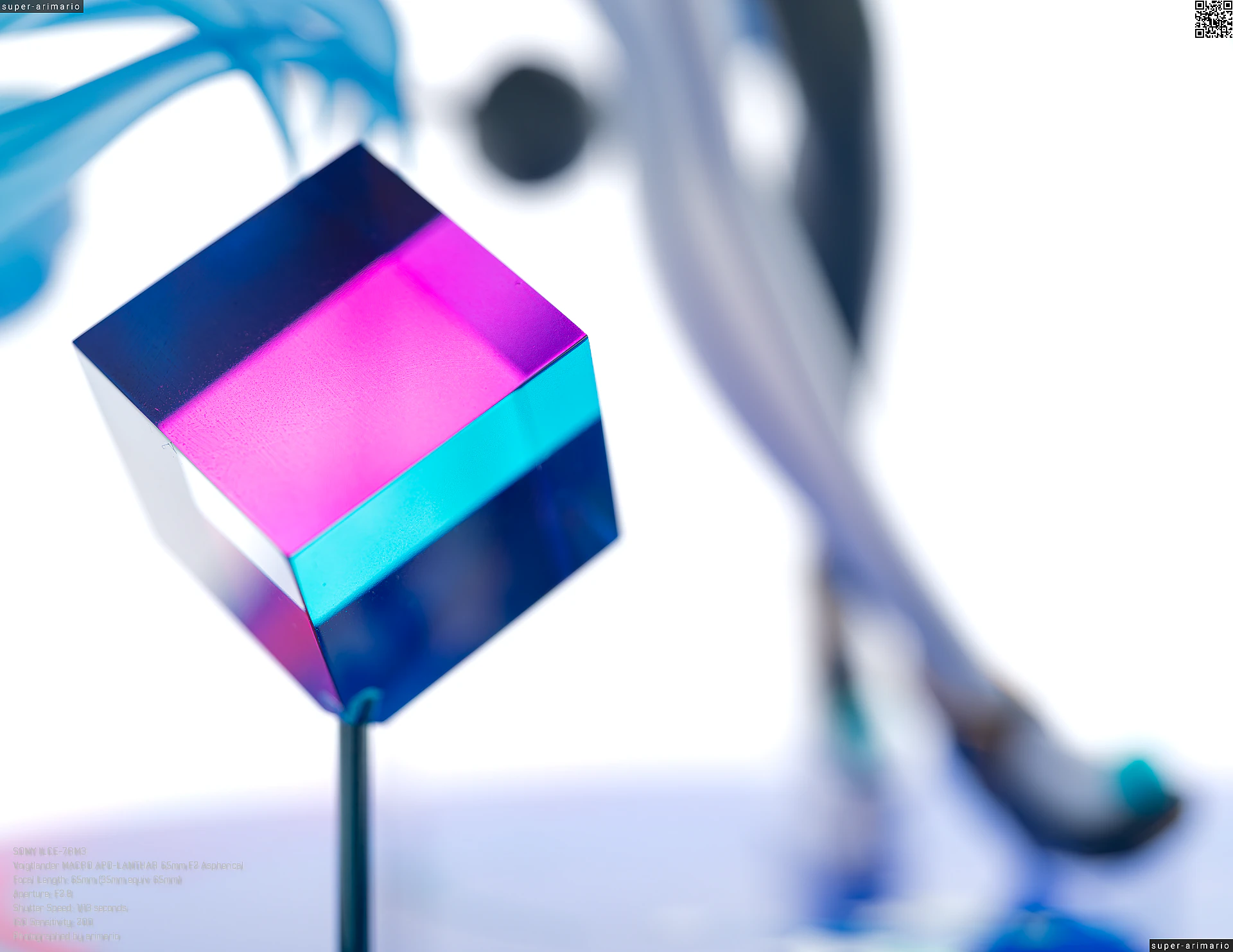 台座とは別ですが、プリズムのような立方体のパーツが2つ付属。これも元絵の背景に描かれているものですね。見る角度によって色合いが変わる仕組みになっています。