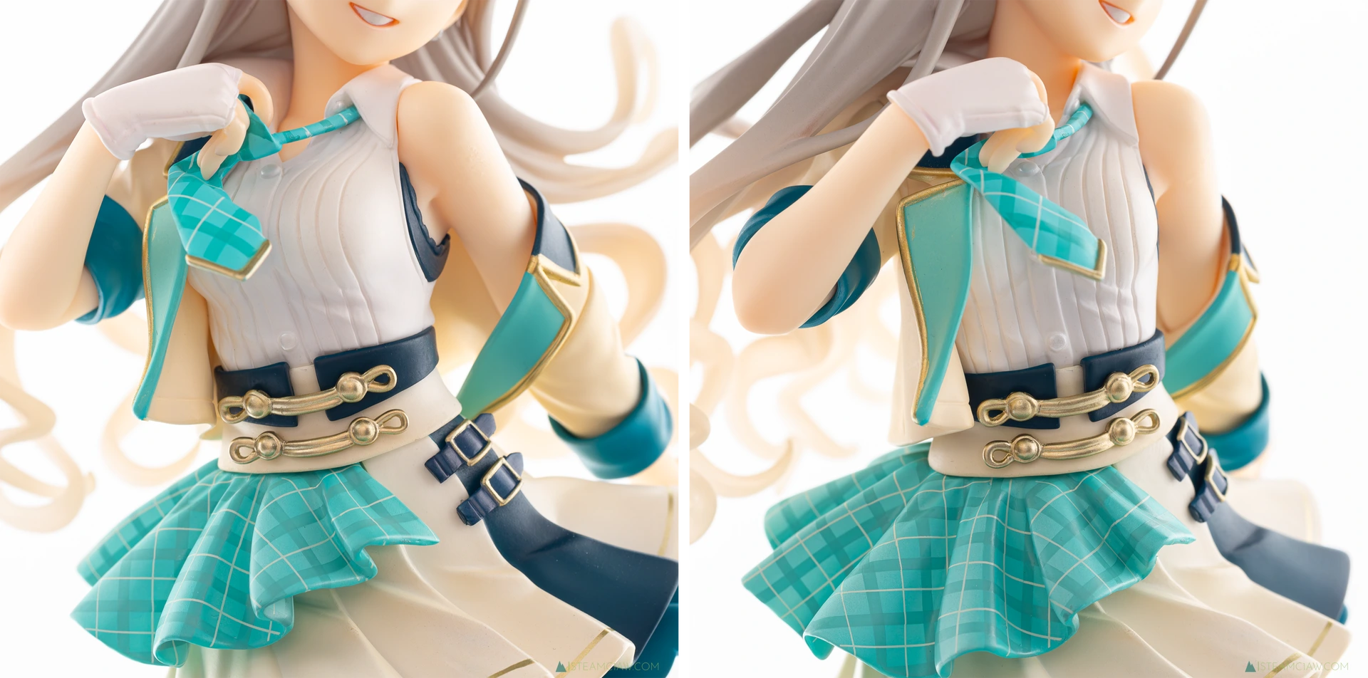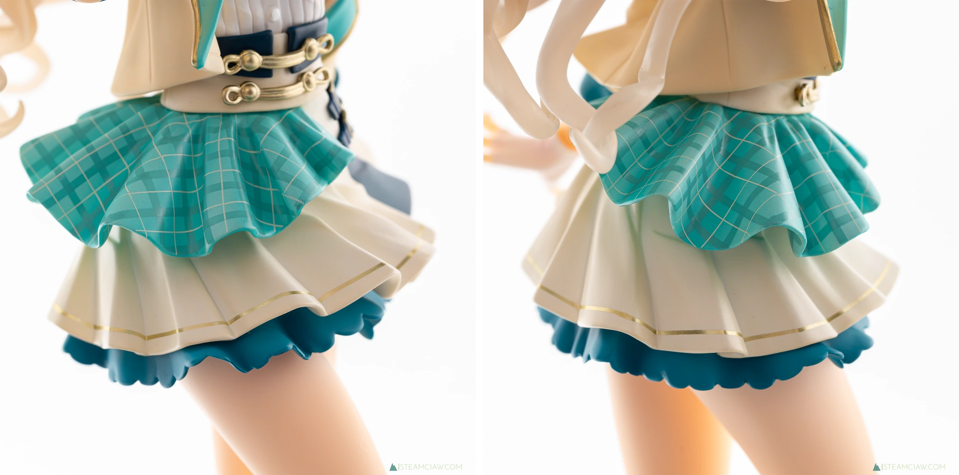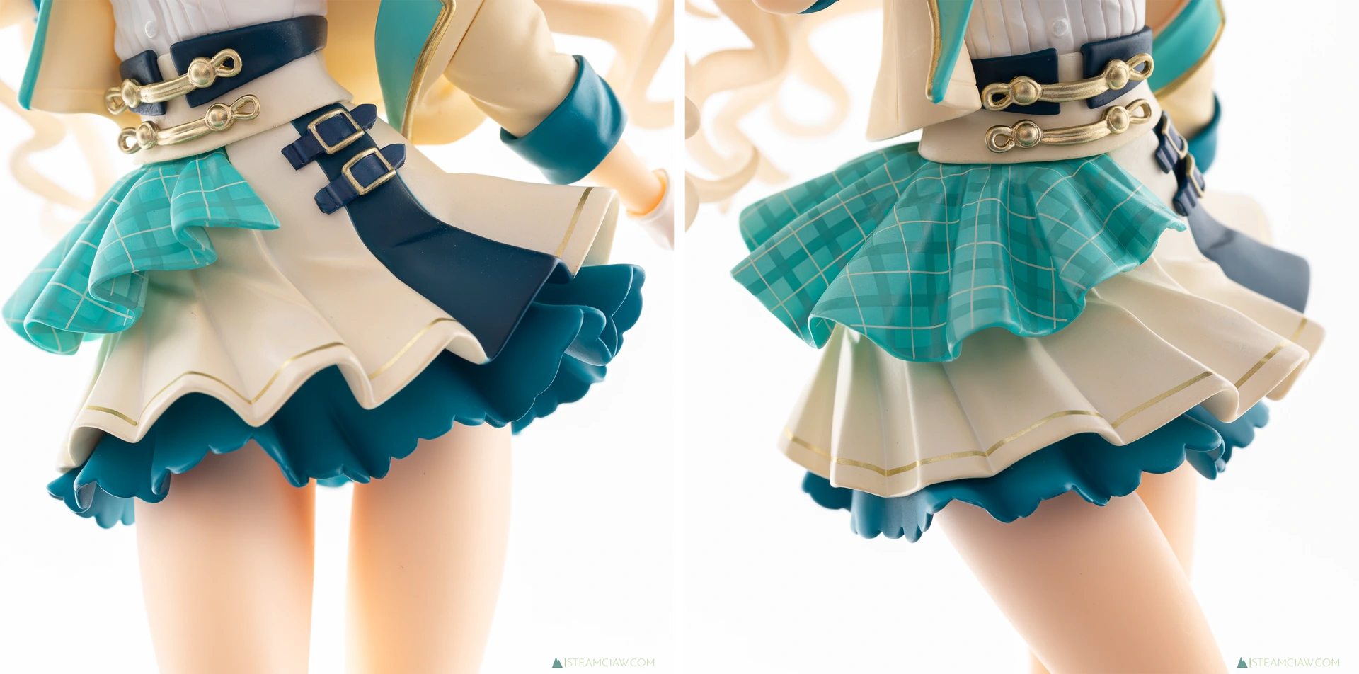 ロングヘアに隠れて撮影できないのですが、ジャケットの背中側もしっかりシワが入っています。バストは14歳という設定もあってか、アニメ・ゲームキャラクターとしては控えめ。自然なサイズかつ、ブラウスがはちきれそうな表現もなく大変健全なのは嬉しい😇