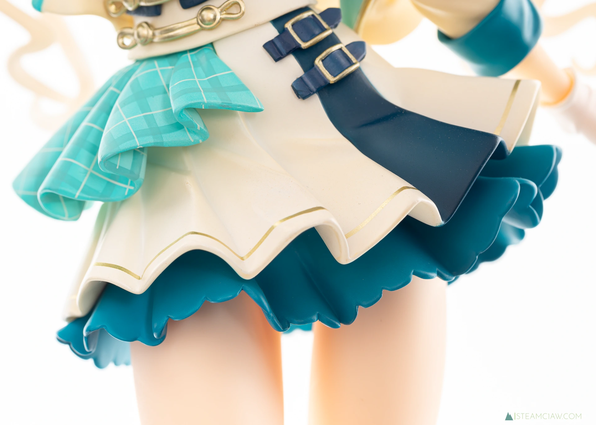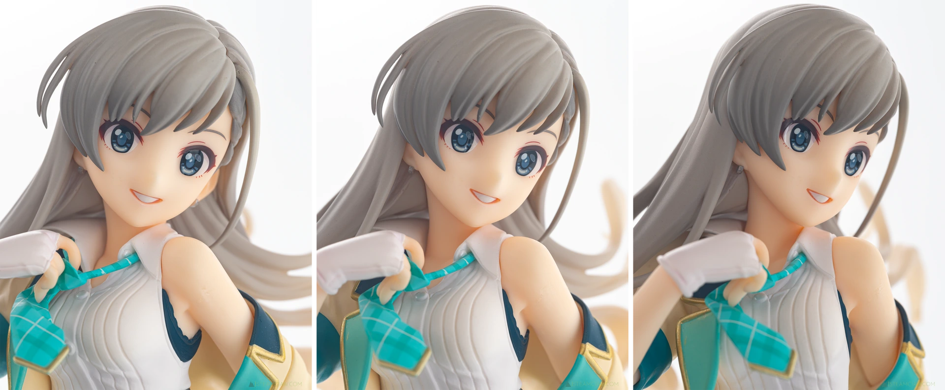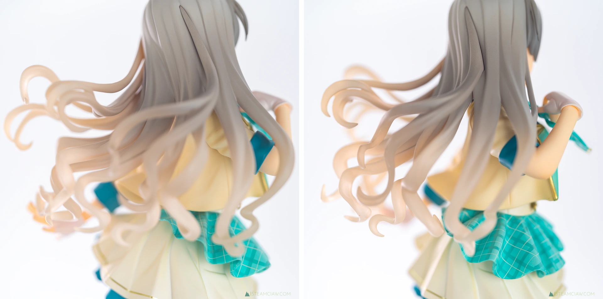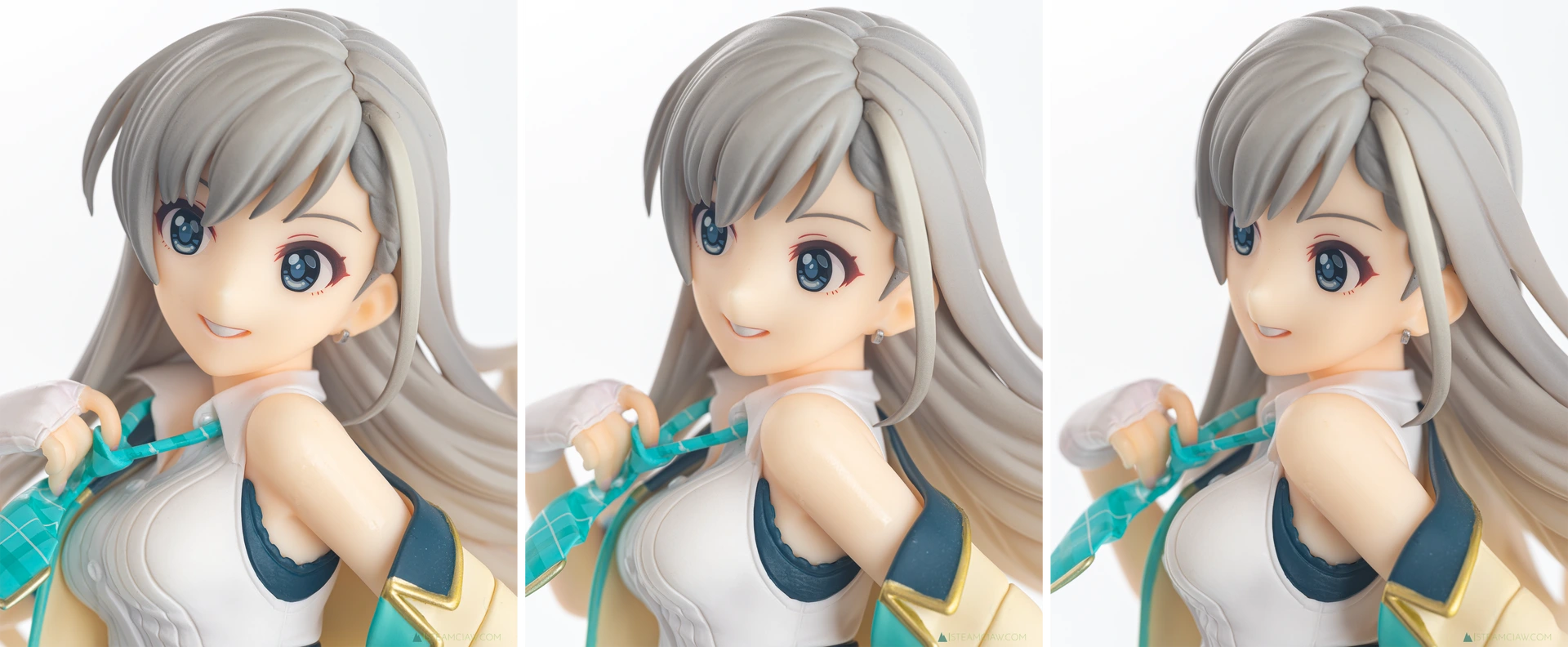 元ネタとなったキャラクターカードそのまま、シンプルな立ちポーズでの立体化。このカードはノーマルレアリティなので3Dモデルは存在しない (デレステは高レアのキャラクターカードを引くと、カードの衣装を再現した3Dモデルがついてくるという仕様になっています) と思うのですが、まるで3Dモデルから起こしてきたかのような再現度は見事です。