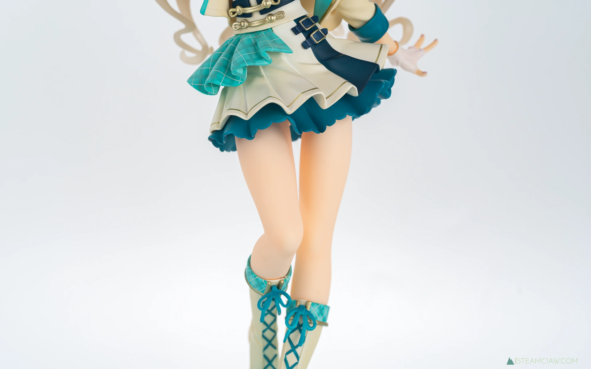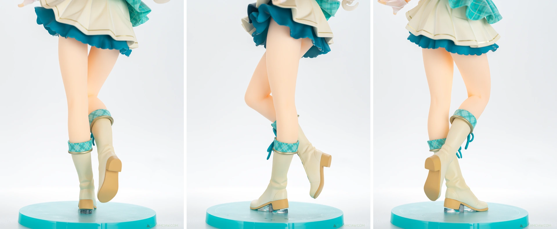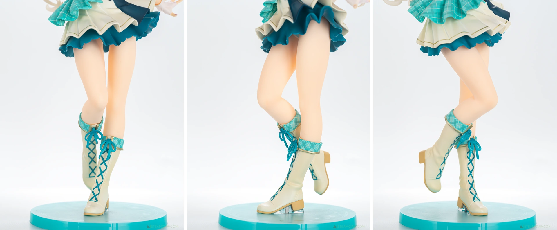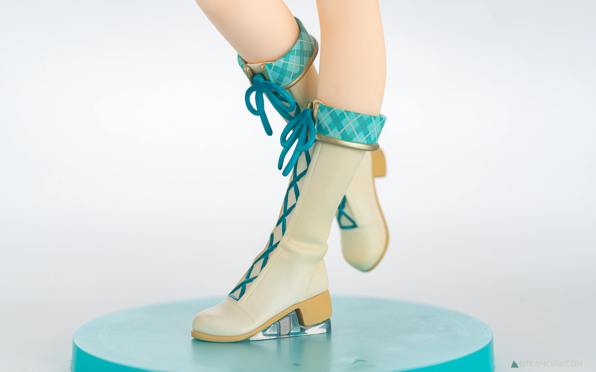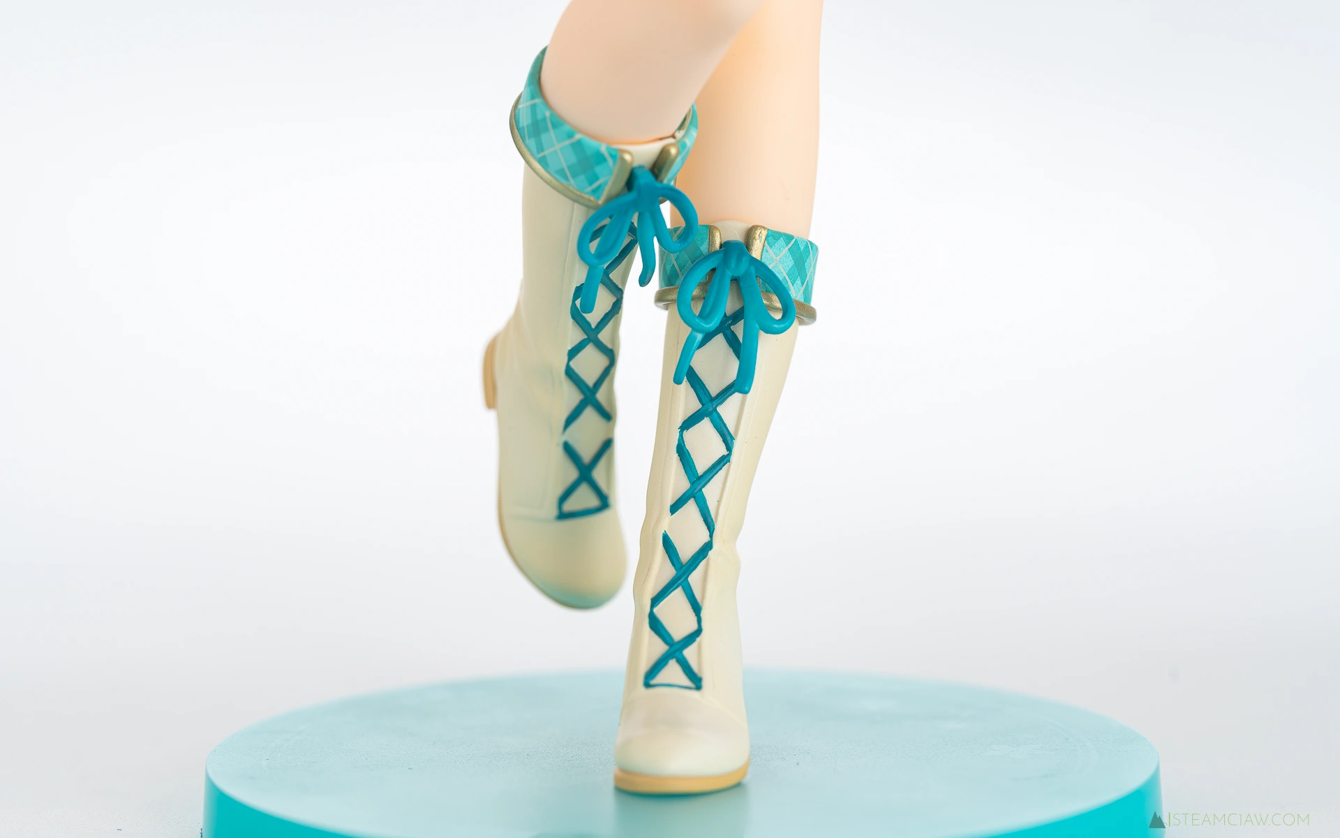 足元はレースアップブーツ。足首まわりの細かい表現、上半身と同じ孔雀色のチェック柄模様、同系色のレースなど、細かい装飾が施されています。すっきりした太ももと上手くバランスがとられていますね。レースアップ部分は手塗り感もありますが、全体的には綺麗な仕上げ。ソールはゴムのイメージかな、ベージュ色で塗装。