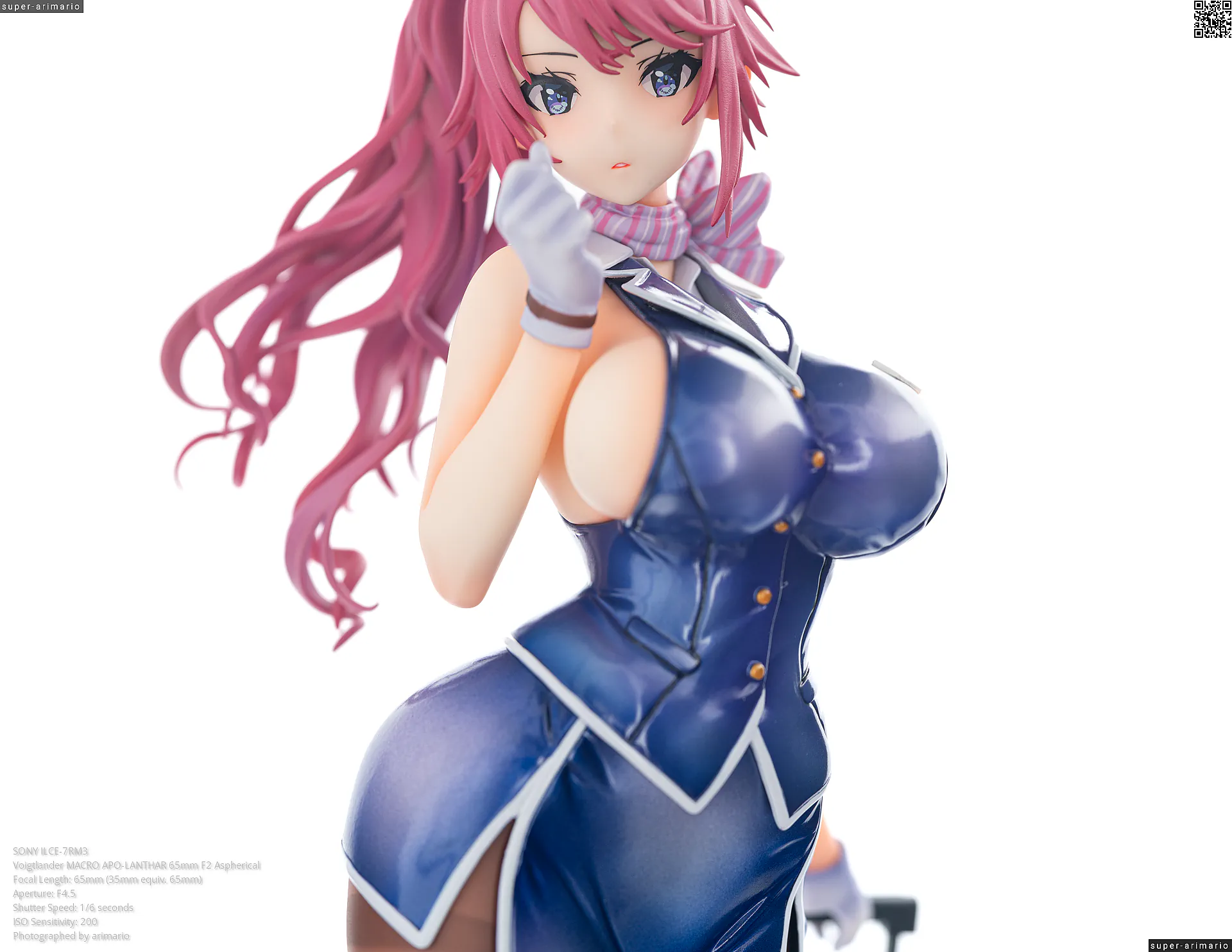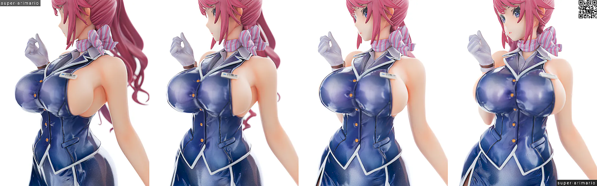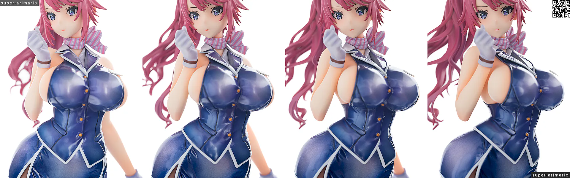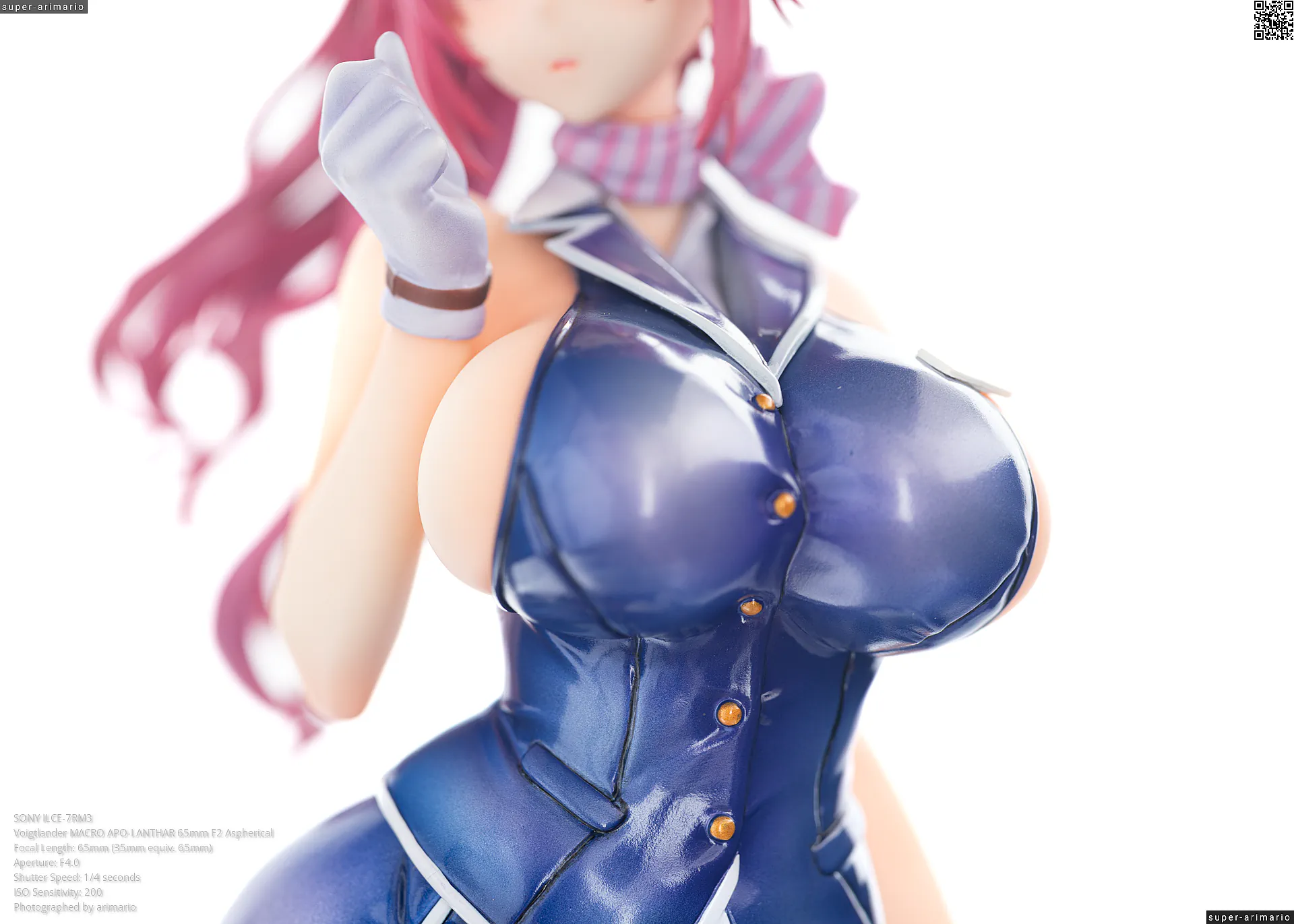 キャットウォークしているかのような脚を交差させたポージングと、抜群のプロポーション、むっちりした肉感が特徴。もとのキャラクターデザインとは細部が異なるものの、セクシーお姉さんというイラストの雰囲気をしっかりと引き出せているのではないでしょうか。光沢感のある制服がメタリック塗装で表現されているのが面白いですが、派手に映り込みが発生するのでレビュアー泣かせです😭
