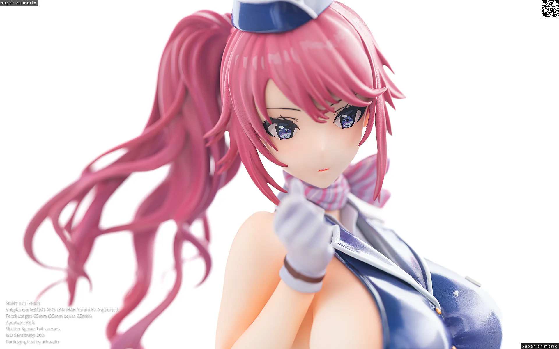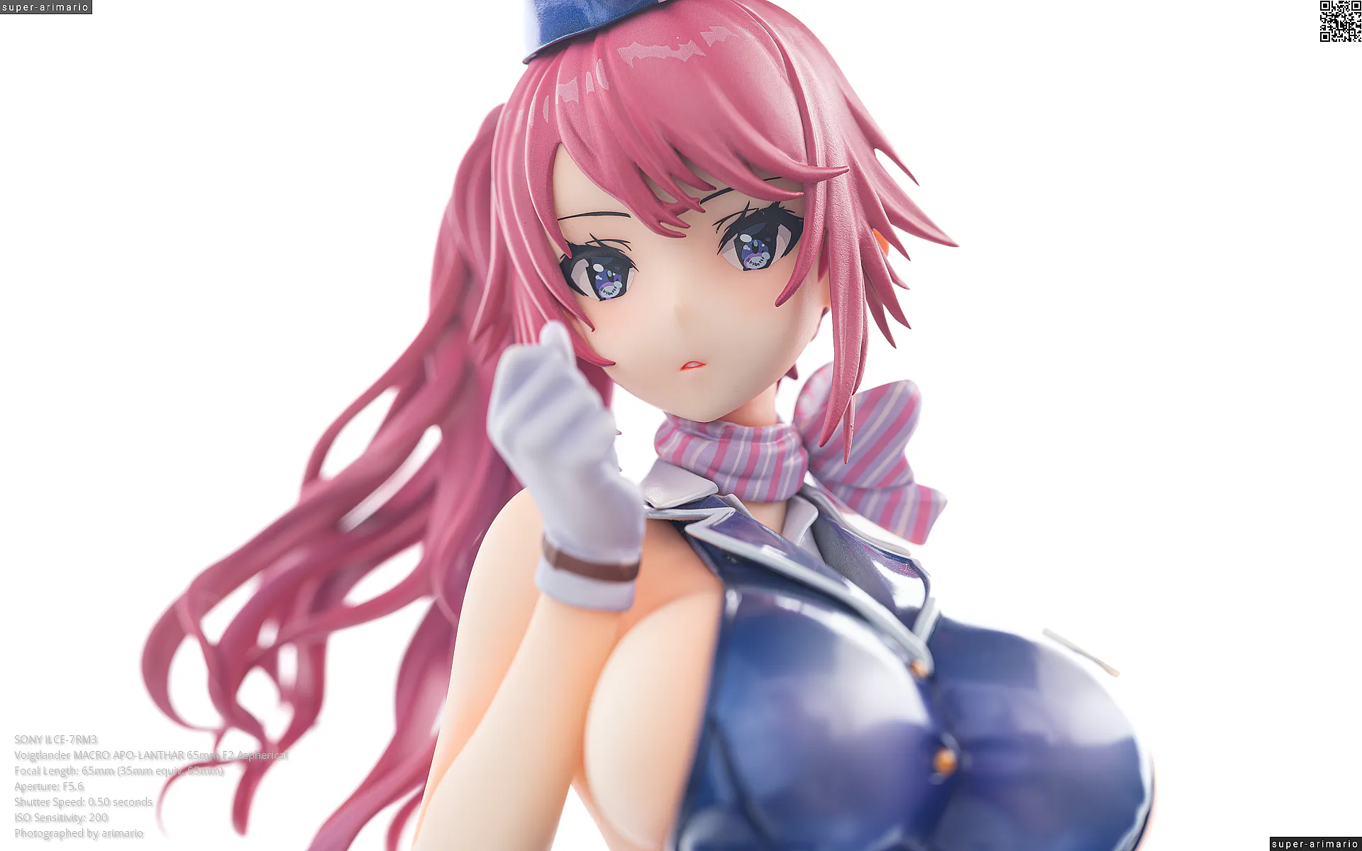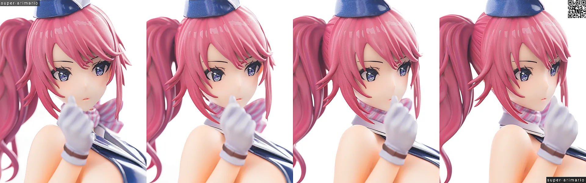 キャットウォークしているかのような脚を交差させたポージングと、抜群のプロポーション、むっちりした肉感が特徴。もとのキャラクターデザインとは細部が異なるものの、セクシーお姉さんというイラストの雰囲気をしっかりと引き出せているのではないでしょうか。光沢感のある制服がメタリック塗装で表現されているのが面白いですが、派手に映り込みが発生するのでレビュアー泣かせです😭