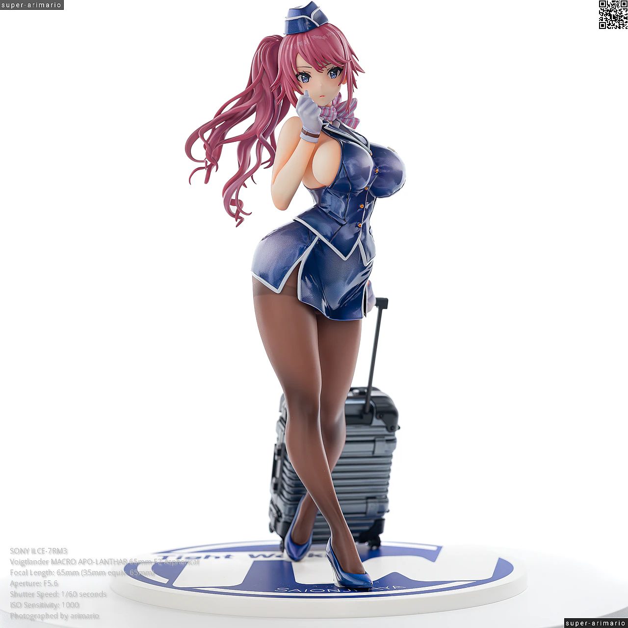 この『タイトなおしごと』シリーズですが、ヴェルテクスによると「お馴染みの職業コスチュームをタイトなレオタード風にアレンジした前代未聞のおしごとフィギュアシリーズです」とのこと😅 1作目は「おまわりさん」、2作目は「巫女さん」ときて今回の「CAさん」となります。