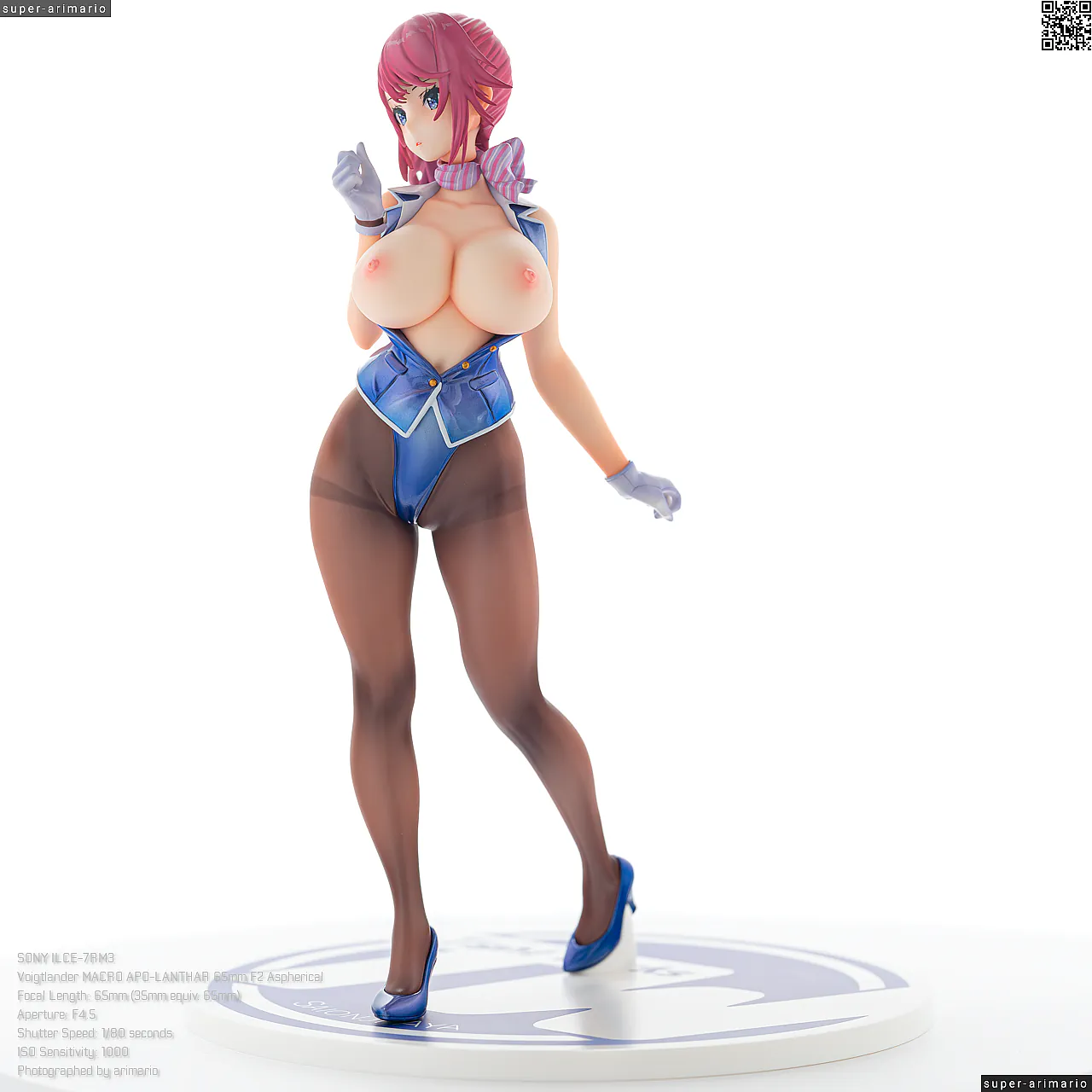 胴体パーツは、腰から上がまるっと交換可能という仕組み。ジャケットが大きくはだけたデザイン。おヘソが微妙にみえるあたり、フェティッシュなこだわりを感じる一方で、ブラなど肌着も着用せずキャビンアテンダントのジャケットを羽織っているというのは相当な違和感があります😅